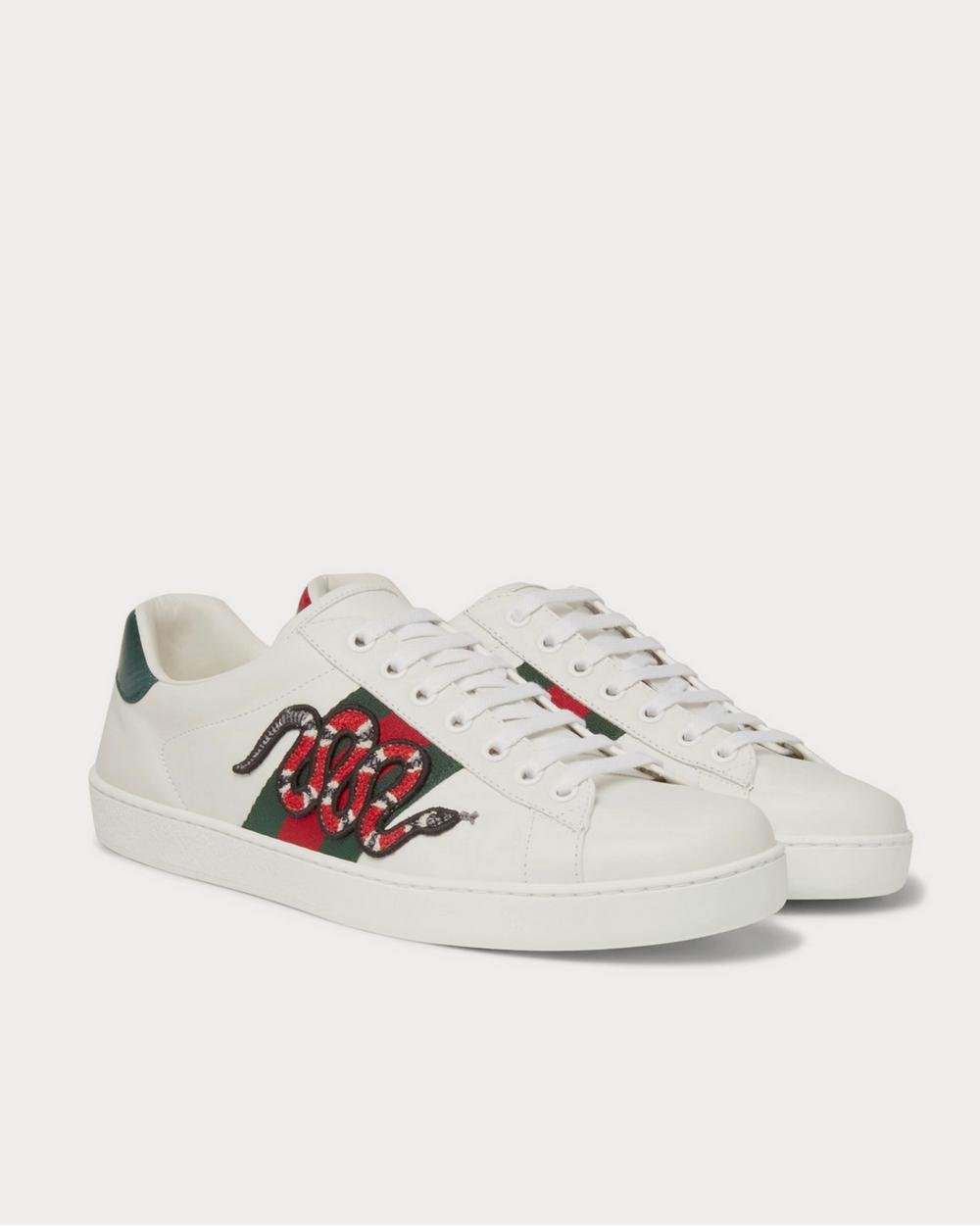 Baskets basses blanches en cuir appliqué ornées de serpents d’eau Gucci Ace