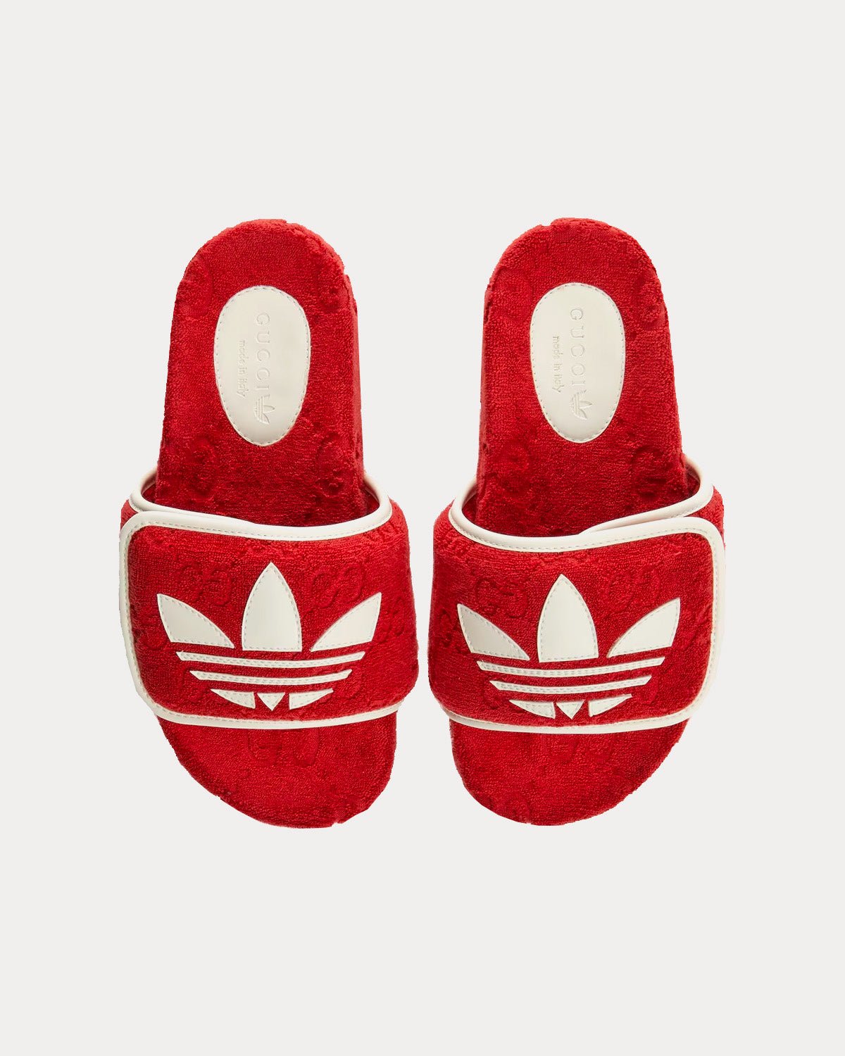 Sandales à plateforme en coton éponge rouge Adidas x Gucci GG