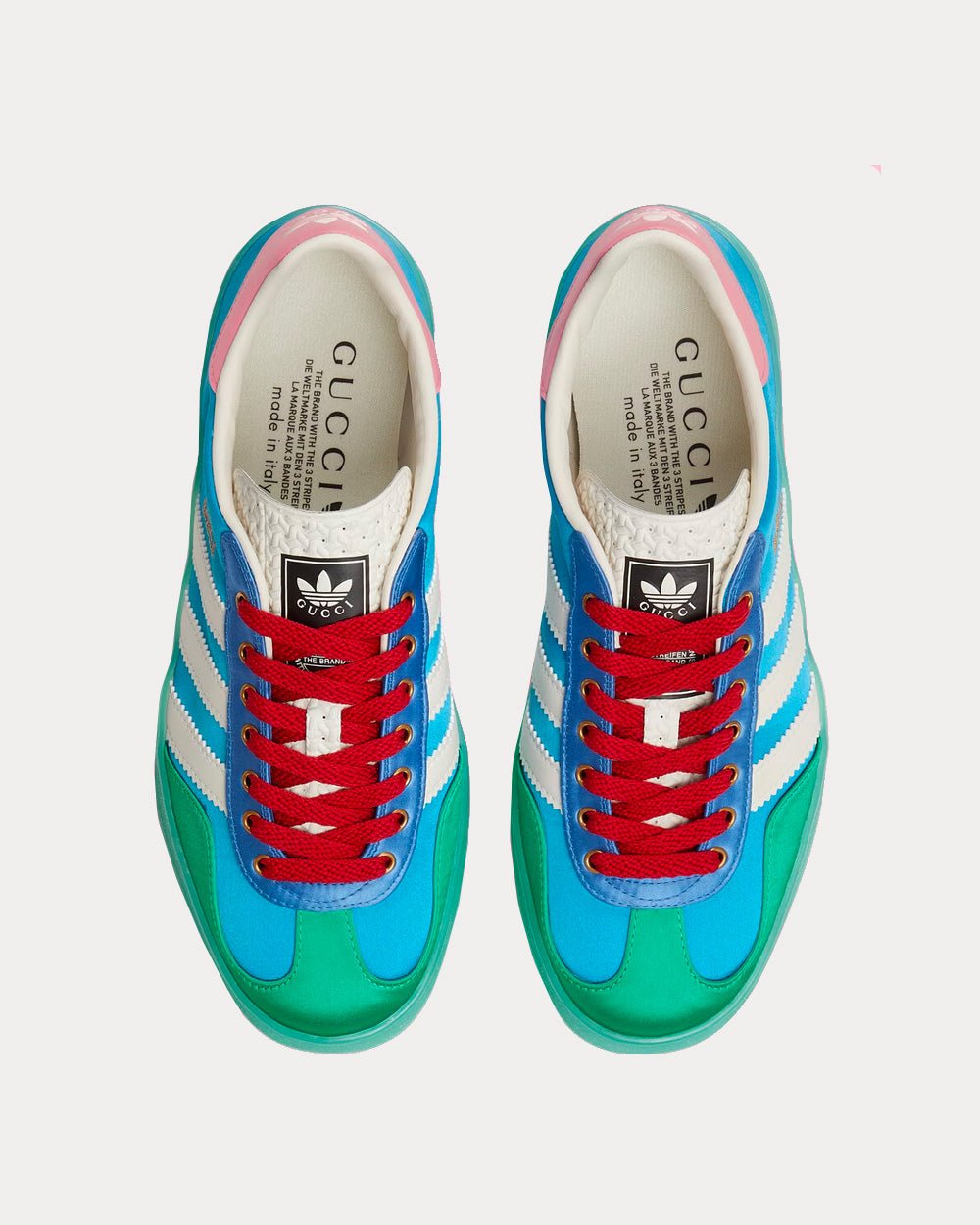 Baskets basses Adidas x Gucci Gazelle en soie bleu clair Duchesse