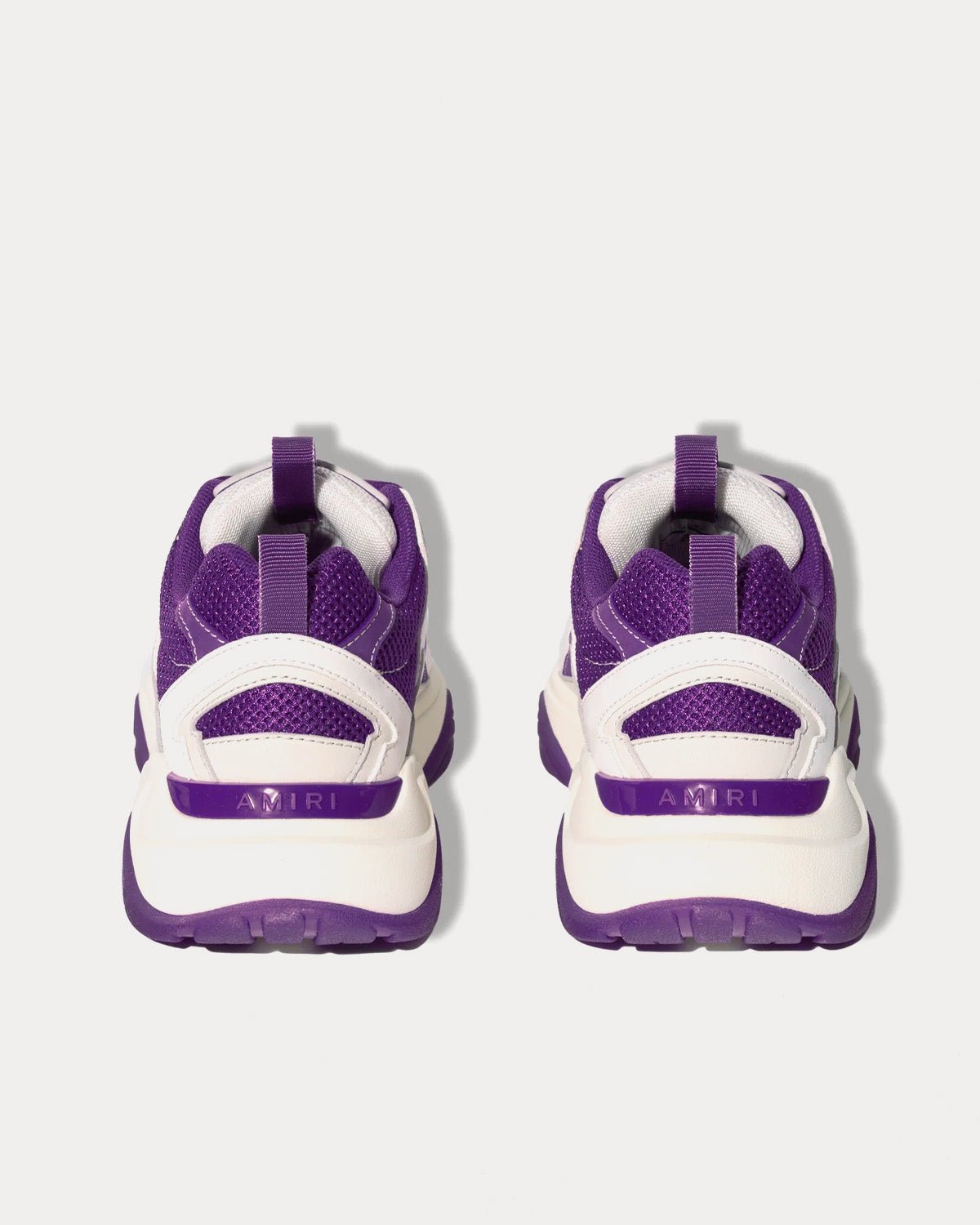 Les baskets basses pour hommes AmiriBone Runner en violet et blanc sont inspirées des baskets de style sportif rétro et présentent un logo estampé métallique sur la languette avant, une applique en cuir squelette classique découpée et cousue à la main et une tige en daim Vesuvio.
