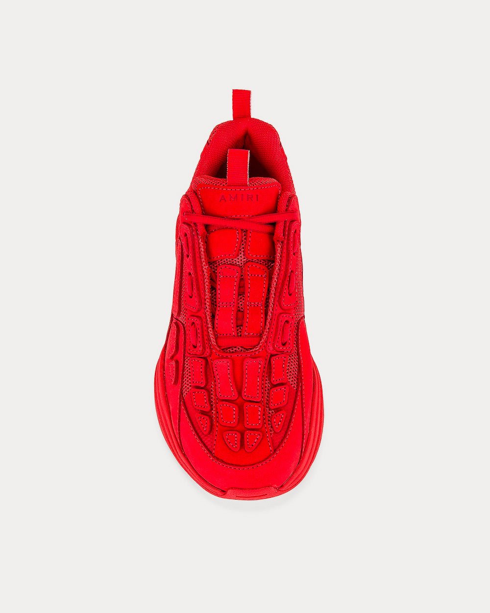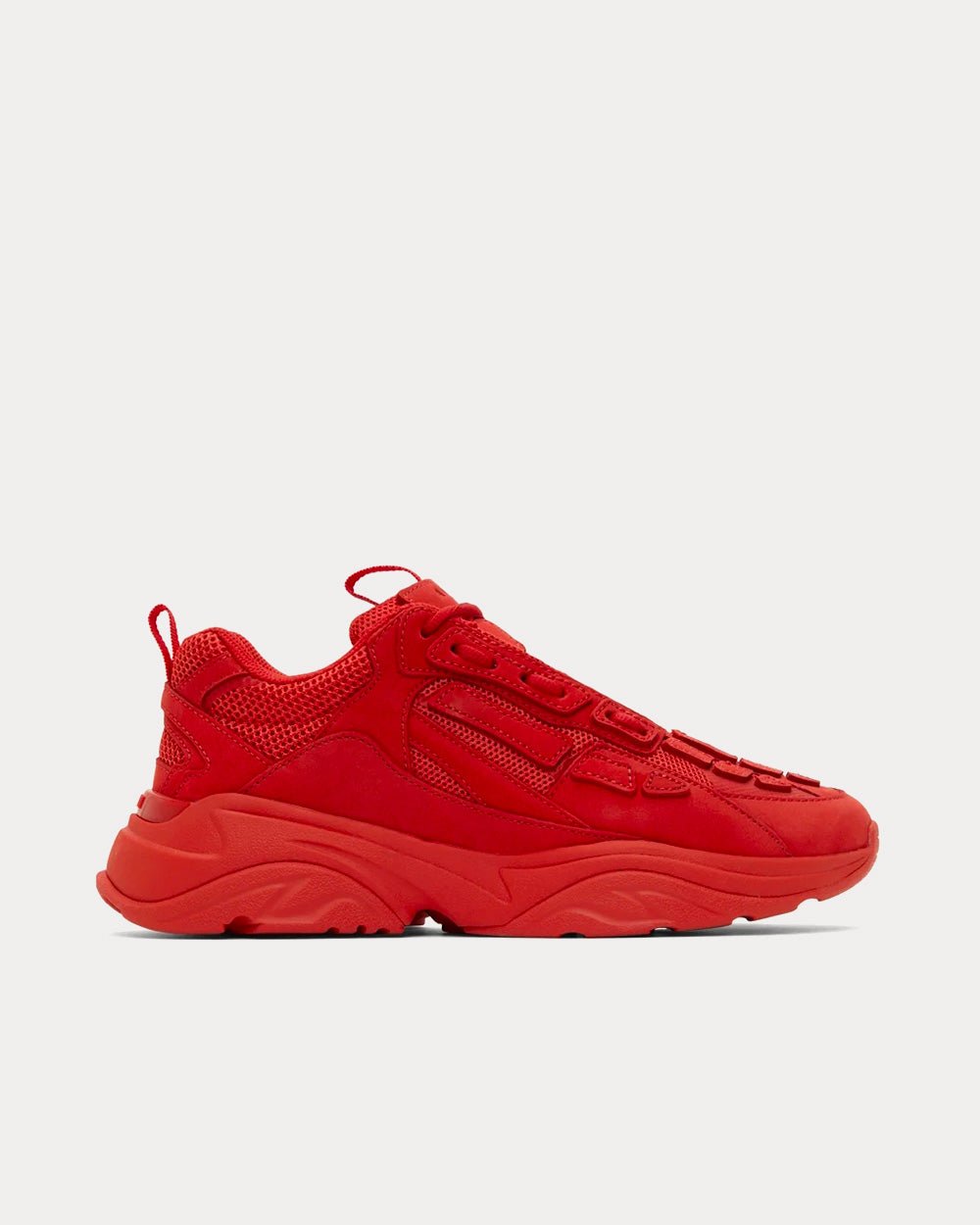 Les baskets basses rouges Amiri Bone Runner sont inspirées des baskets de sport rétro et présentent une tige en daim Vesuvio avec une semelle en caoutchouc avec des appliques en cuir squelette classiques découpées et cousues à la main.