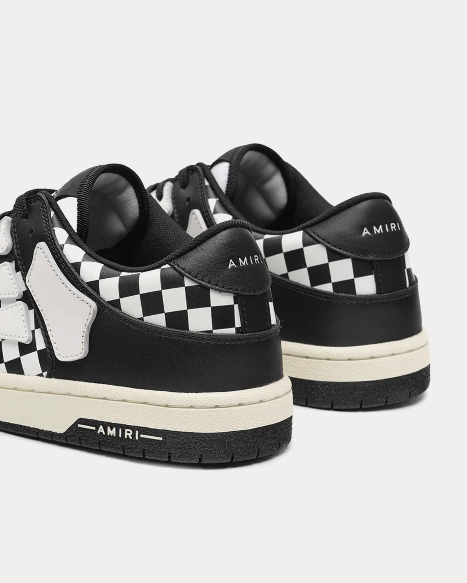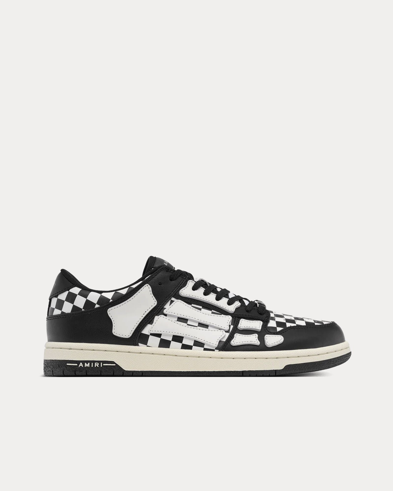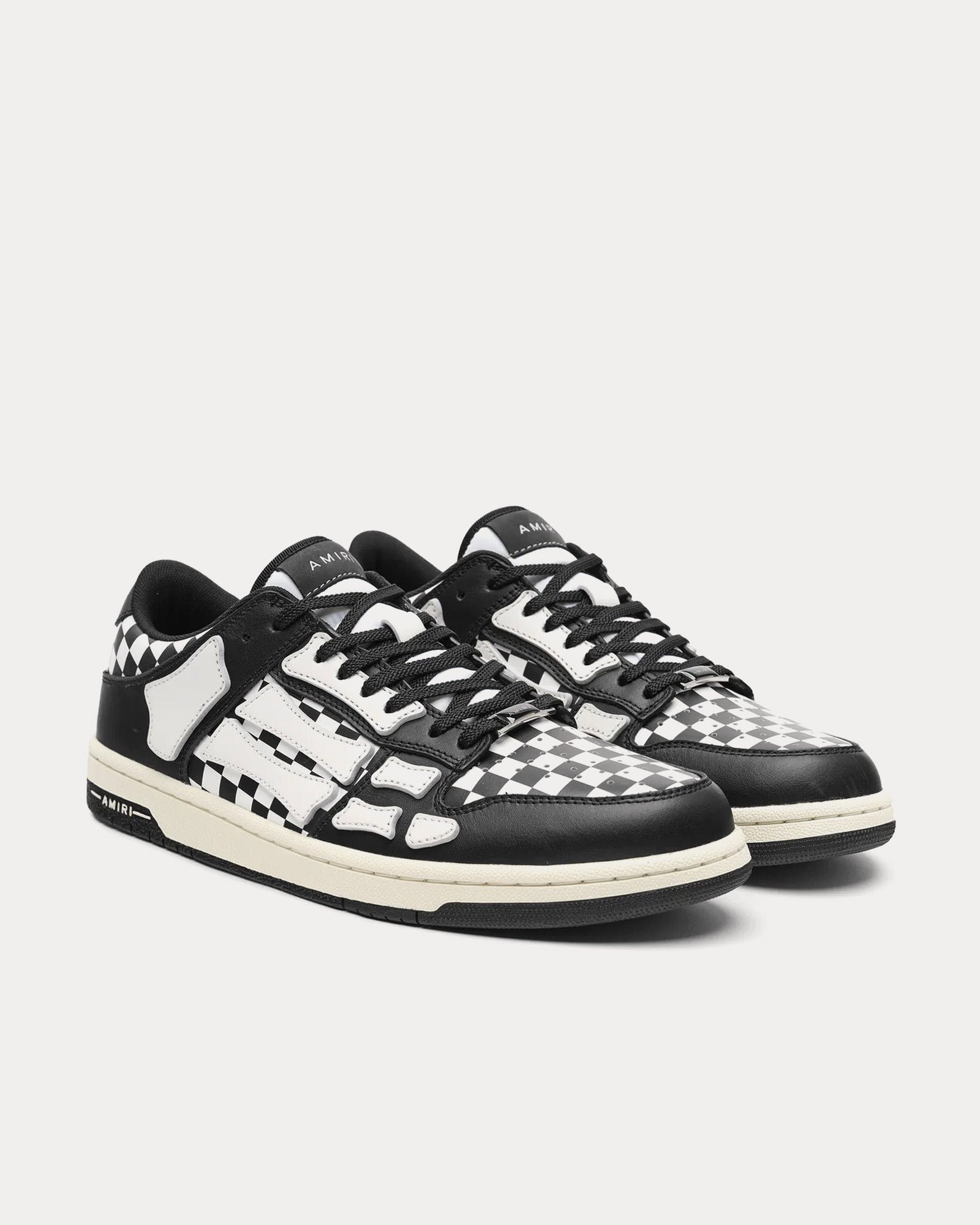 Les baskets basses pour hommes AmiriSkel-Top à carreaux en noir et blanc sont fabriquées en cuir et présentent un effet à carreaux sur la tige, avec le logo Amiri sur le dessous des semelles en caoutchouc.