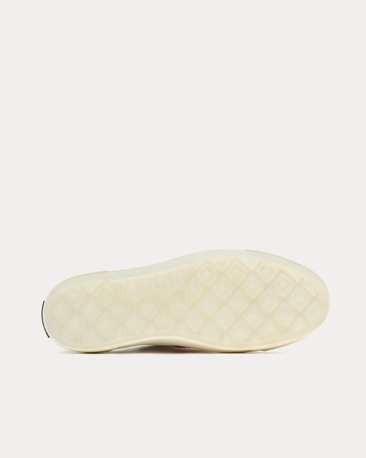 Les baskets basses pour hommes AmiriCourt en blanc et rouge s’inspirent de la culture skate de la côte ouest des années 90 et présentent un patchwork d’appliqués étoiles en cuir, une construction à enfiler, des semelles extérieures en caoutchouc moulé et des détails de finition en cuir avec le logo Amiri et des lacets étoiles.