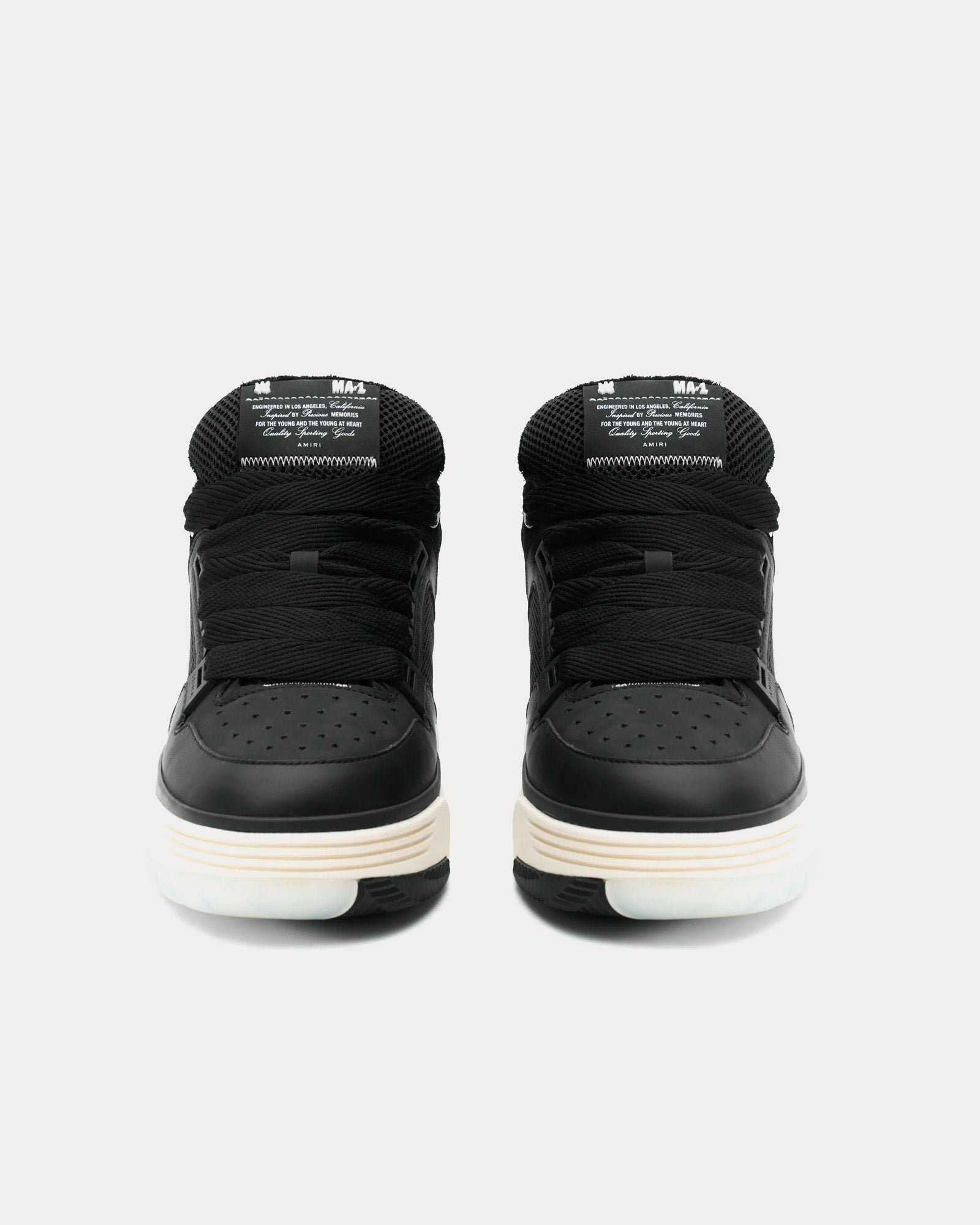 Les baskets basses pour hommes Amiri MA-1 en noir présentent une tige en nubuck, mesh et cuir, un logo Amiri sur le côté et des semelles en caoutchouc. Fabriquées en Chine.