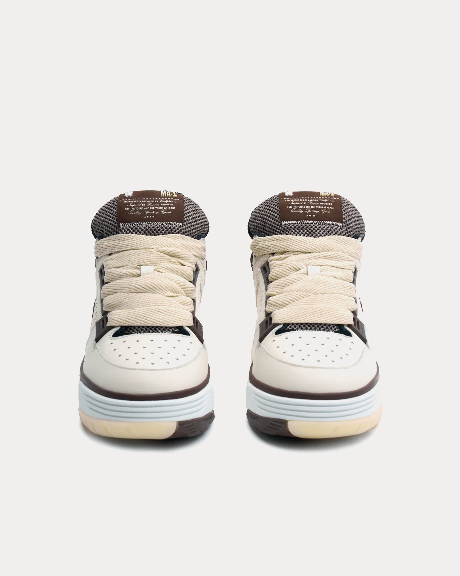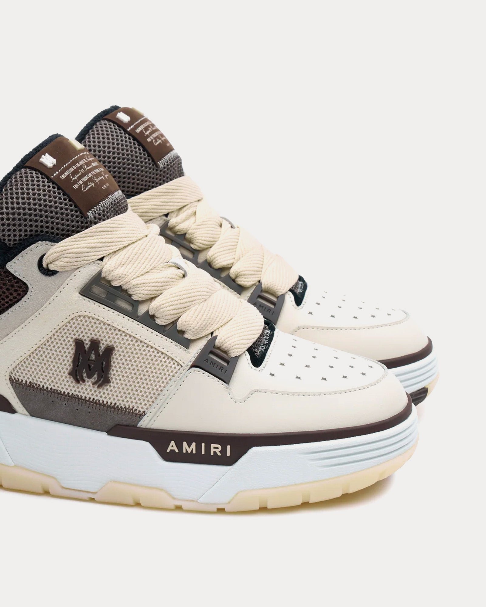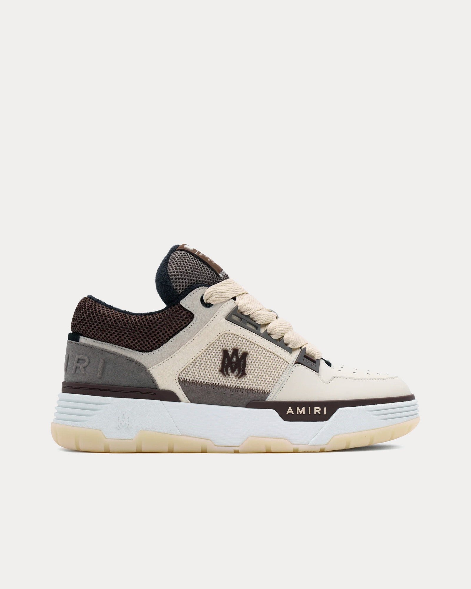 Les baskets basses pour hommes AmiriMA-1 en marron présentent une tige en nubuck, en mesh et en cuir, un logo Amiri sur le côté et des semelles en caoutchouc. Fabriquées en Chine.