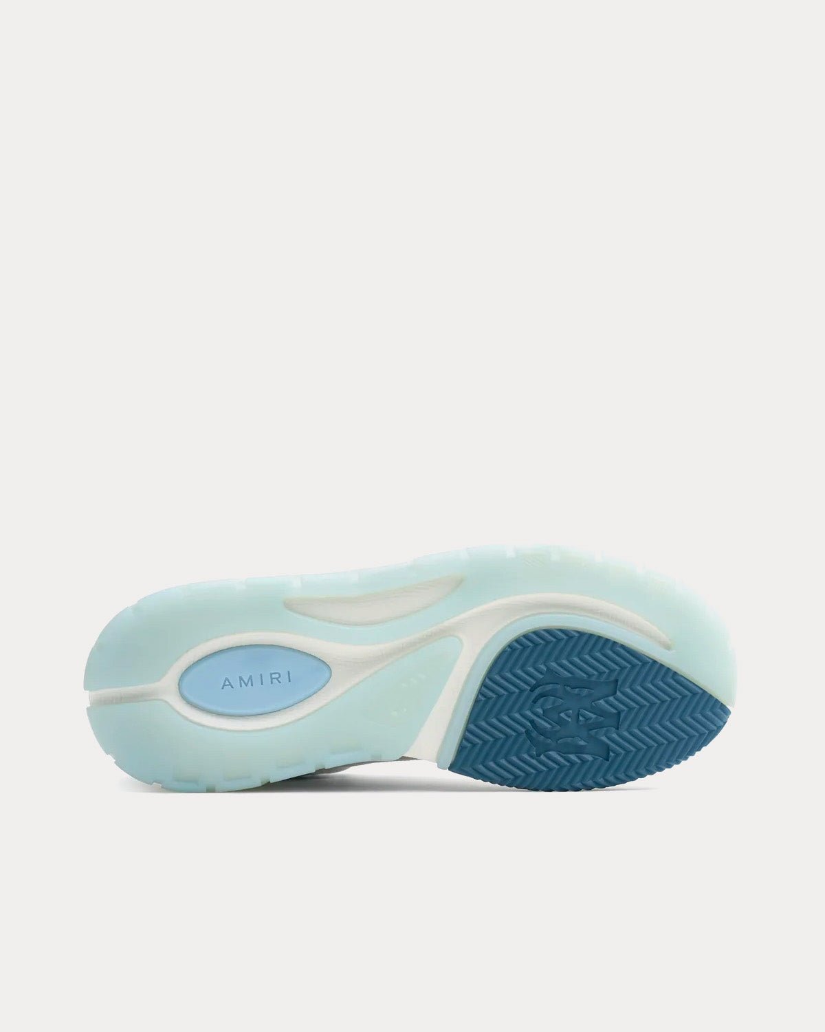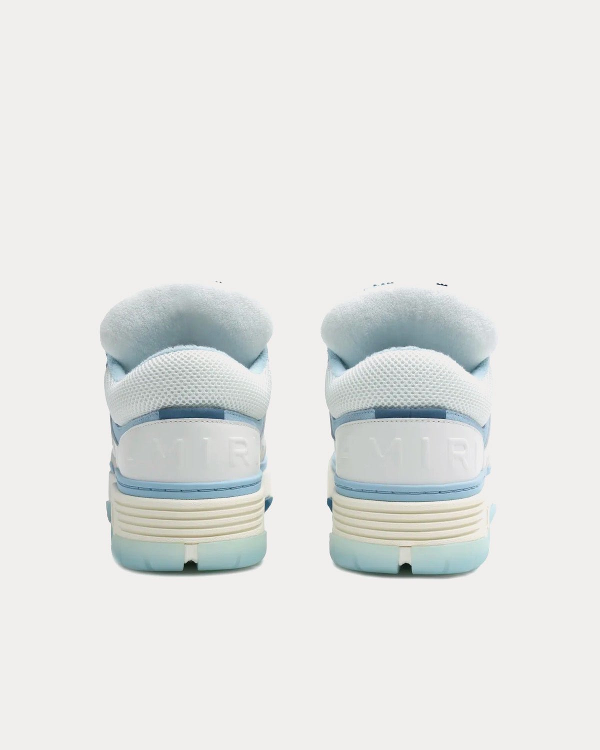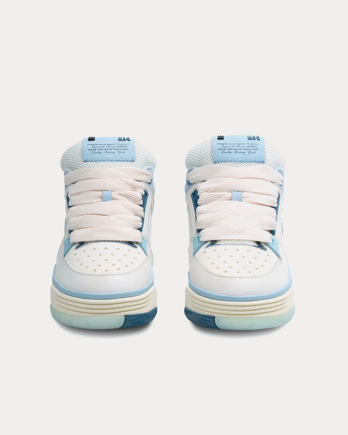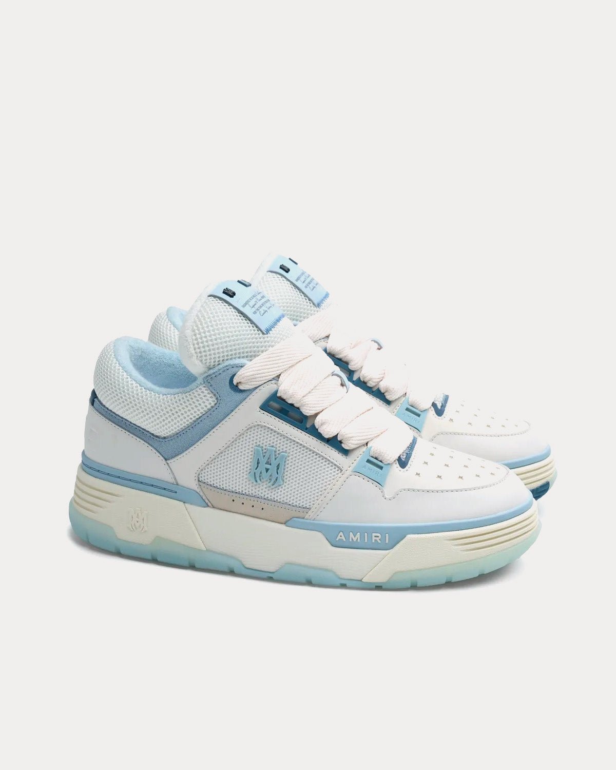 Baskets Amiri MA-1 blanches et bleues de la collection SS23, composées de nubuck, de mesh et de cuir. Fabriquées en Chine.