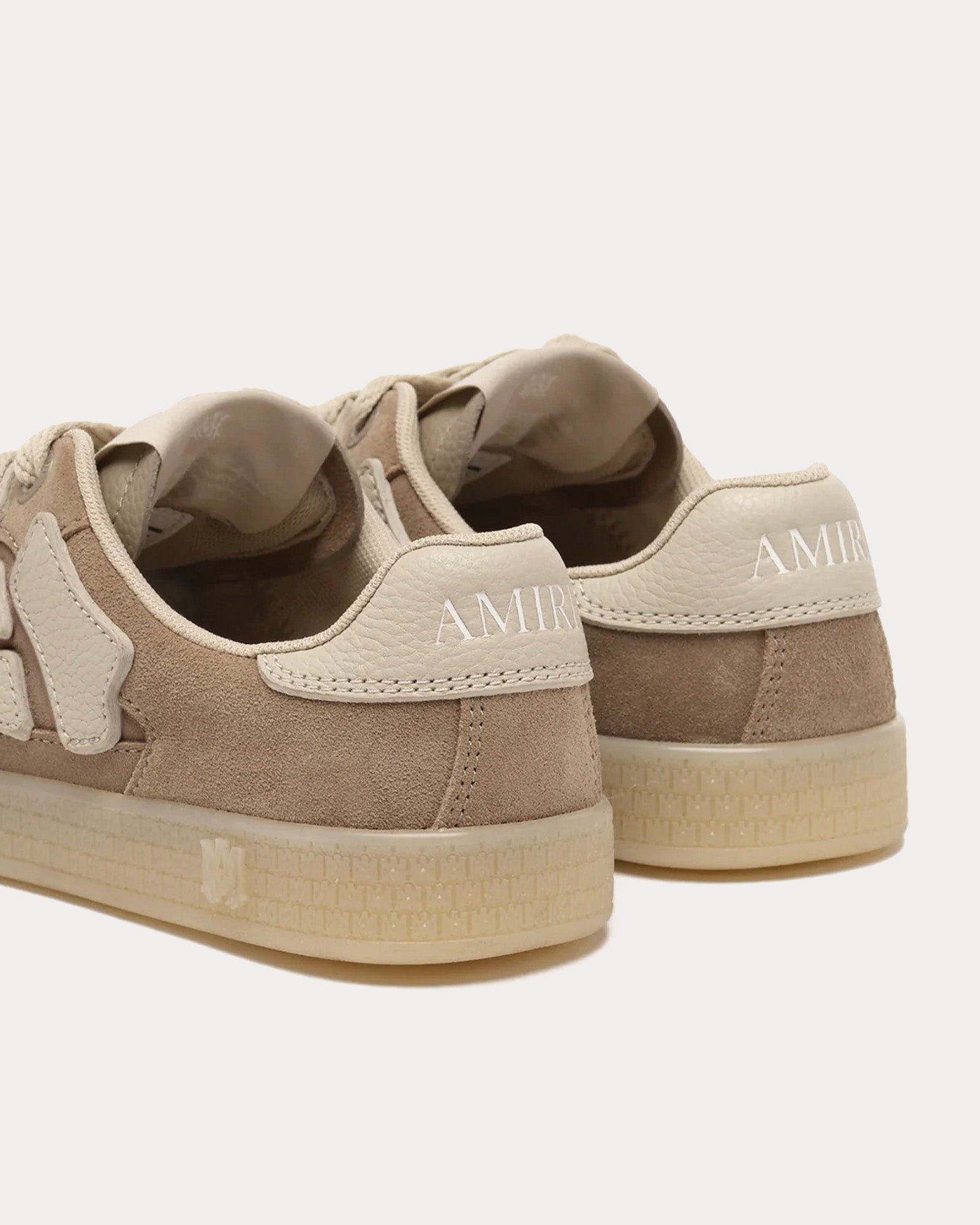 Les baskets basses pour hommes AmiriPacific Bones en marron s’inspirent des baskets de course classiques et présentent une tige en daim, des empiècements en cuir à motif os sur les côtés et des semelles en caoutchouc à motif emblématique MA. Fabriquées en Italie.