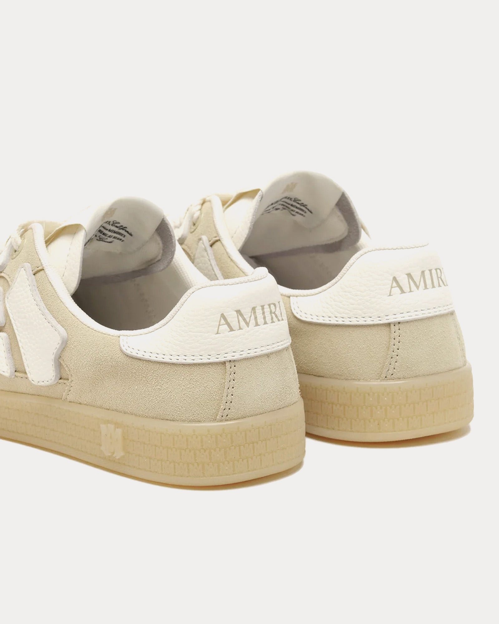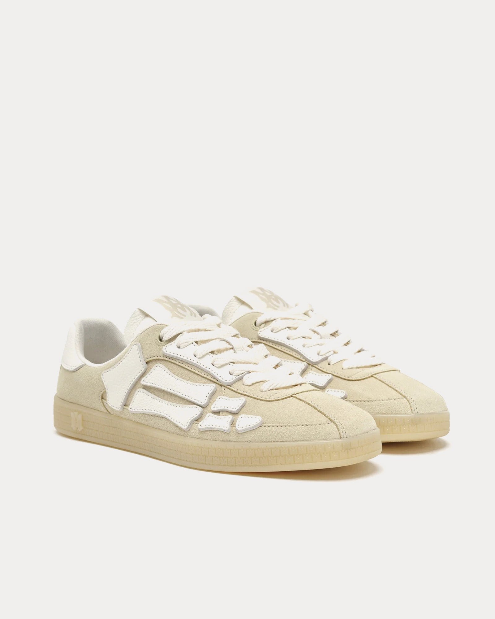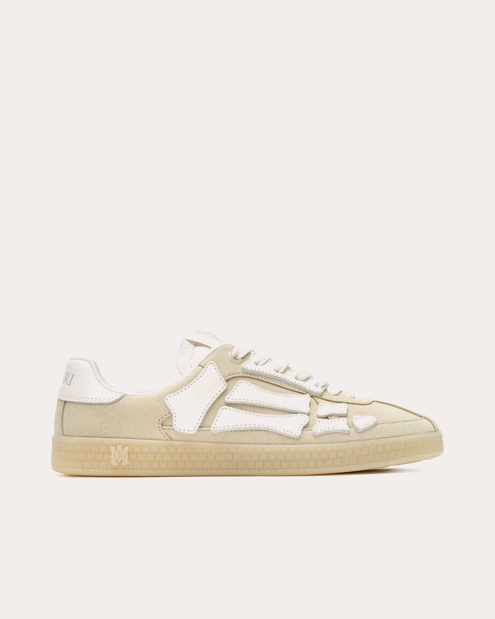 Les baskets basses pour hommes Amiri Pacific Bones couleur sable s’inspirent des baskets de course classiques et présentent une tige en daim, des empiècements en cuir os sur les côtés et des semelles en caoutchouc à motif emblématique MA. Fabriquées en Italie.