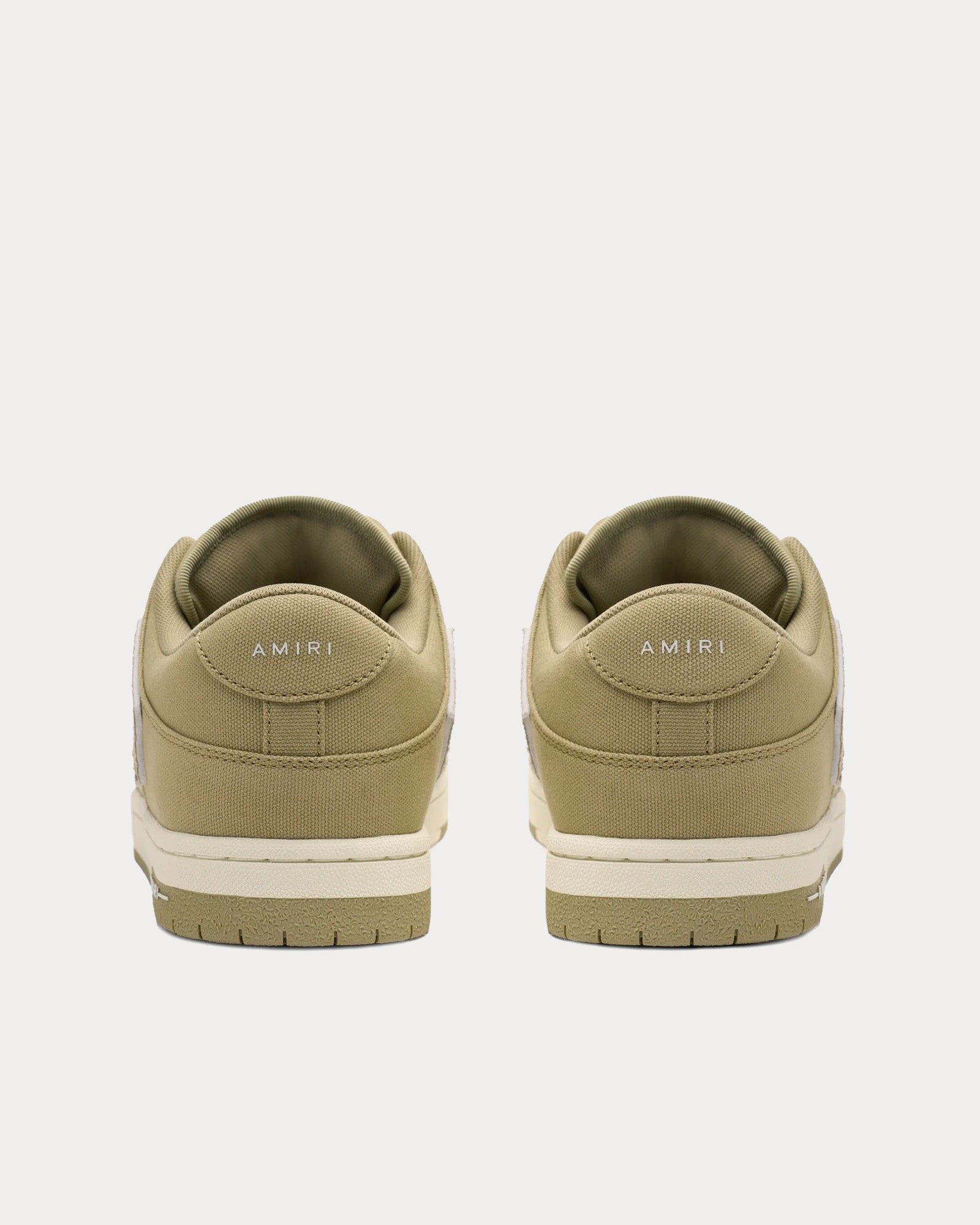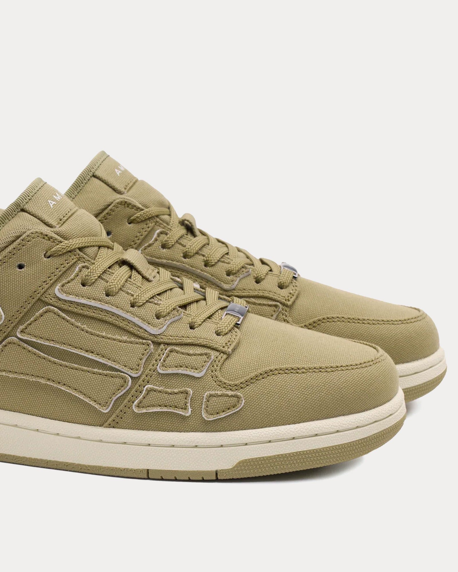Les baskets basses pour hommes Amiri Skel-Top en vert sont fabriquées en toile de coton et présentent un effet squelette sur la tige, avec le logo Amiri sur le dessous des semelles en caoutchouc. Fabriquées en Chine.