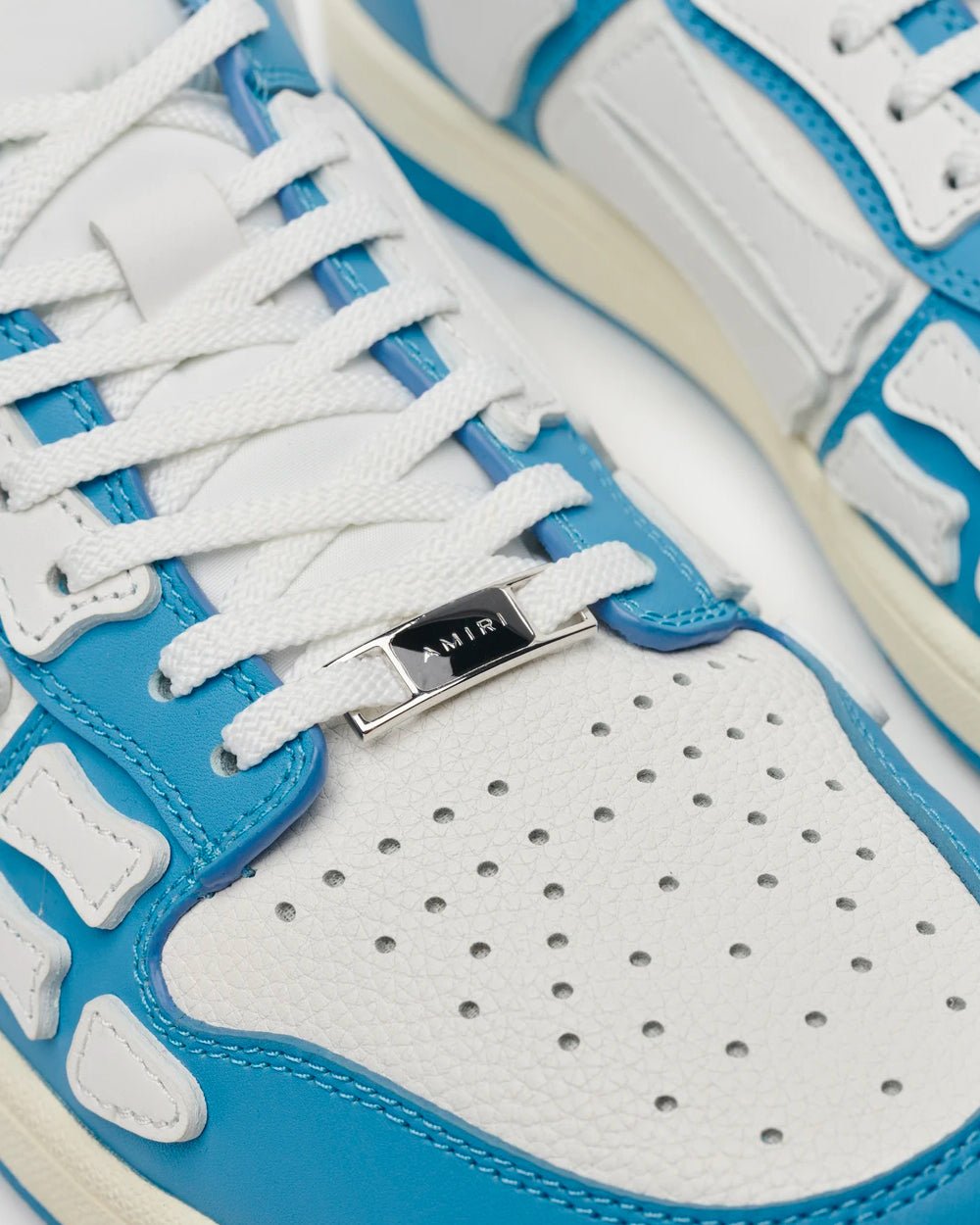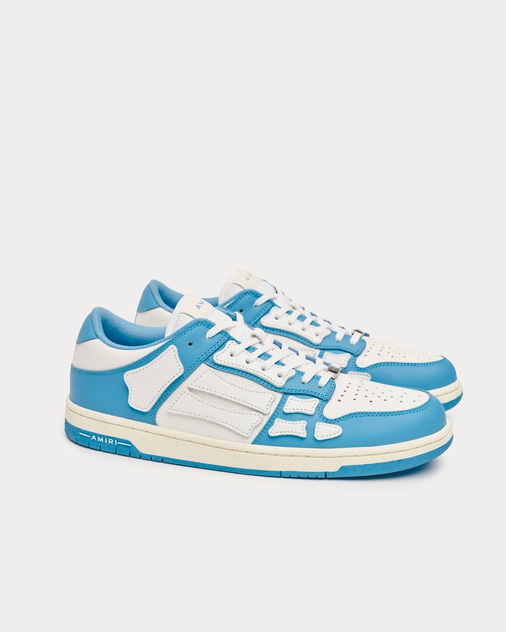 Avec des tiges en cuir bleu poudre, ces baskets AMIRI ont une silhouette basse, présentent des applications en cuir squelette contrastées en blanc et reposent sur des semelles en caoutchouc.