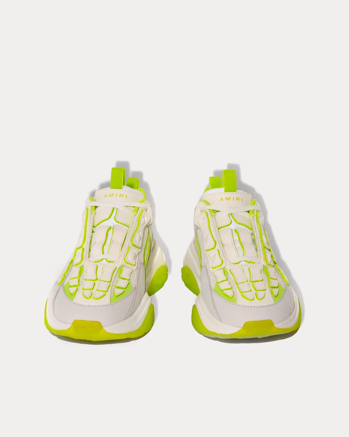 Les baskets basses Amiri Bone Runner Grey / Lime sont inspirées des baskets de sport rétro, avec un logo estampé métallique sur la languette avant, une applique en cuir squelette classique découpée et cousue à la main et une tige en daim Vesuvio.