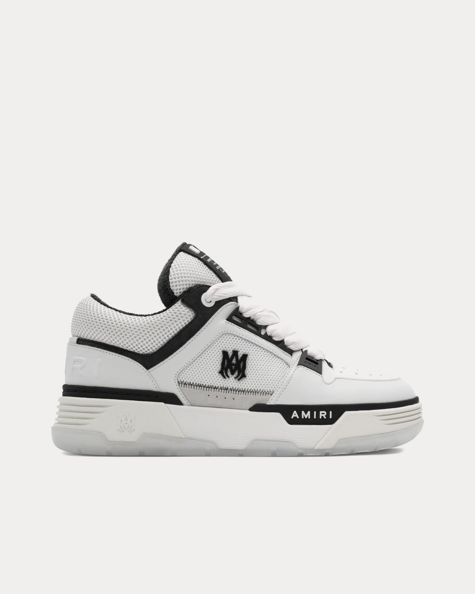 Les baskets basses pour femmes AmiriMA-1 en blanc et noir présentent une tige en nubuck, mesh et cuir, un logo Amiri sur le côté et des semelles en caoutchouc. Fabriquées en Chine.