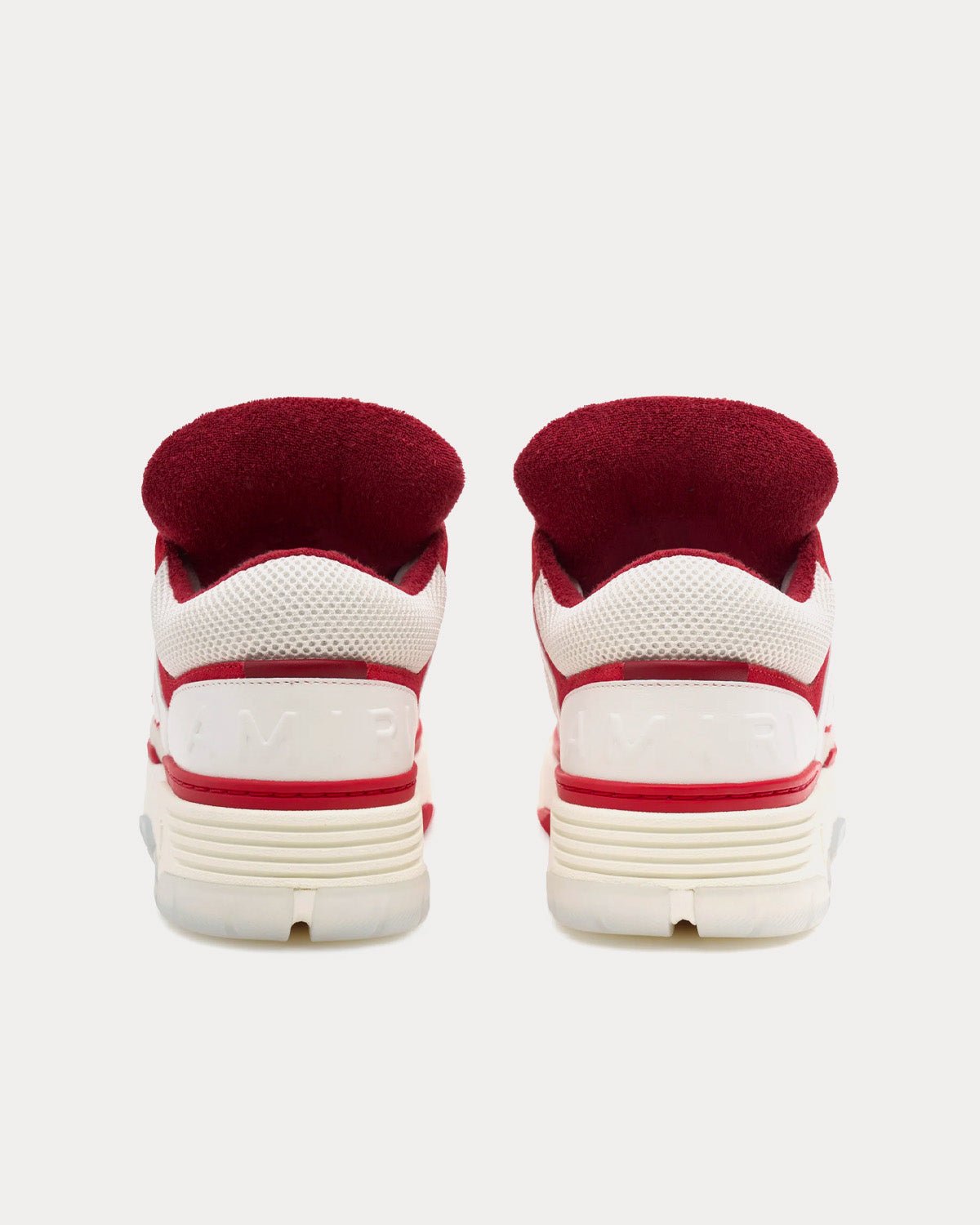 Baskets pour femme Amiri MA-1 de la collection PF23, déclinées en blanc et rouge, avec nubuck, mesh et cuir. Fabriquées en Chine.