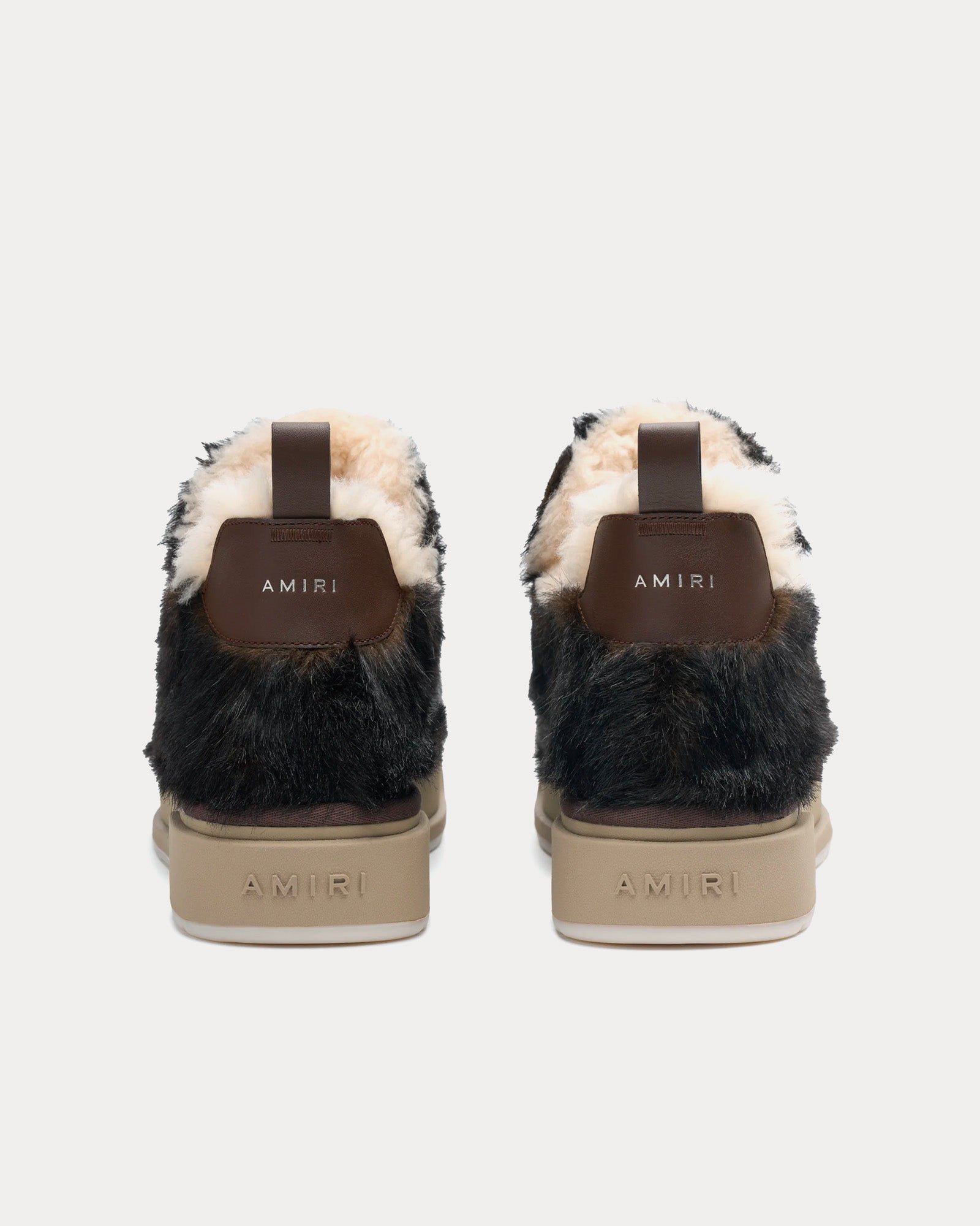 Les bottes pour femmes Amiri Malibu en noir sont fabriquées en fausse fourrure et présentent une doublure en peau de mouton ultra-luxueuse, des semelles extérieures en caoutchouc exagérées avec des ancrages de bande de roulement, des languettes en cuir, des détails de surpiqûres et le logo Amiri en relief au talon et le logo imprimé en feuille à l’arrière.