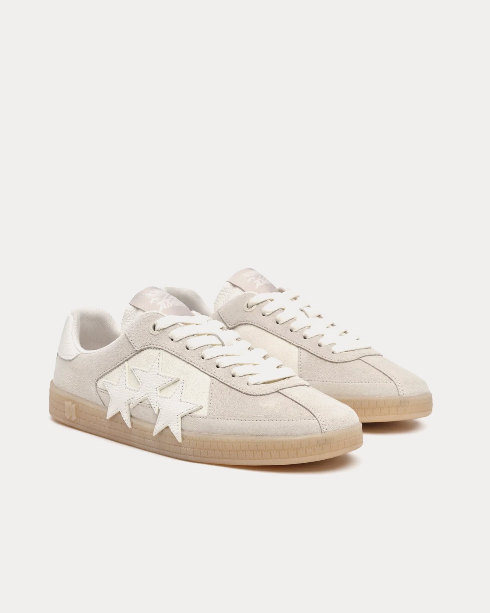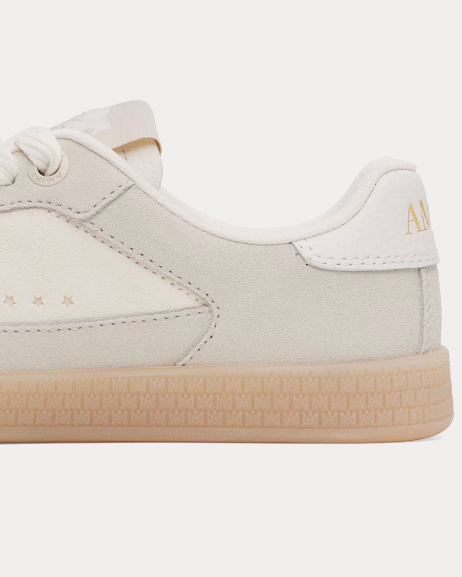 Fabriquée en daim de qualité supérieure, la tige présente l’appliqué en cuir trois étoiles emblématique d’Amiri, ajoutant une touche distinctive au design. Les baskets reposent sur une semelle en caoutchouc à motif d’icône MA, garantissant durabilité et finition élégante.