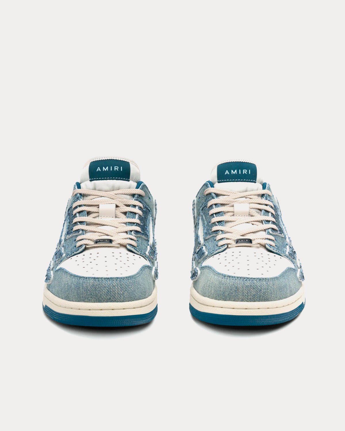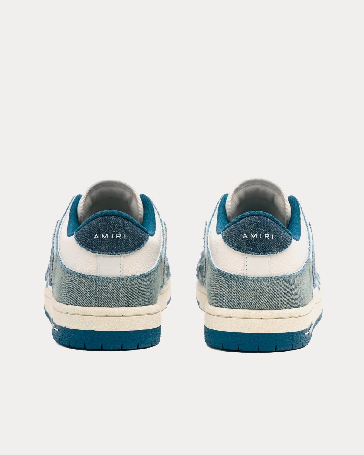 Les baskets basses pour femmes Amiri Skel-Top dans un coloris bleu bébé de la collection PF23 sont fabriquées en cuir et en toile et présentent un style denim et un effet squelette sur la tige, avec le logo Amiri sur le bas des semelles en caoutchouc. Fabriquées en Chine.