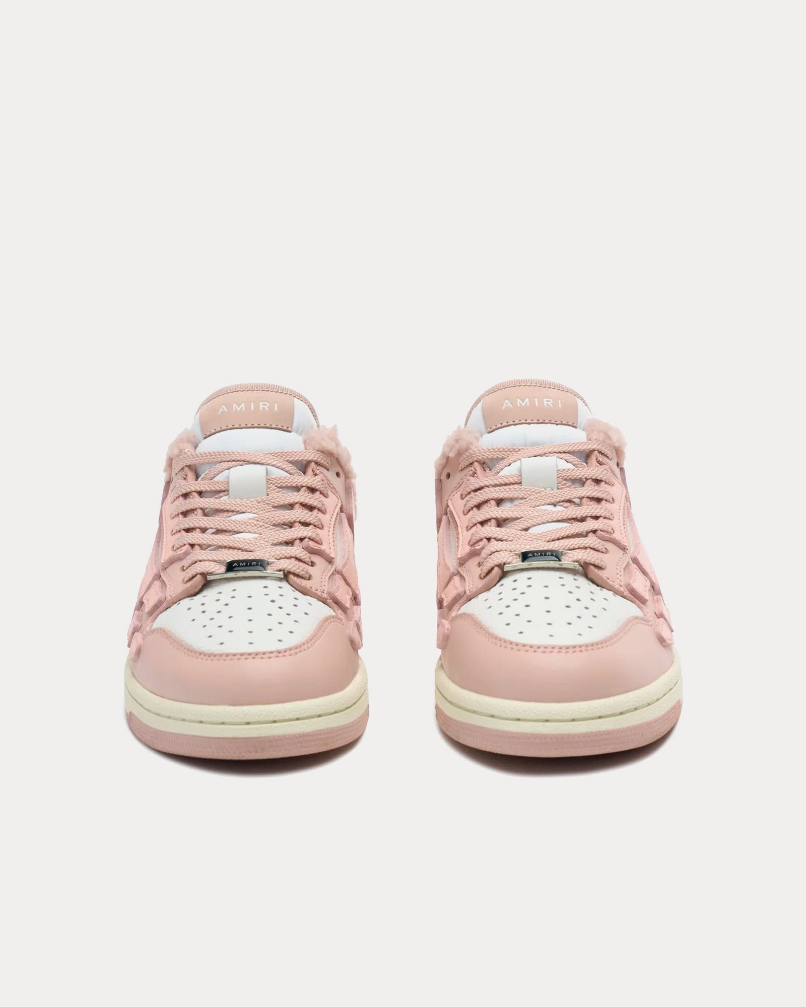 Les mules AmiriSkel-Top pour femmes en rose sont fabriquées en cuir et présentent des intérieurs en peau de mouton retournée, des empiècements en cuir, des applications en cuir squelette coupées et cousues à la main, une silhouette sportswear classique, des semelles en caoutchouc et des graphismes signature Amiri.