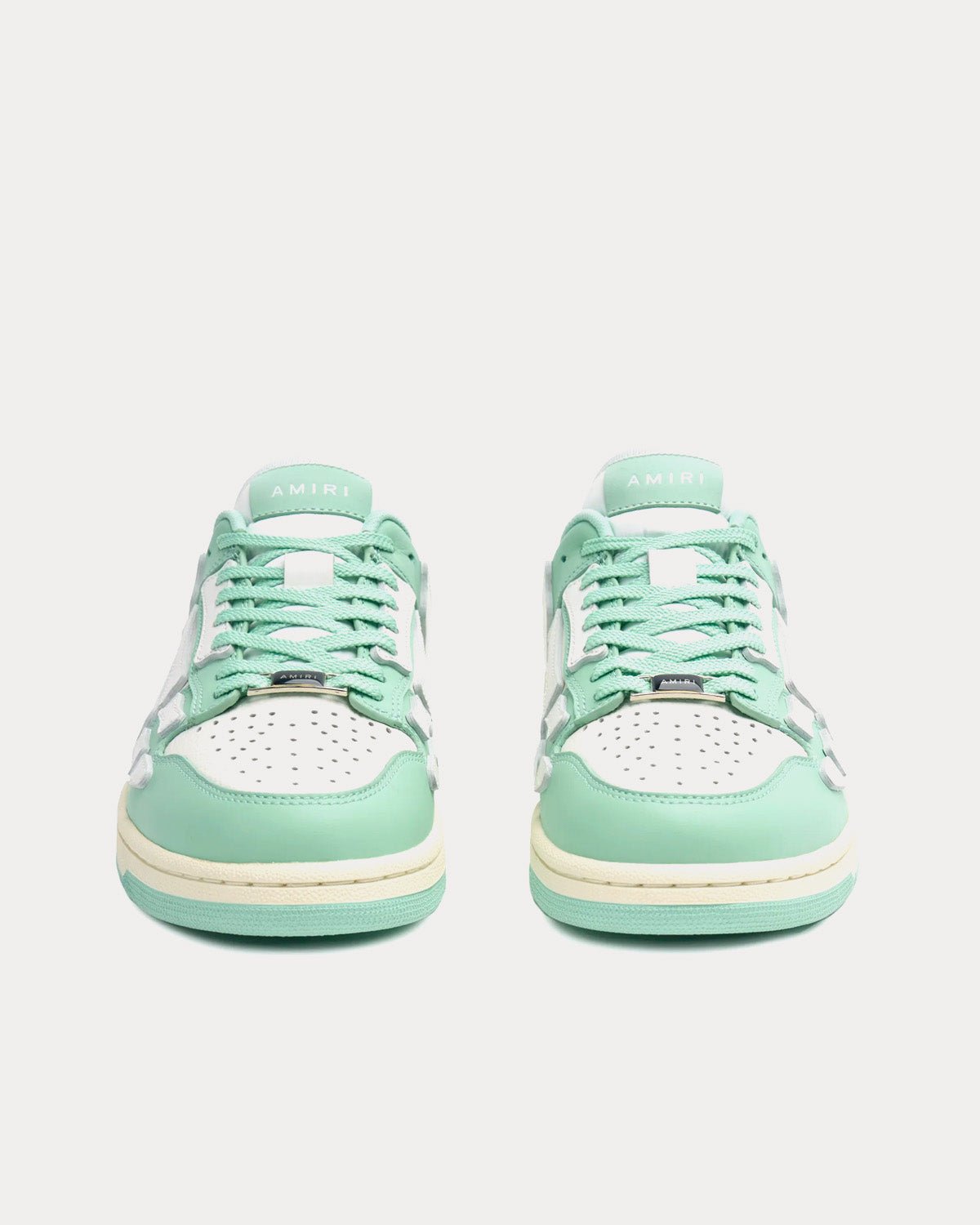 Les baskets à enfiler pour femmes AmiriSkel-Top Mule dans un coloris sauge de la collection PF23, fabriquées avec une tige en cuir et une semelle en caoutchouc avec le logo Amiri sur le dessous. Fabriquées en Chine.