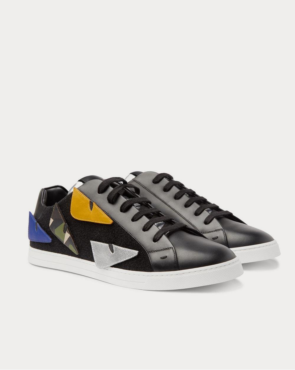 Baskets basses noires en cuir à finitions en feutre et appliqués FendiBaskets basses noires en cuir à finitions en feutre et appliqués Fendi