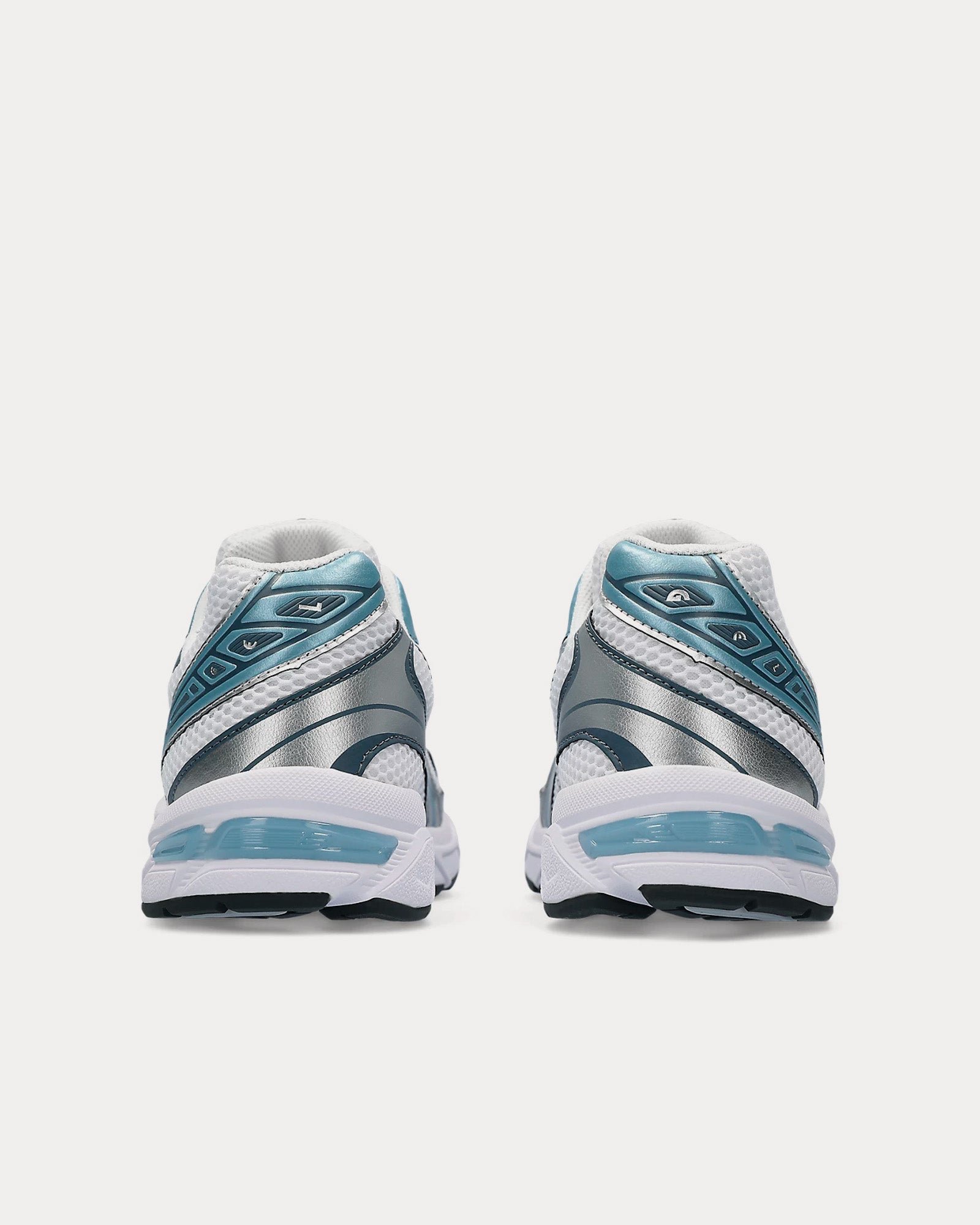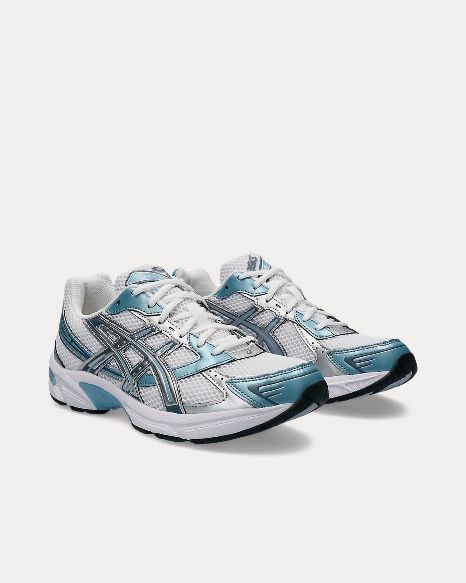 The unisex Asics Gel-1130 low top sneakers in white and shark skin feature a late 2000s runner aesthetic, GEL™ technology cushioning to provide excellent shock absorption, and synthetic leather overlays and mesh underlays. The upper’s main material is designed with more than 20% recycled materials.