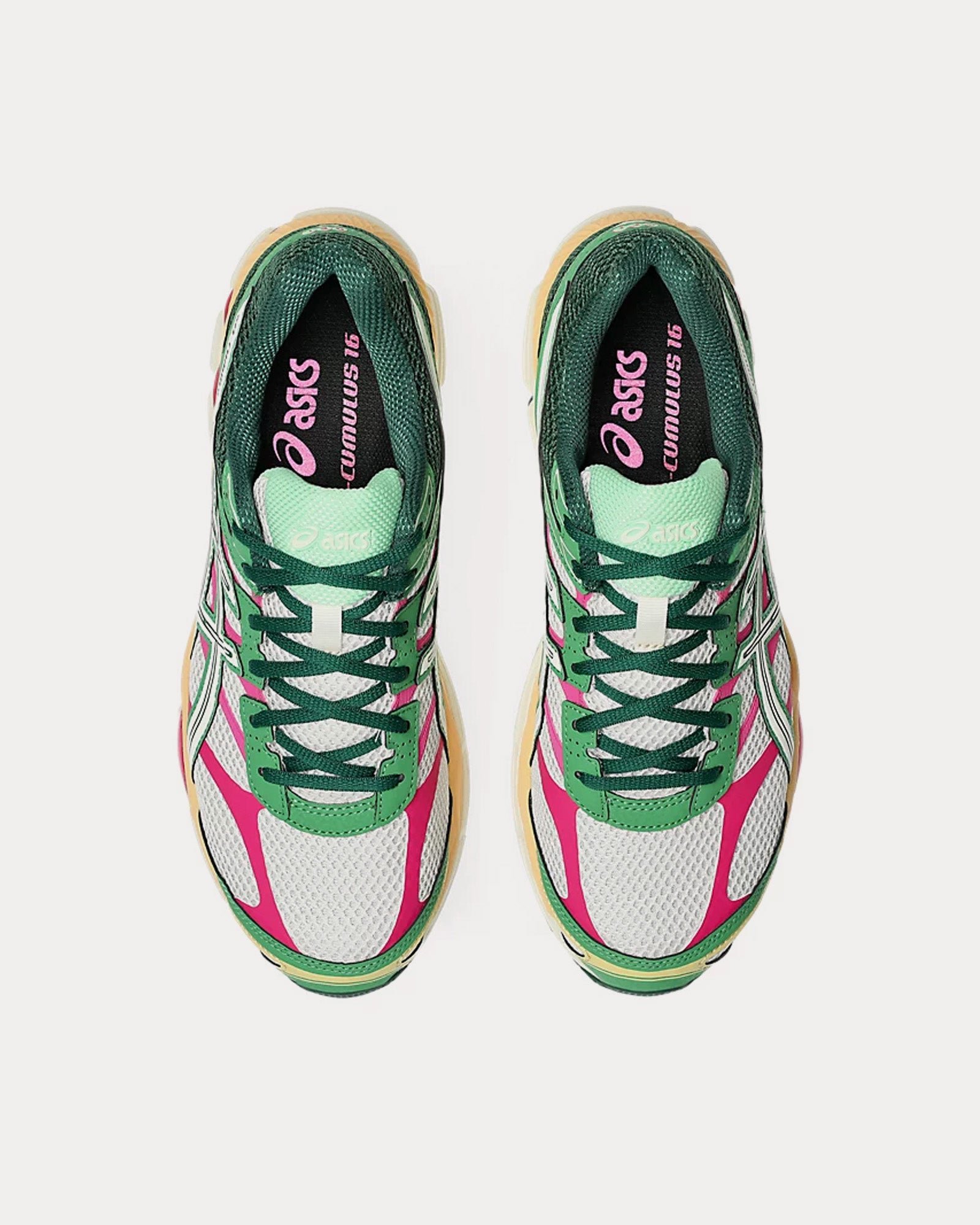 The unisex Asics Gel-Cumulus 16 sneakers inĀ Green, Cream and Ivory revive the beloved neutral distance trainer from 2014, reimagined for modern lifestyle comfort. Hailed for their soft, resilient cushioning during long-distance runs, these sneakers return with the originalās performanceādriven innovations alongside a fresh, technical aesthetic.