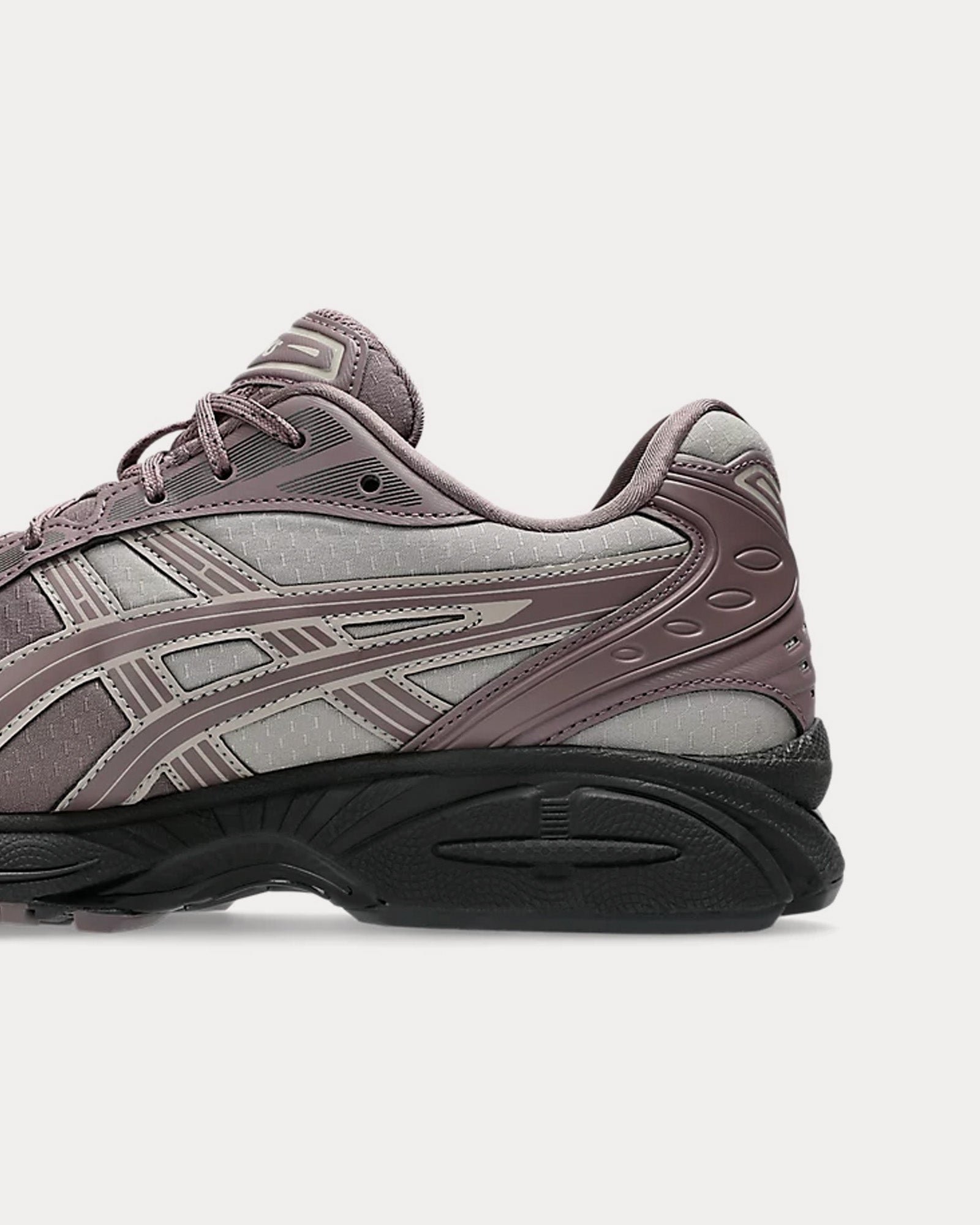 The unisex AsicsGel-Kayano 14 ‘Earthenware’ low top sneakers in mauve grey and moonrock updates a retro design with modern materials and components, designed by someone other than Toshikazu Kayano for the first time. This reinvigorates the brand’s signature values and improves performance, preserving the original midsole and GEL® technology cushioning, while enhancing the fit of the leather and mesh upper from 2008.
