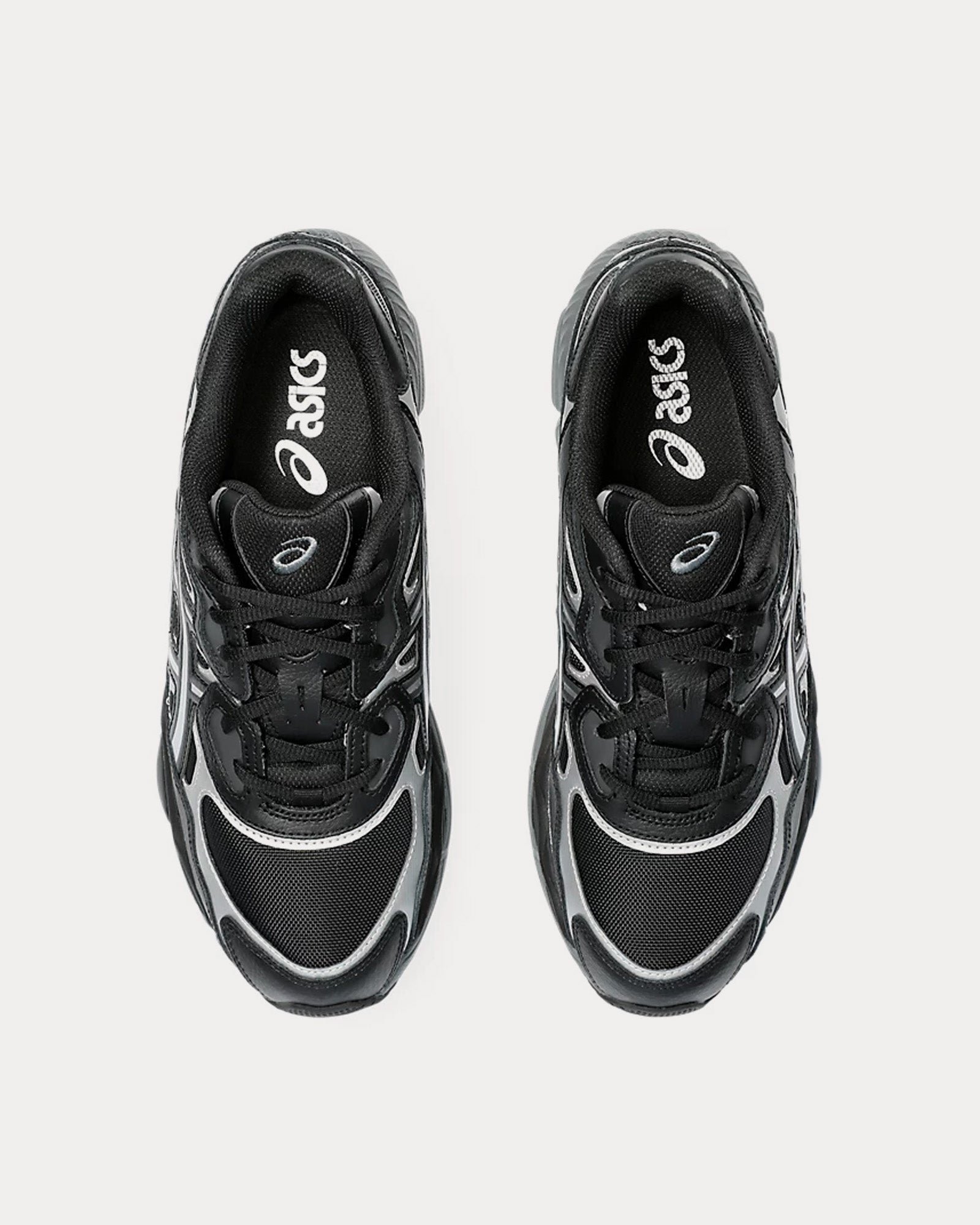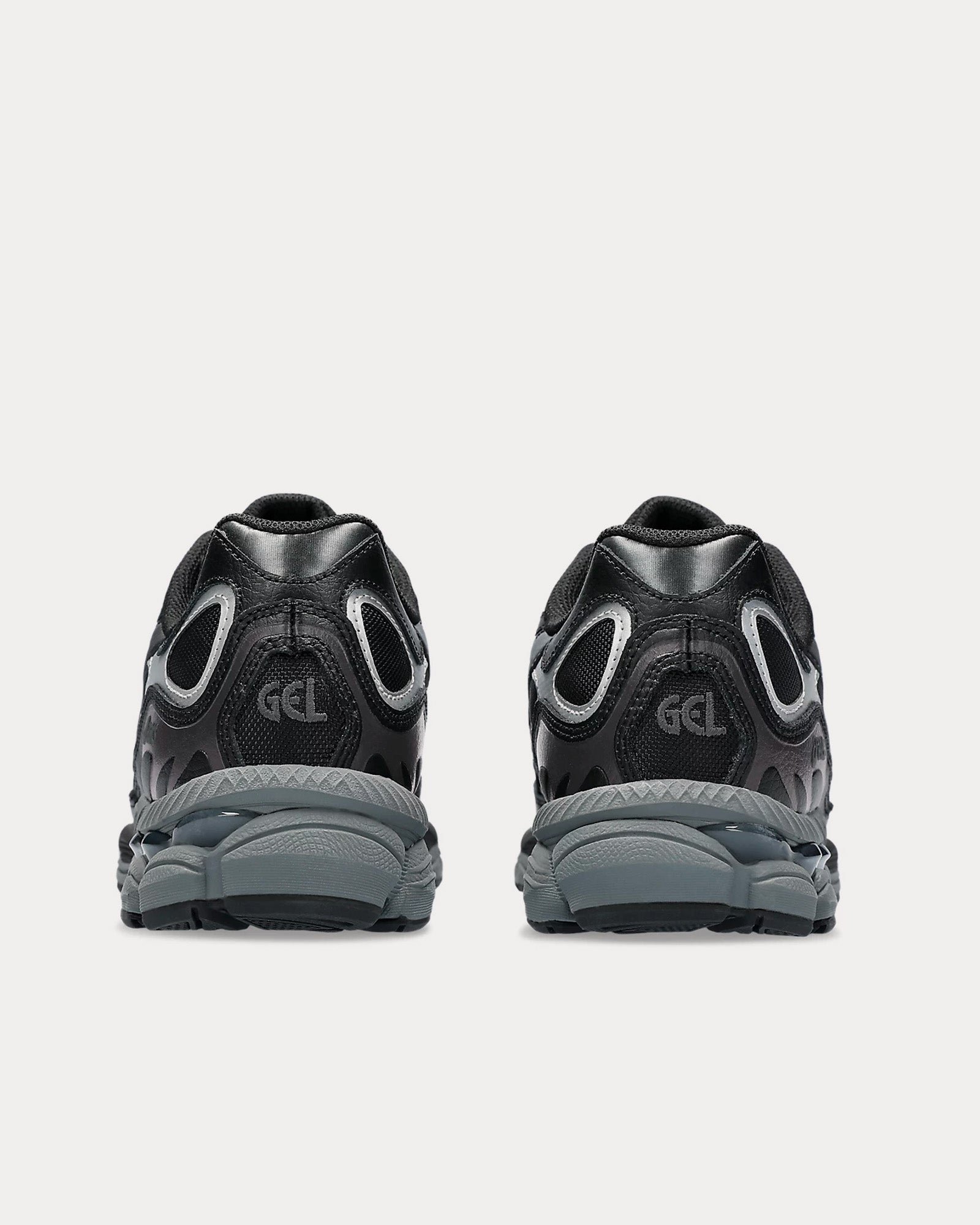 The unisex AsicsGel-NYC low top sneakers in black and graphite grey are inspired by heritage and modern performance running styles with an upper is inspired by the GEL-NIMBUS 3 and MC-PLUS V shoes and rearfoot and forefoot GEL™ technology for comfort in everyday scenarios.