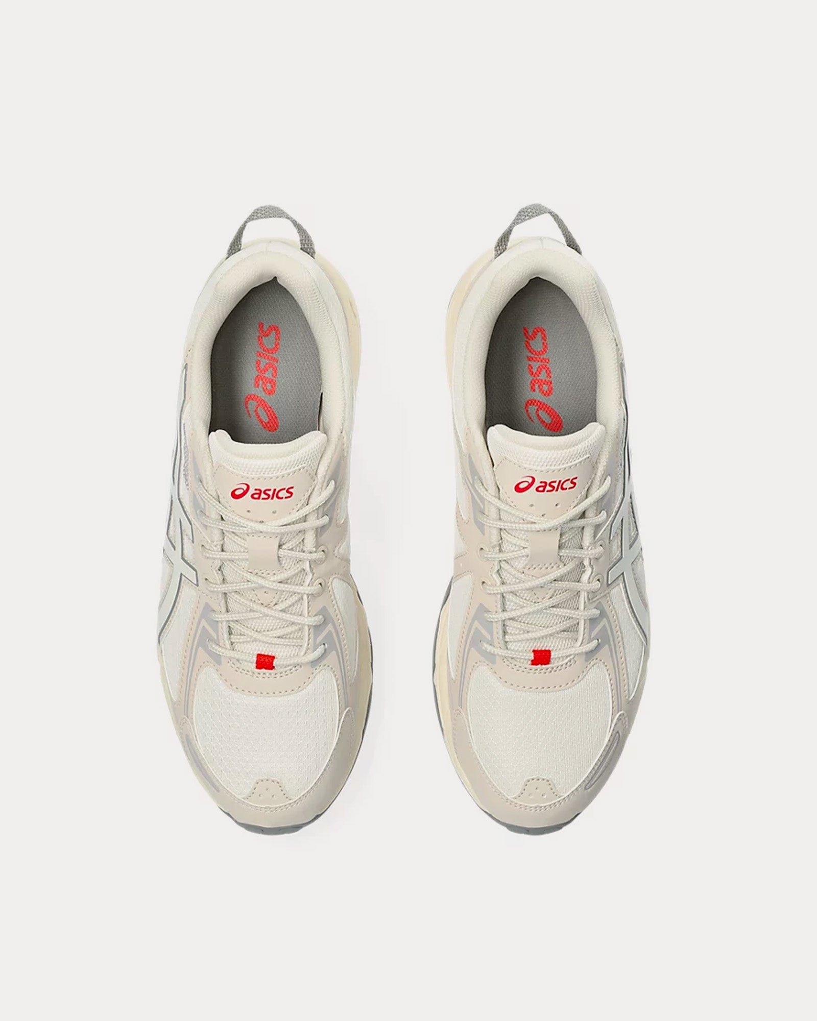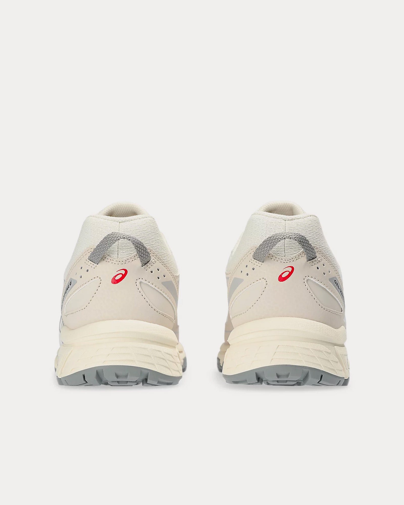 The unisex AsicsGel-Venture 6 low top sneakers in cream are based on trail-running sportstyle designs and feature synthetic leather uppers, panels with targeted support, rearfoot GEL™ technology, and a trail-specific traction pattern.