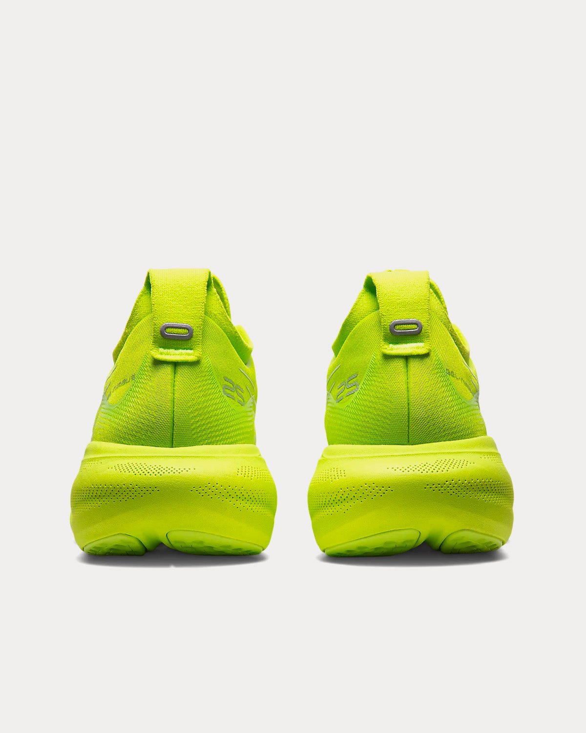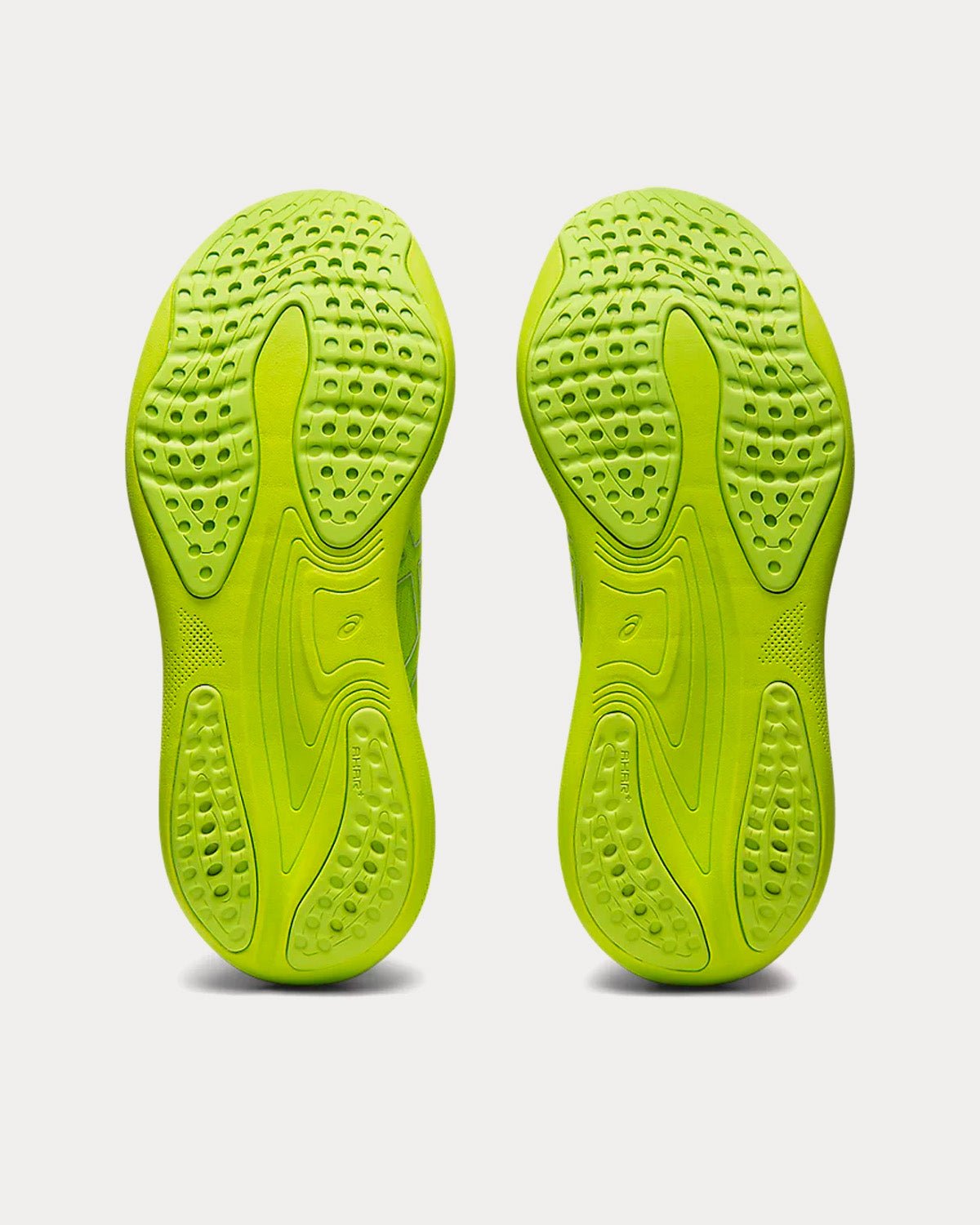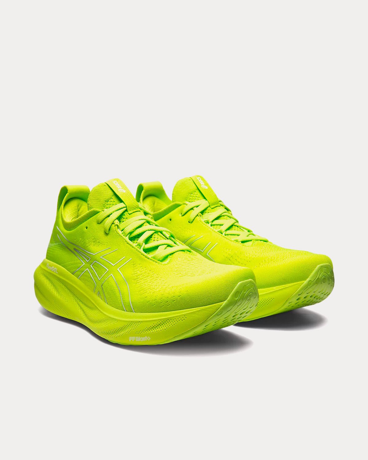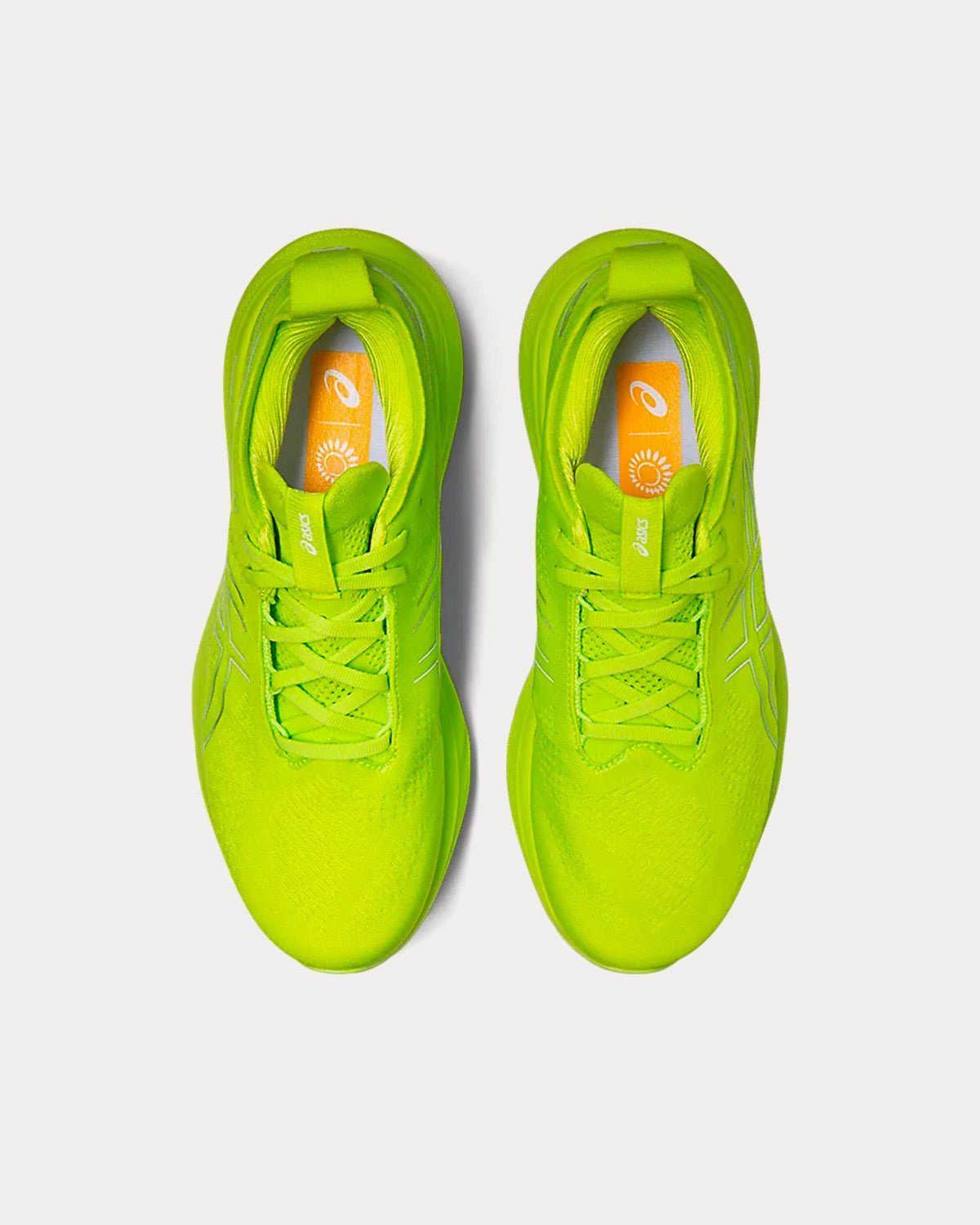 The Asics Gel-NimbusĀ 25 running shoes in lime zest and white features a soft and cushioned design that makes you feel like you’re running on clouds. The neutral trainer has been updated with new materials that enhance your running experience, providing a smoother and softer feel. The upper is made of a soft engineered knit that comfortably hugs your foot while also promoting superior ventilation. The knit collar has been redesigned to improve flexibility and encircle the ankle, offering a more comfortable and luxurious fit.