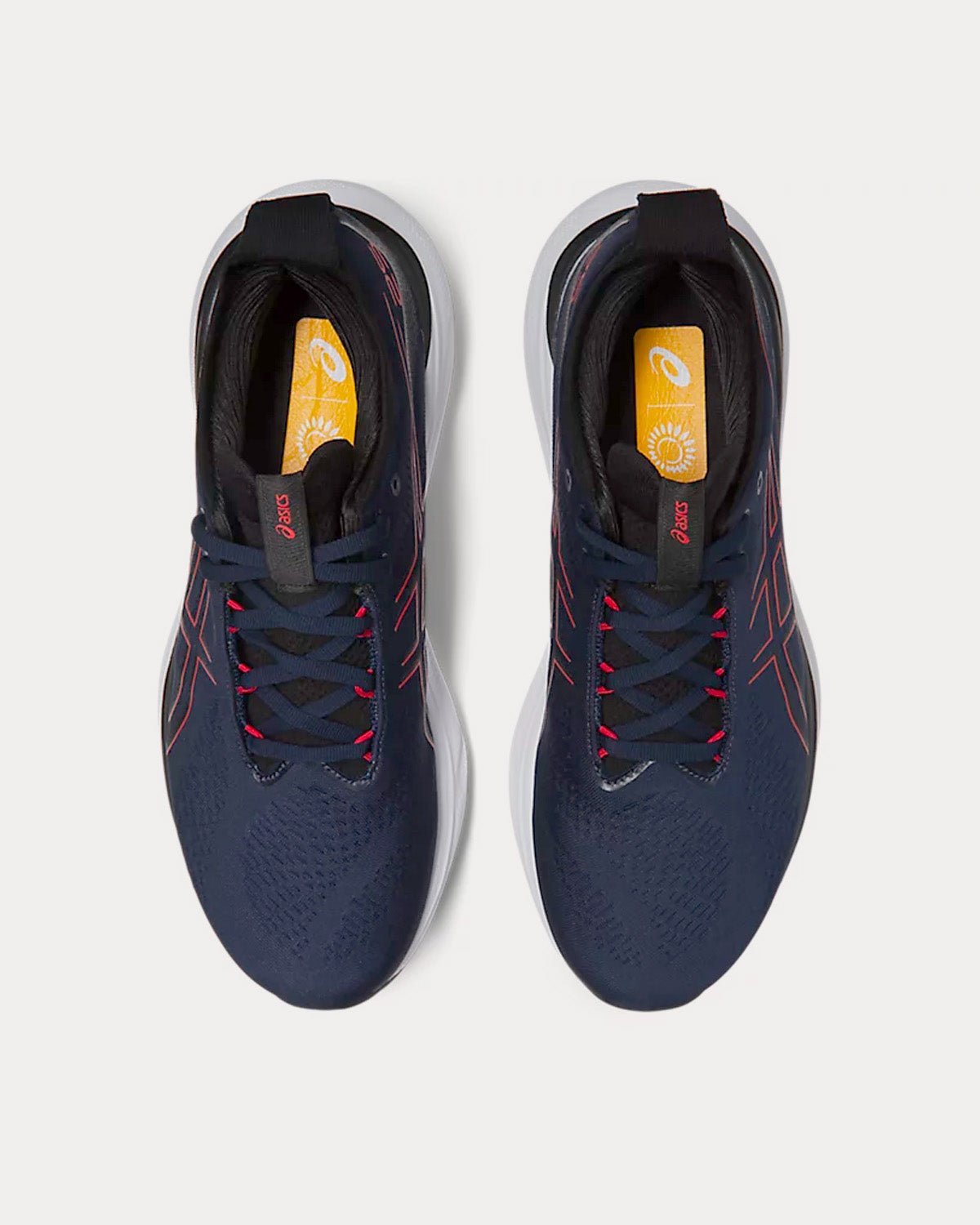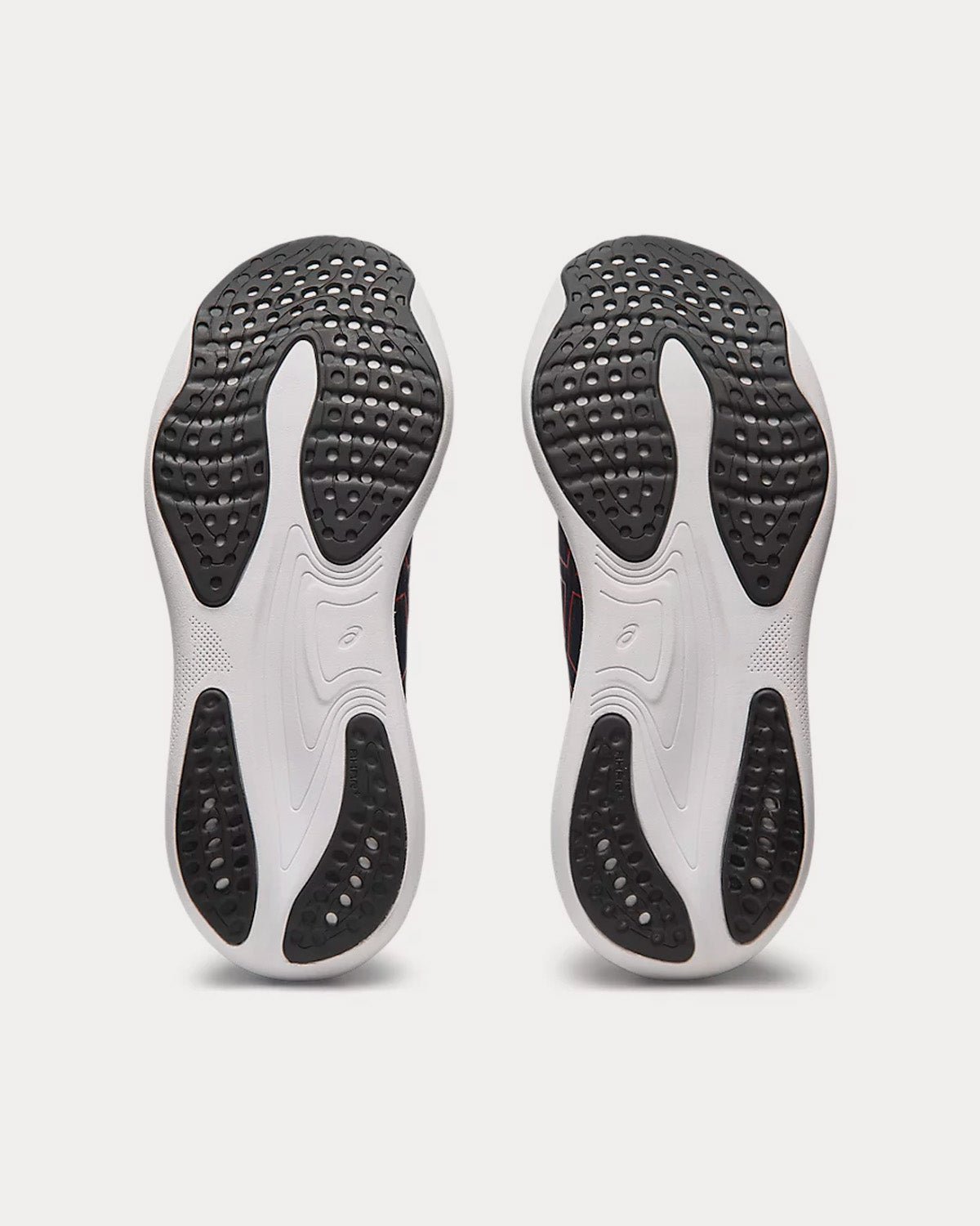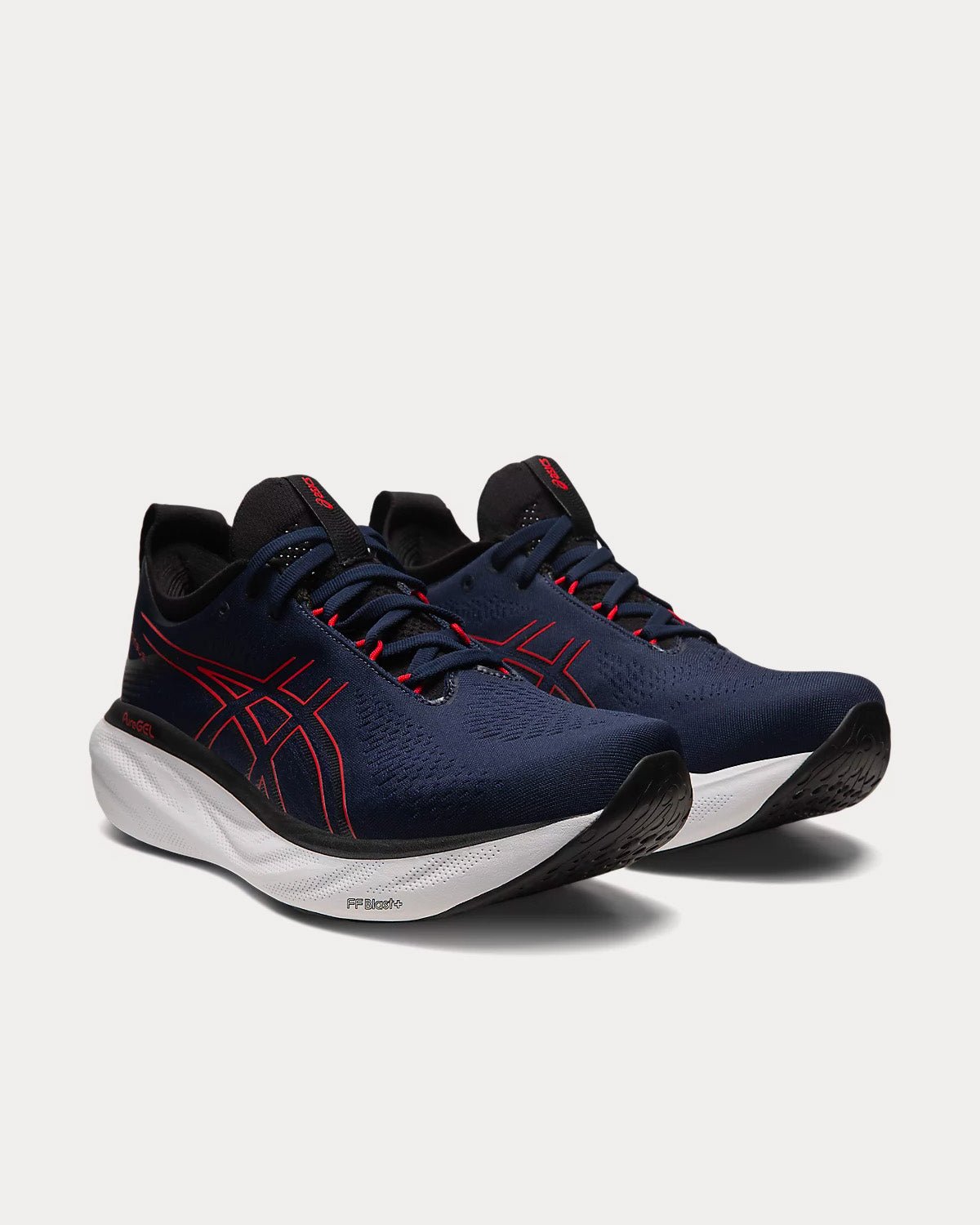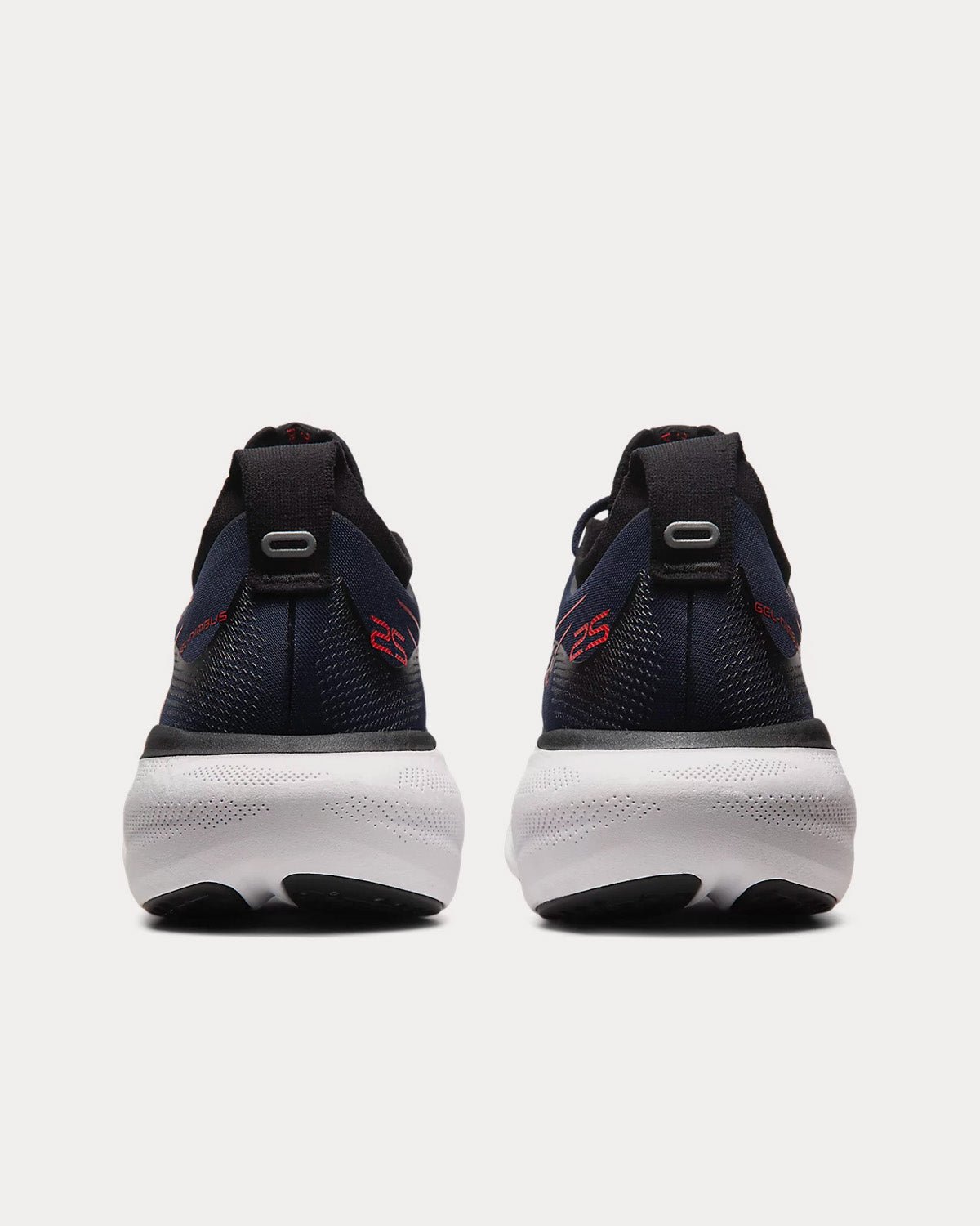 The Asics Gel-NimbusĀ 25 running shoes in midnight and electric red features a soft and cushioned design that makes you feel like you’re running on clouds. The neutral trainer has been updated with new materials that enhance your running experience, providing a smoother and softer feel. The upper is made of a soft engineered knit that comfortably hugs your foot while also promoting superior ventilation. The knit collar has been redesigned to improve flexibility and encircle the ankle, offering a more comfortable and luxurious fit.