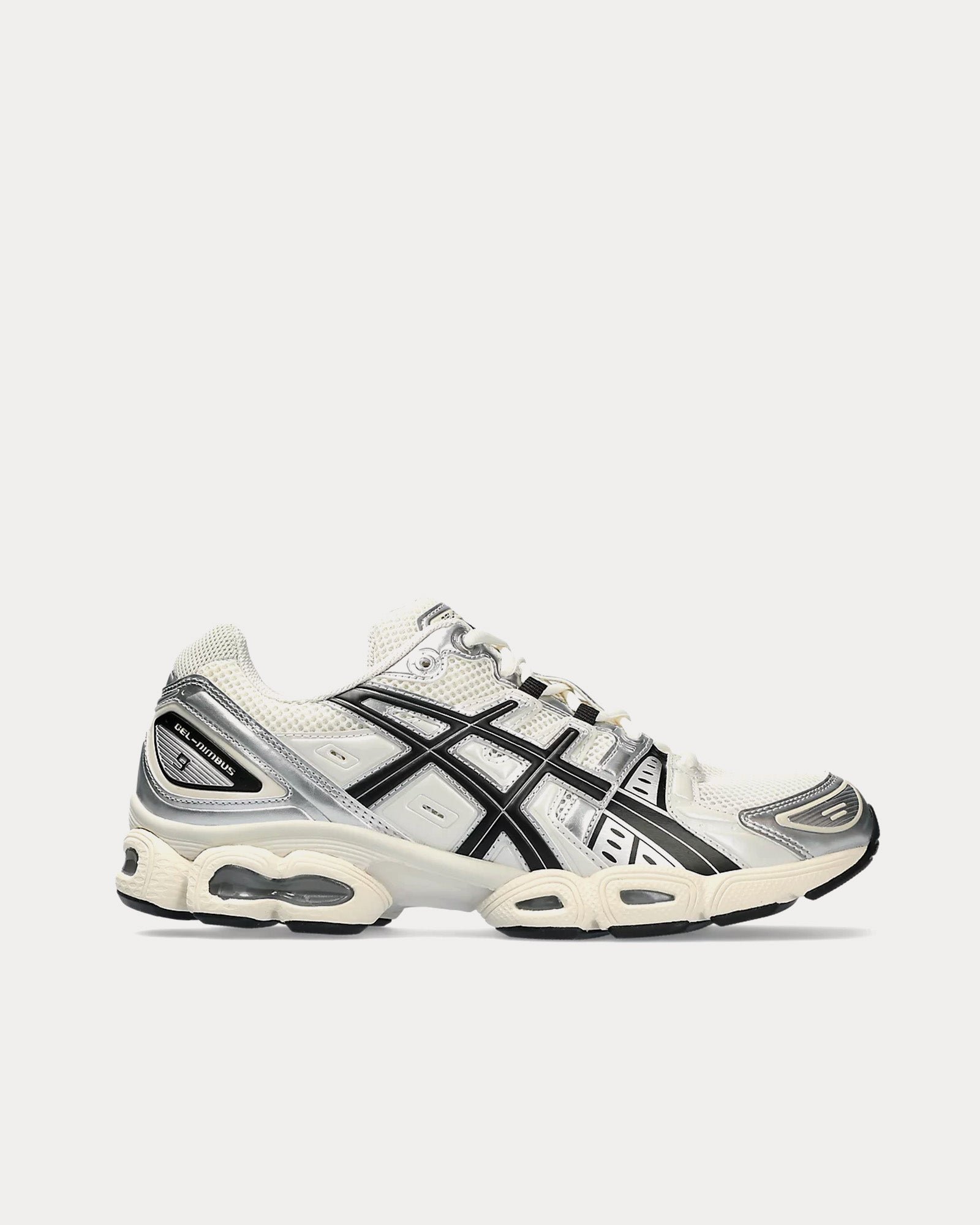 The men’s AsicsGel-Nimbus 9 low top sneakers in cream and blackĀ are based on a Mid-2000s sportstyle design and feature uppers with layered mesh and synthetic leather paneling, GEL⢠technology placed in the heel and forefoot for advanced cushioning, and a segmented midsole The sole is designed to flex to your stride, so you’ll have a smoother running experience and a more responsive ride.