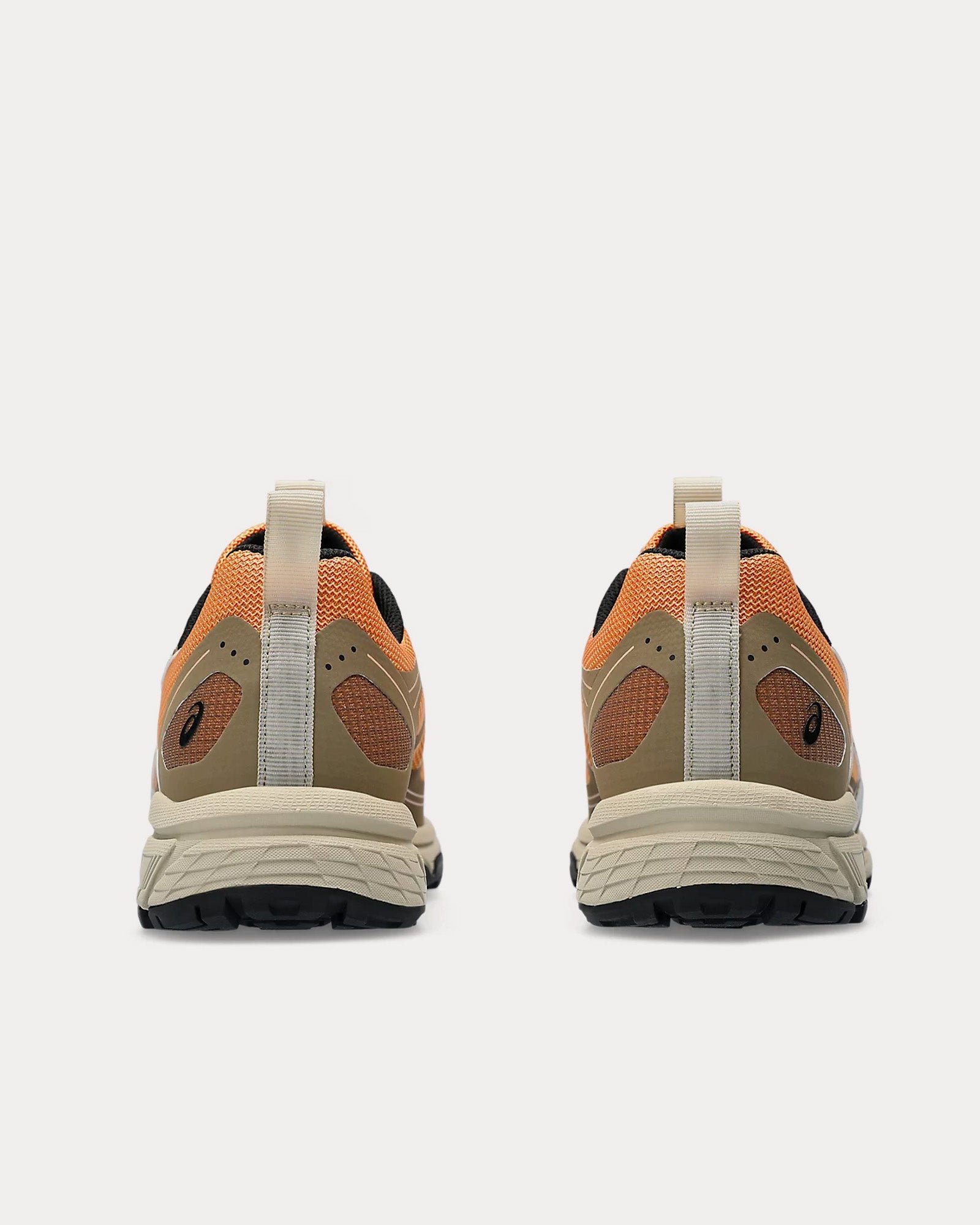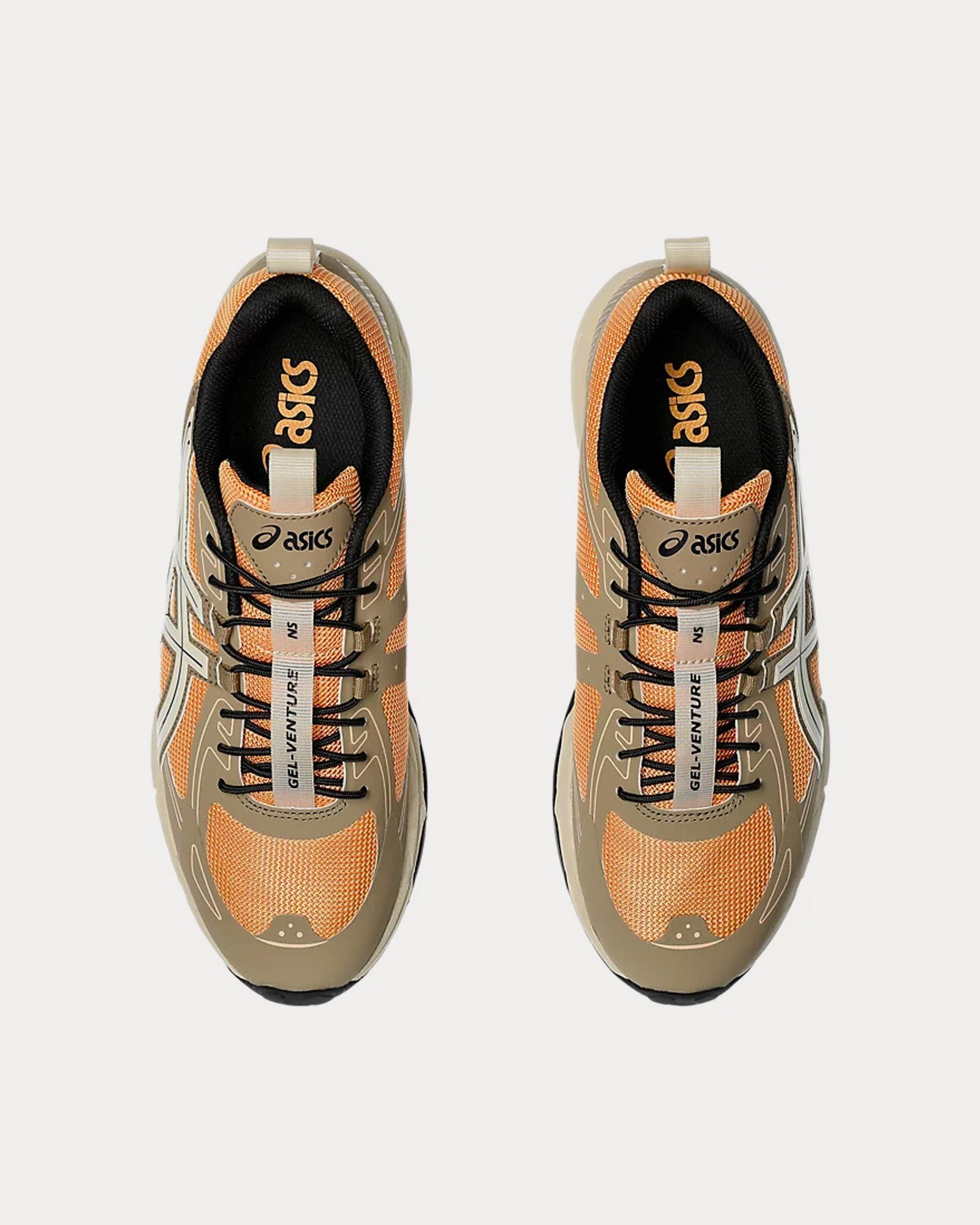 The men’s AsicsGel-Venture 6 NS low top sneakers in orange lily and putty are based on trail-running sportstyle designs and feature synthetic leather uppers, panels with targeted support, rearfoot GEL™ technology, and a trail-specific traction pattern.