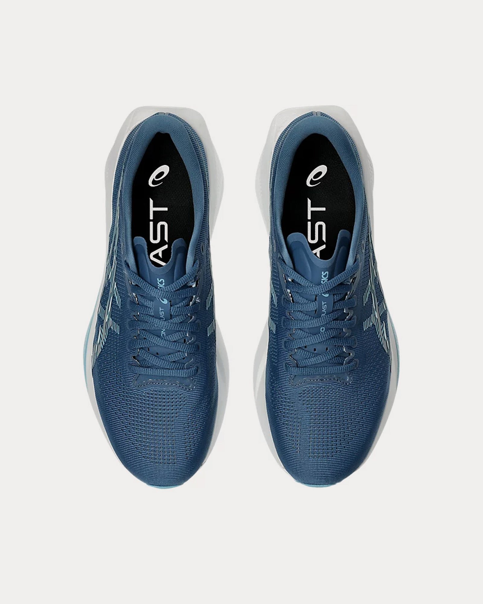 The men’s Asics Sonicblast running shoes in Winter Sea and Stillwater deliver a lightweight and responsive ride for tempo runs and daily training. A two-layered foam midsole pairs advanced FF BLAST™ MAX with pinnacle FF TURBO²™ cushioning, designed for cloud-like softness, energetic rebound, and long-distance comfort.