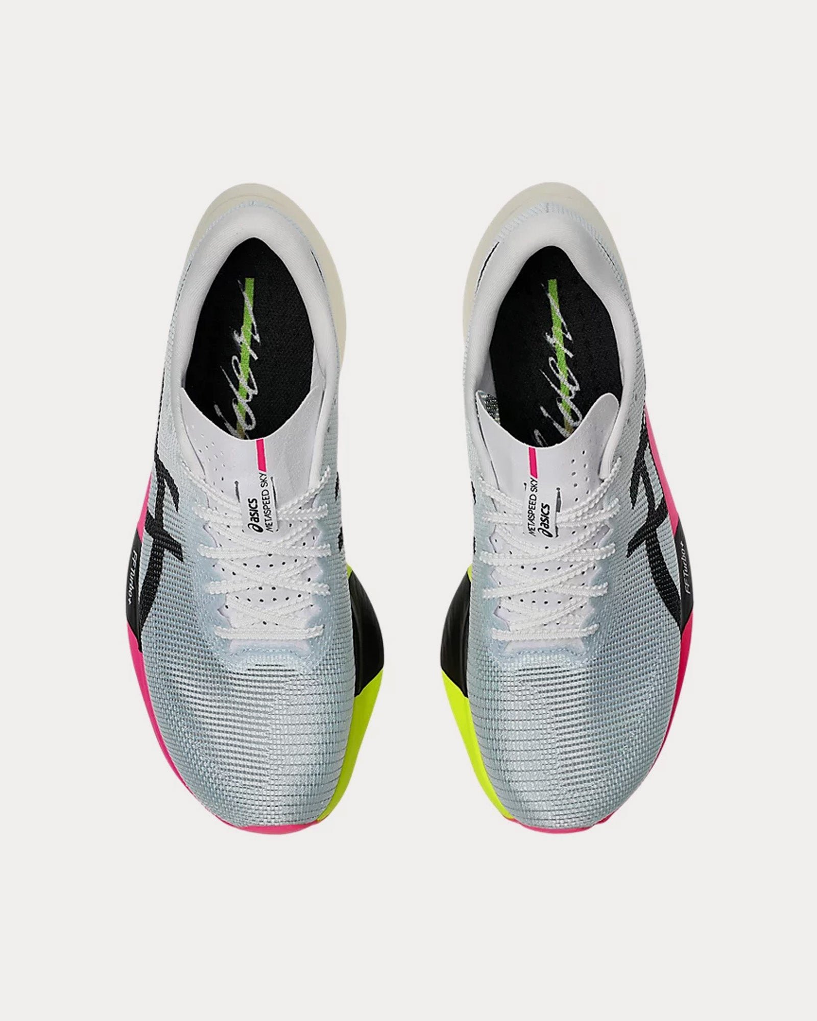 The unisex Asics Metaspeed Sky Paris running shoes in light blue and blackĀ are designed for cadence-style runners who are looking to start fast and finish faster and feature MOTION WRAP 2.0 uppers designed to improve breathability and comfort, FF TURBO PLUS cushioning to improve compression and help provide more energy savings, a curved sole design helping runners conserve more energy in each step, and carbon plates to guide your foot throughout your step and propels your foot forward.