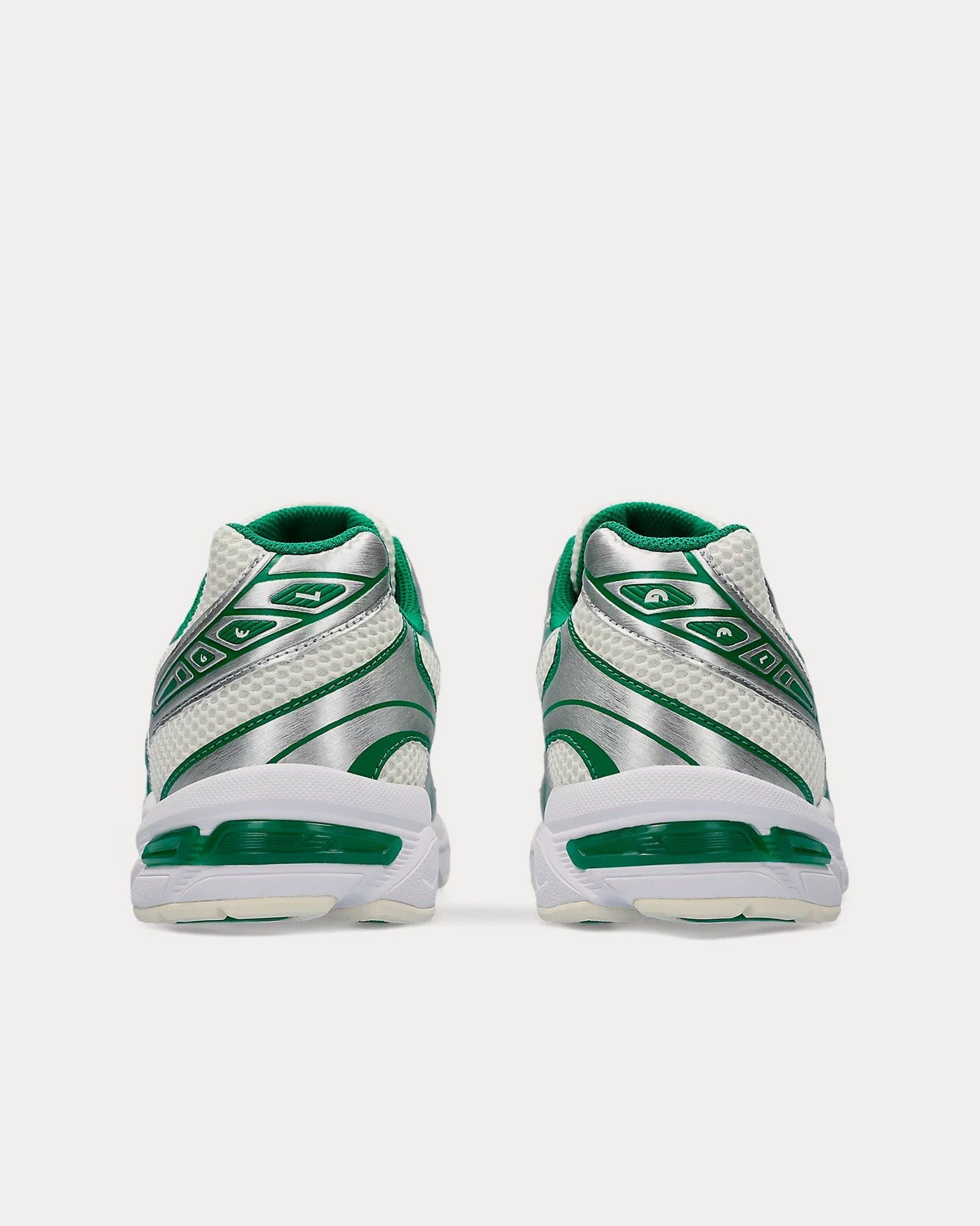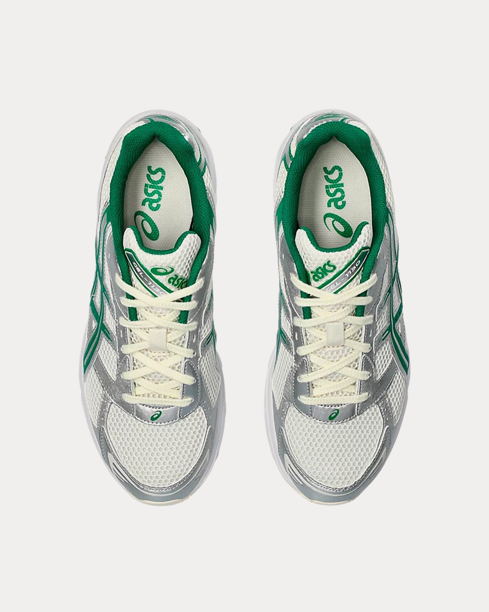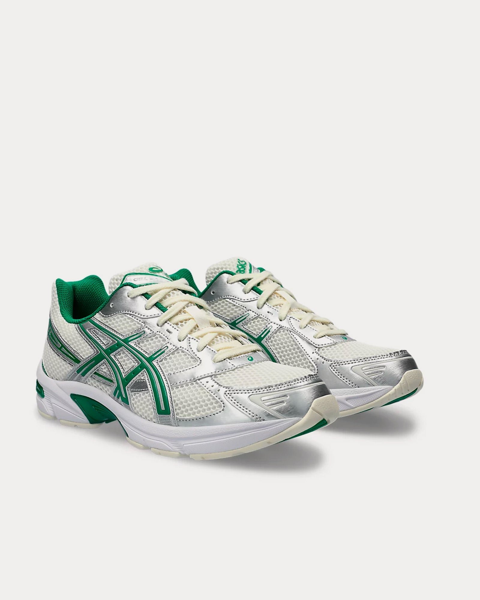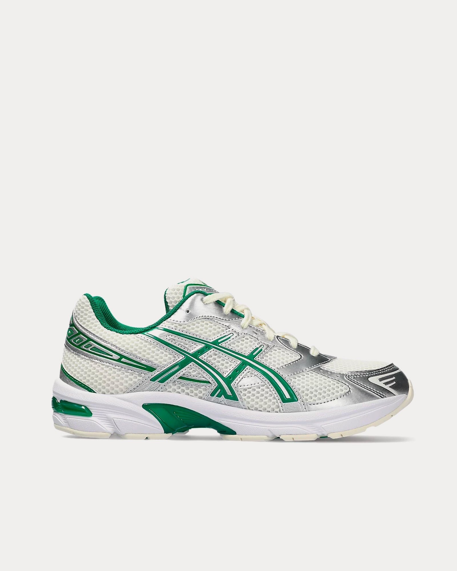 The women’s Asics Gel-1130 low top sneakers in cream and kale feature a late 2000s runner aesthetic, GEL™ technology cushioning to provide excellent shock absorption, and synthetic leather overlays and mesh underlays. The upper’s main material is designed with more than 20% recycled materials.