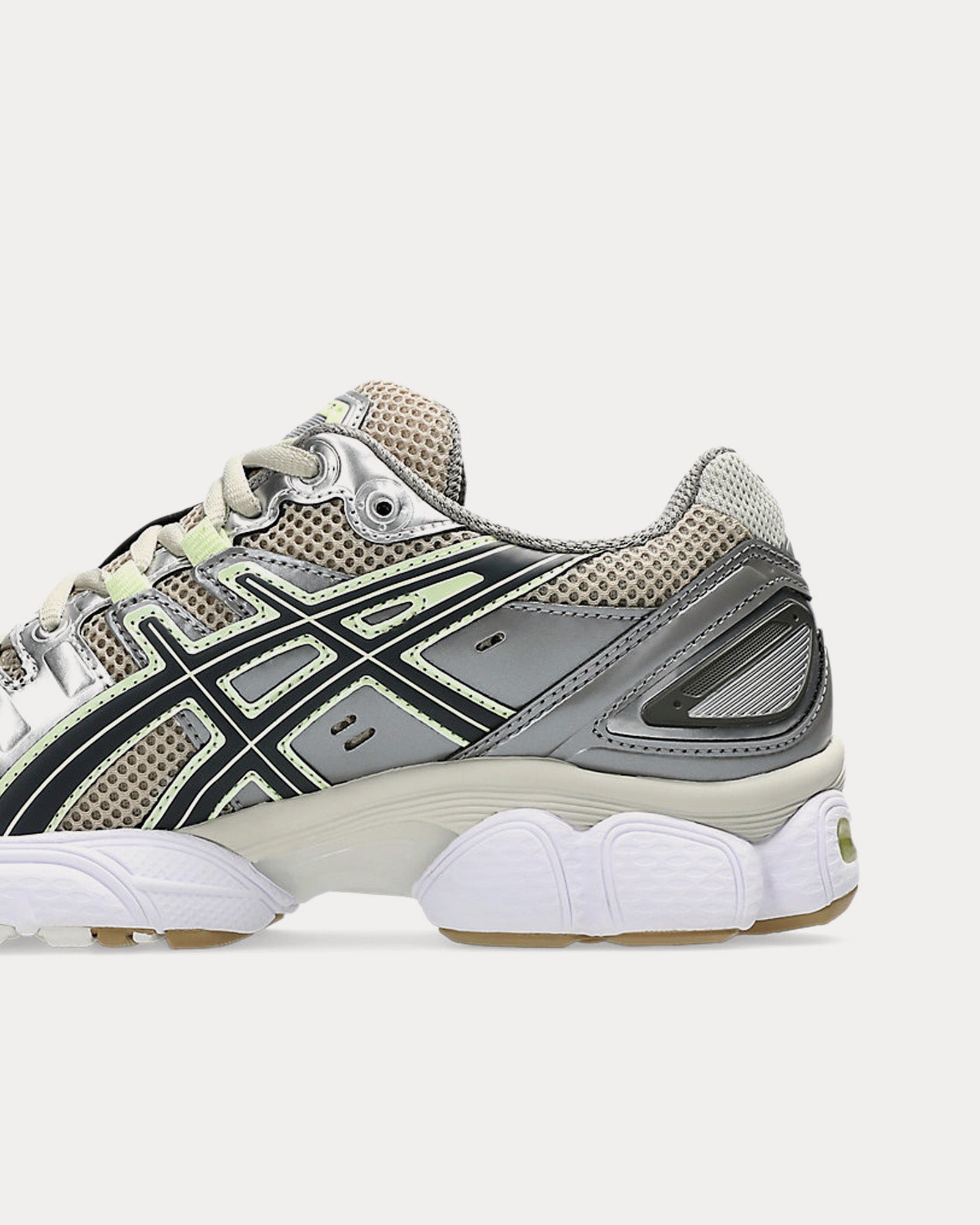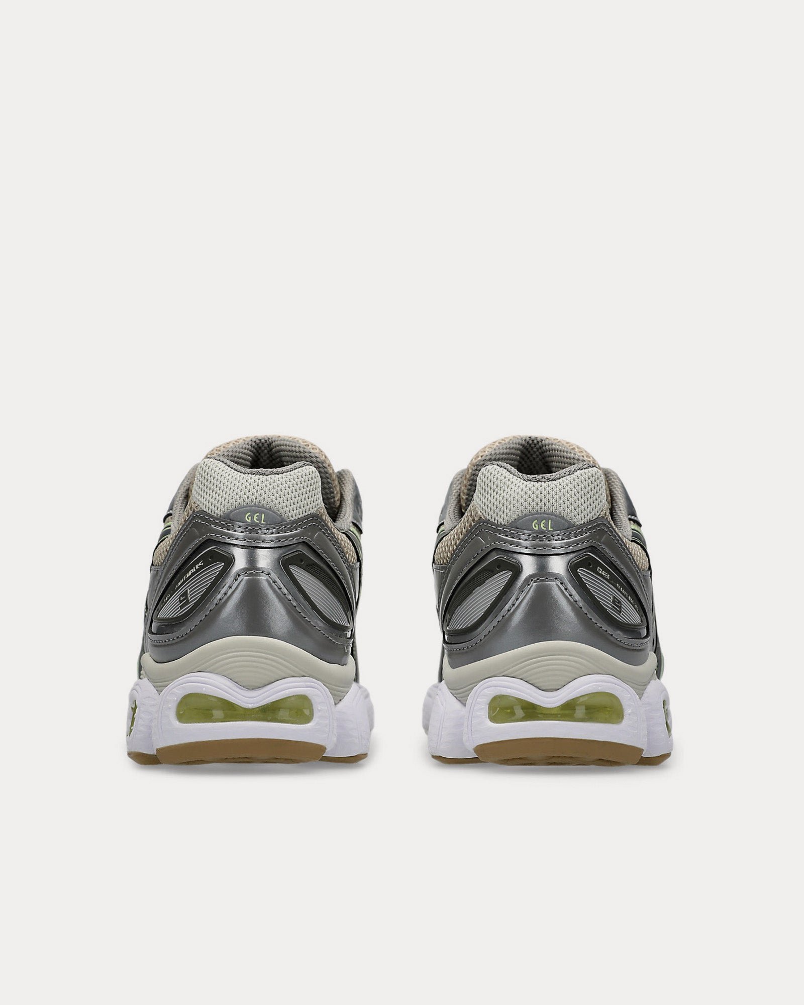 The women’s AsicsGel-Nimbus 9 low top sneakers in feather grey and carrier grey are based on a Mid-2000s sportstyle design and feature uppers with layered mesh and synthetic leather paneling, GEL™ technology placed in the heel and forefoot for advanced cushioning, and a segmented midsole The sole is designed to flex to your stride, so you’ll have a smoother running experience and a more responsive ride.