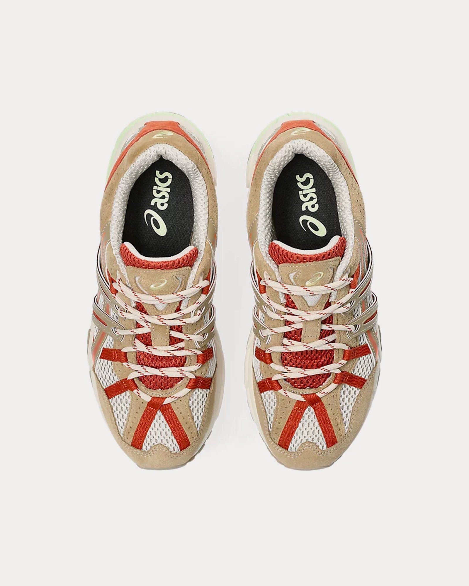 The women’s AsicsGel-Sonoma 15-50 low top sneakers in oatmeal and safari khaki are designed for everyday foot traffic to hiking rocky hillsides, with advanced cushioning and traction.