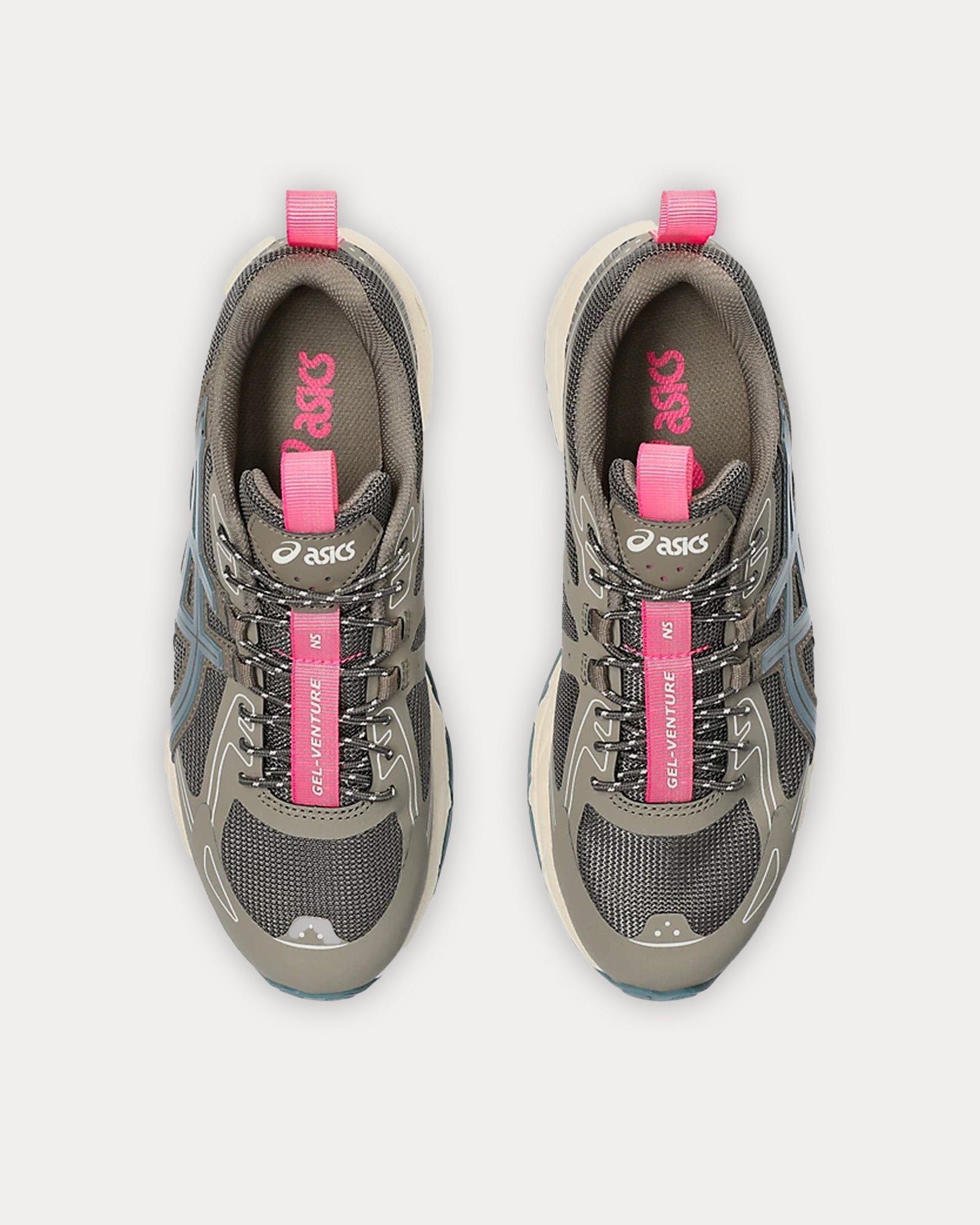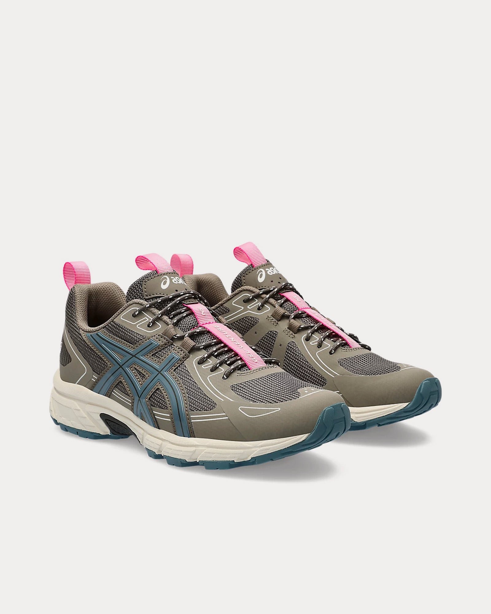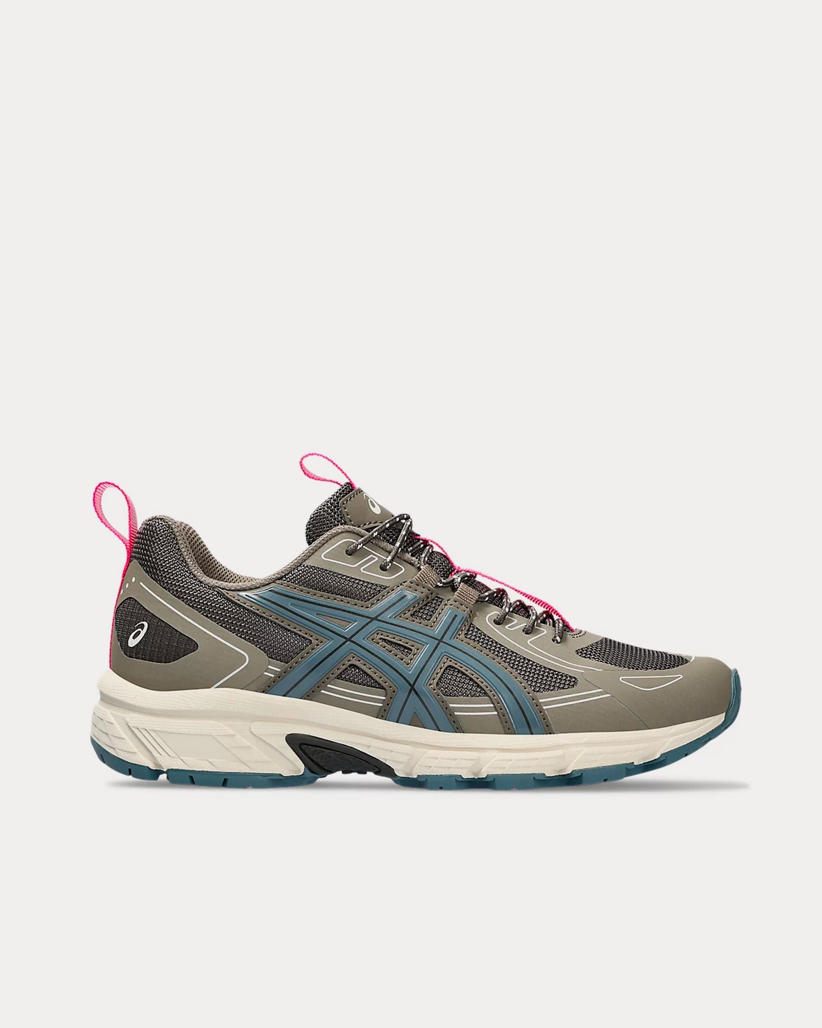 The women’s AsicsGel-Venture 6 NS low top sneakers in dark sepia and ironclad are based on trail-running sportstyle designs and feature synthetic leather uppers, panels with targeted support, rearfoot GEL™ technology, and a trail-specific traction pattern.