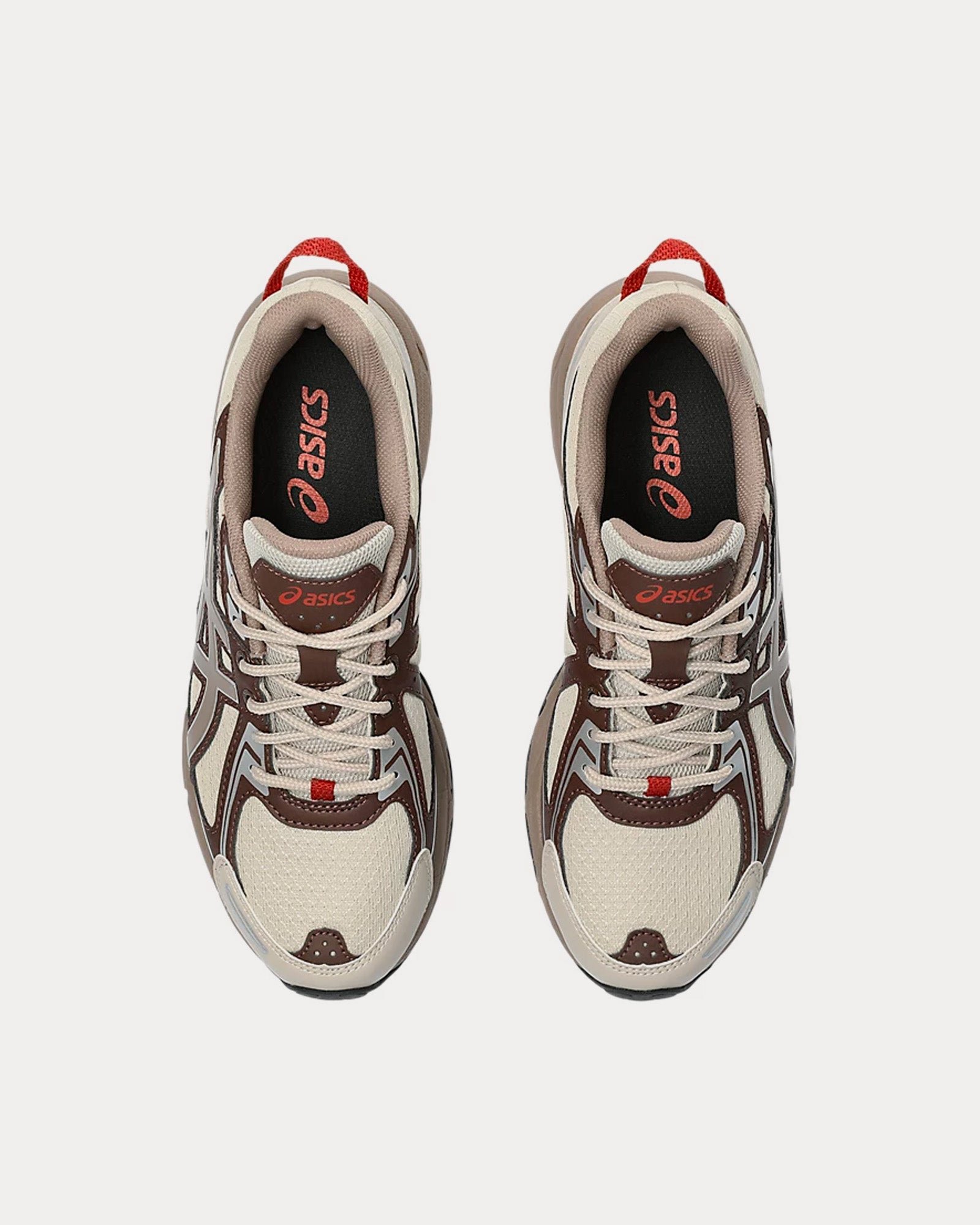 The women’s AsicsGel-Venture 6 low top sneakers in simply taupe and taupe greyare based on trail-running sportstyle designs and feature synthetic leather uppers, panels with targeted support, rearfoot GEL™ technology, and a trail-specific traction pattern.
