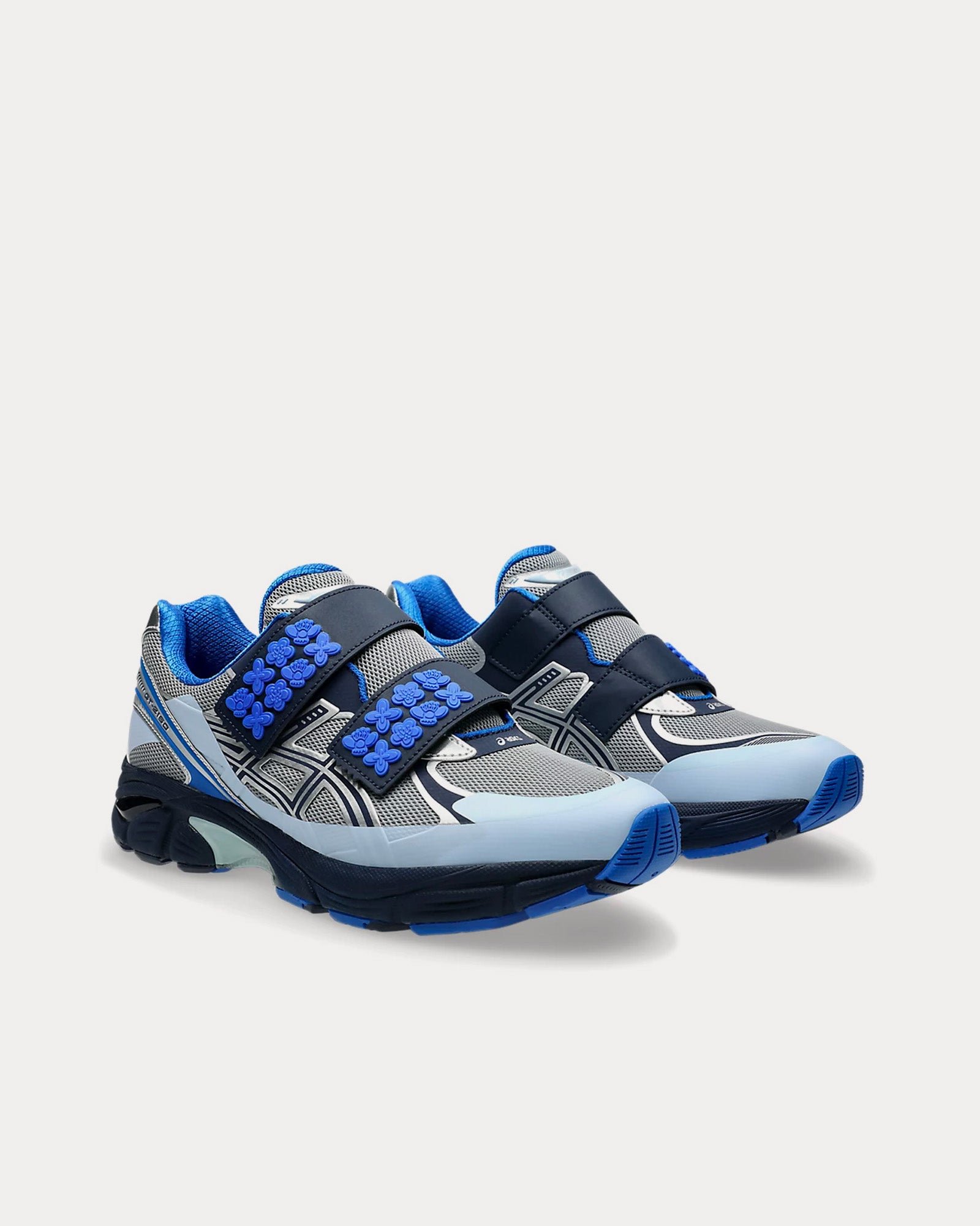 The unisex Asics x Cecilie BahnsenGT-2160 low top sneakers in pure silver and midnight feature intricate couture detailing and technical function, 2000’s era upper design with recognizable lines, and silver overlays upon an innovative mesh base, and ASICS’ GEL technology enhances the midsole for an optimal wearing experience.