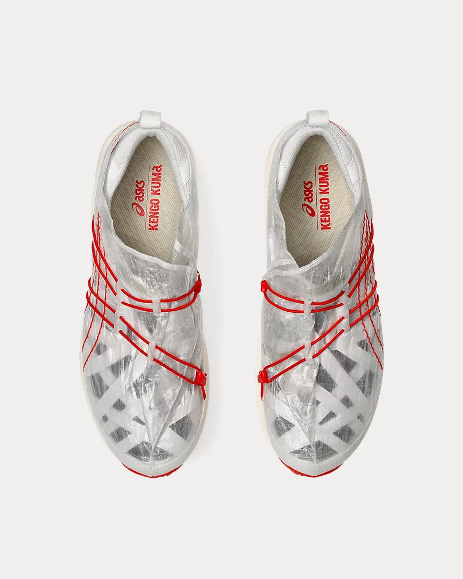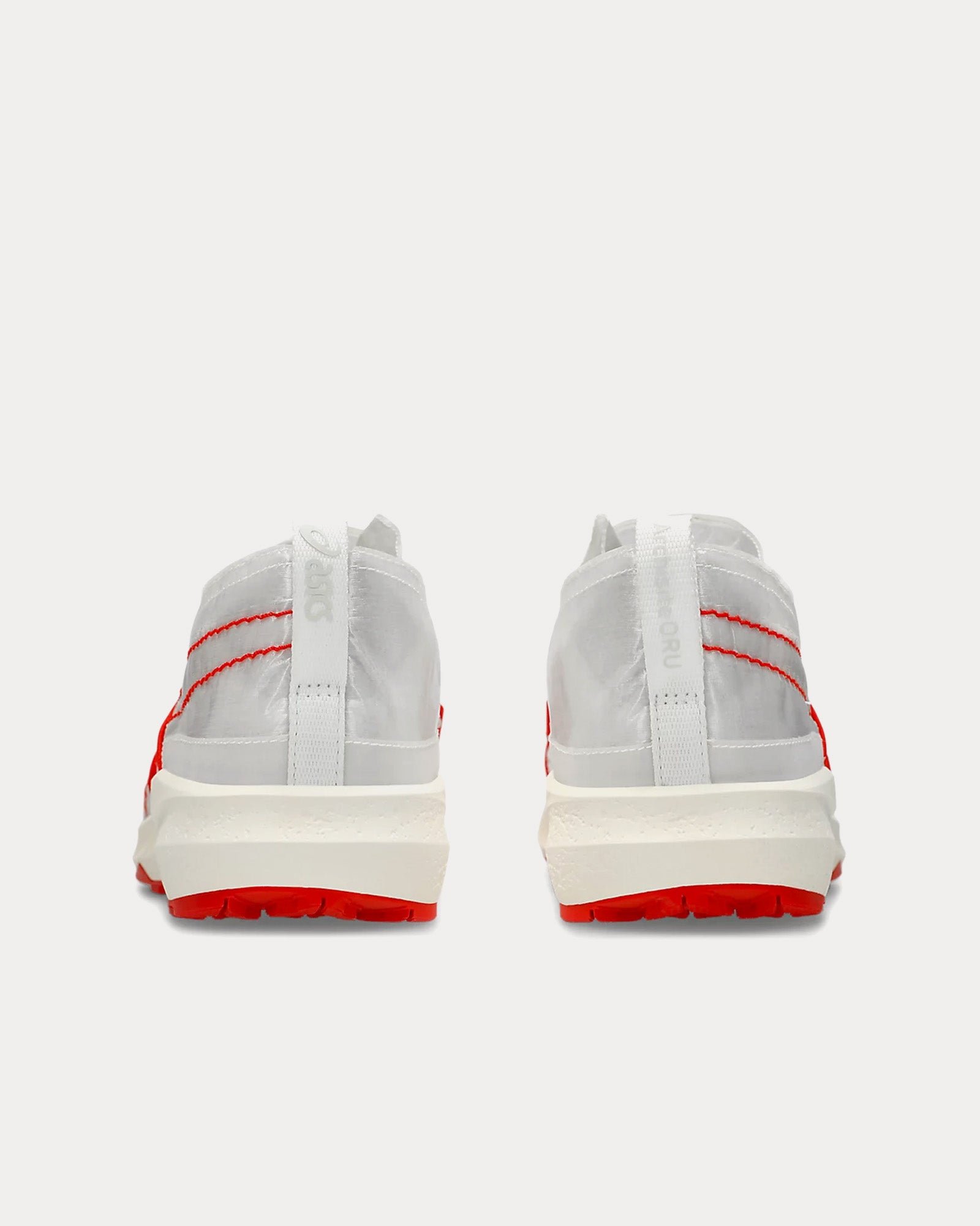 The unisex Asics x Kengo KumaArchisite ORU2 low top sneakers in white and white are the The third collaboration between ASICS and Kengo Kuma (Kengo Kuma Architects and Urban Design Office)and feature Dyneema material in on upper cover, vibrant orange straps, and a “heavy knitting” structure.