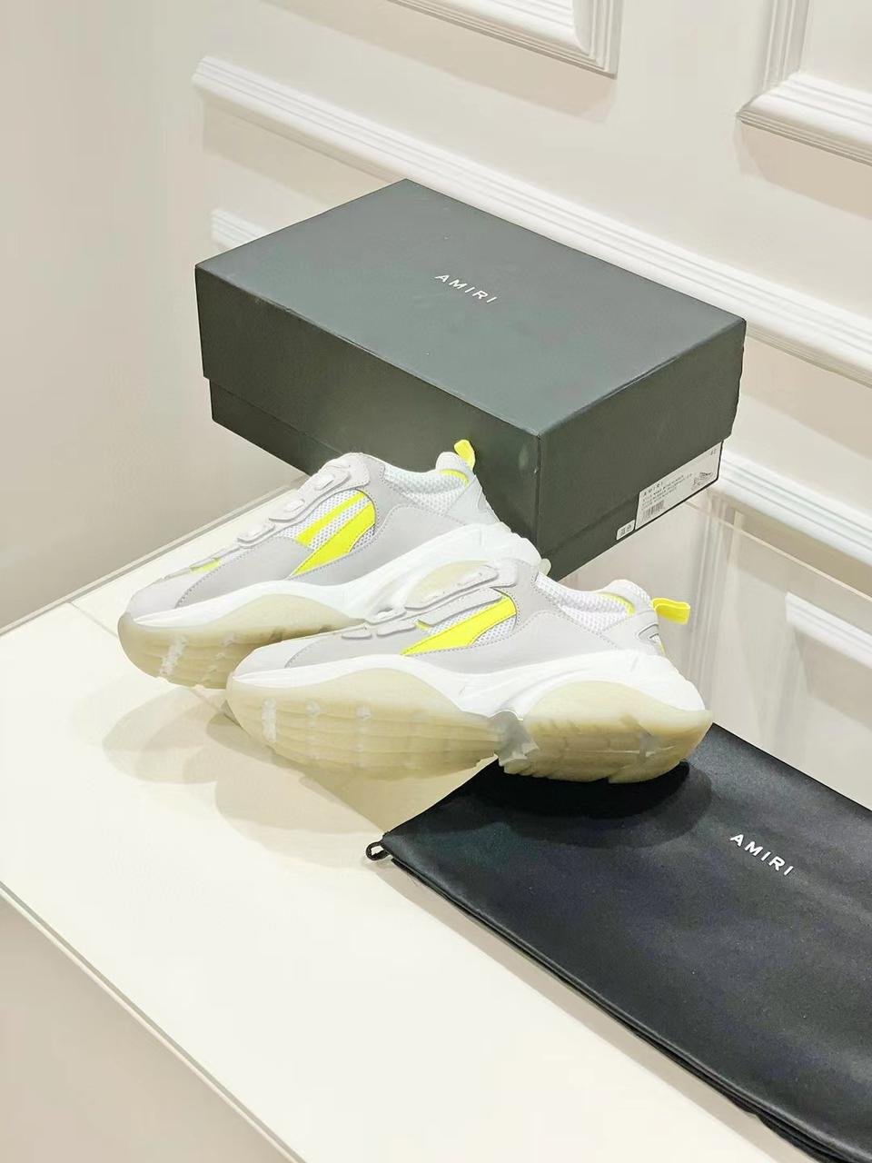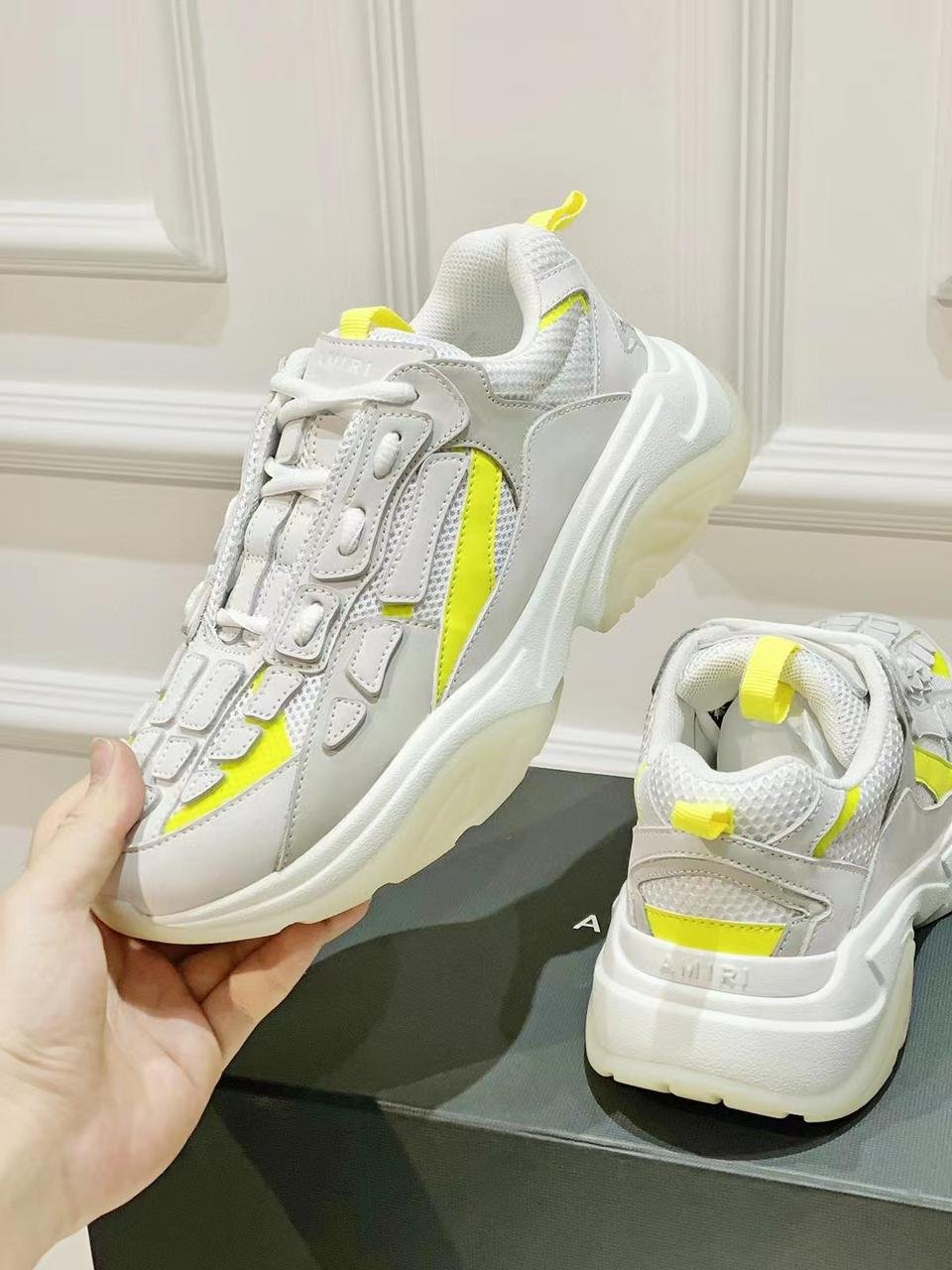 Sortez avec style avec les baskets basses en daim AMIRI Bone Runner ! Confectionnées en cuir de veau de première qualité, ces baskets sont disponibles en quatre couleurs vives et sont livrées avec une boîte de la marque, un sac de transport, une housse de protection, une carte de visite, un article en cours de vente et une facture. Améliorez votre style et ajoutez une touche d’aventure à votre garde-robe avec AMIRI !