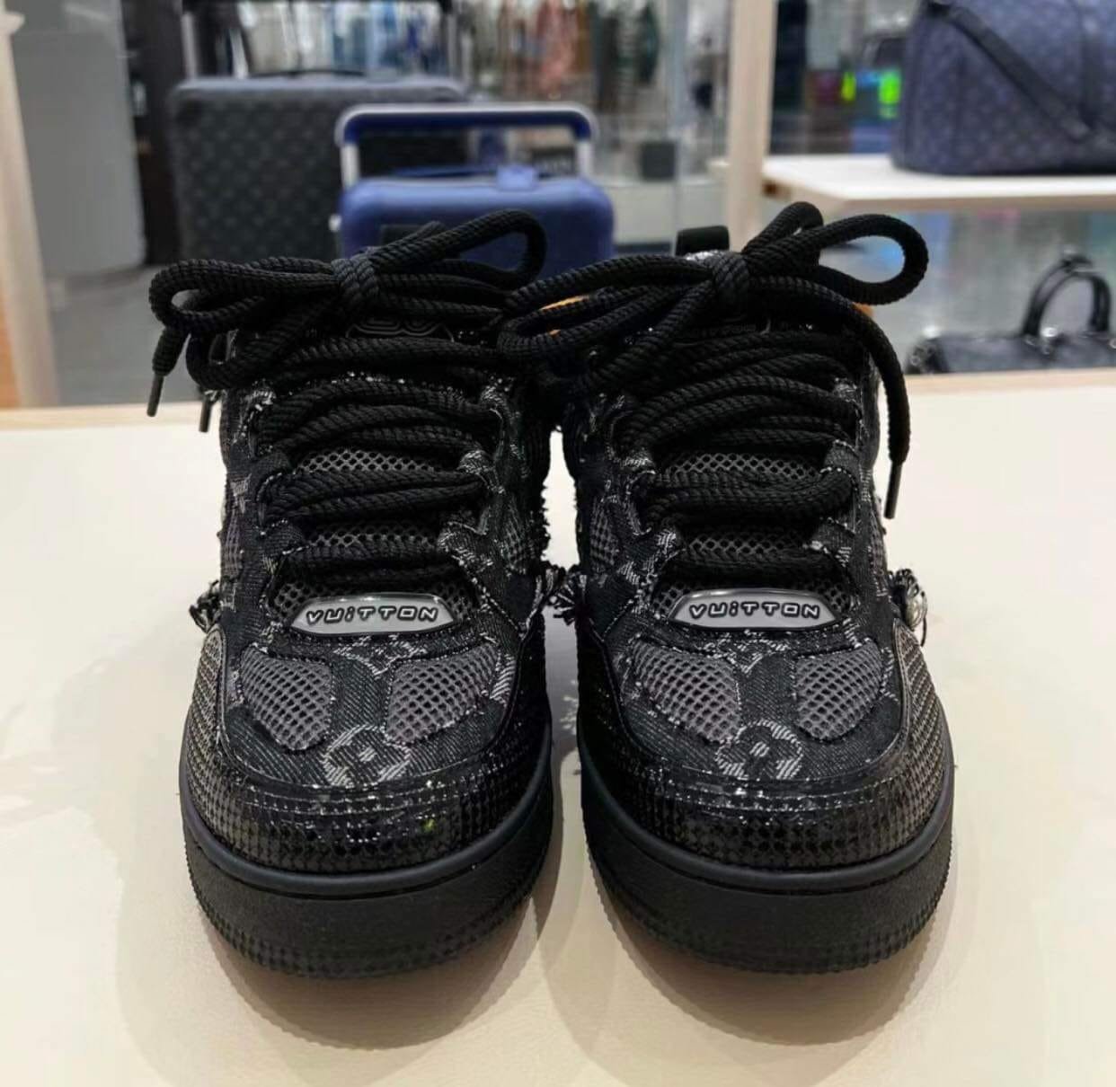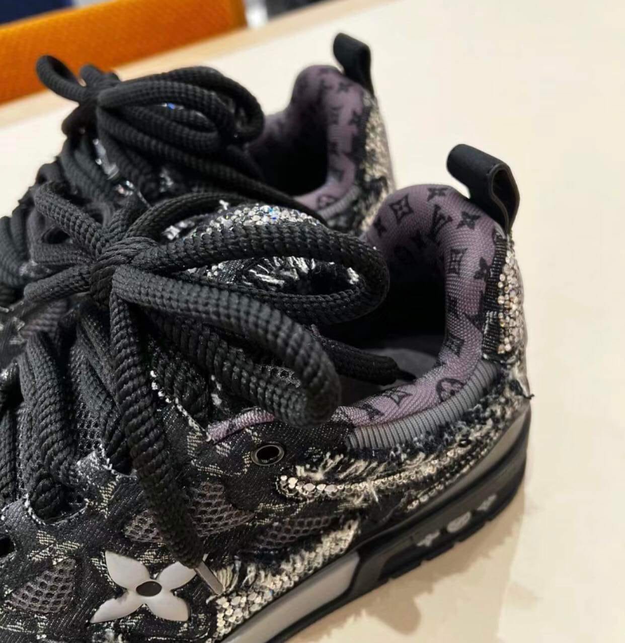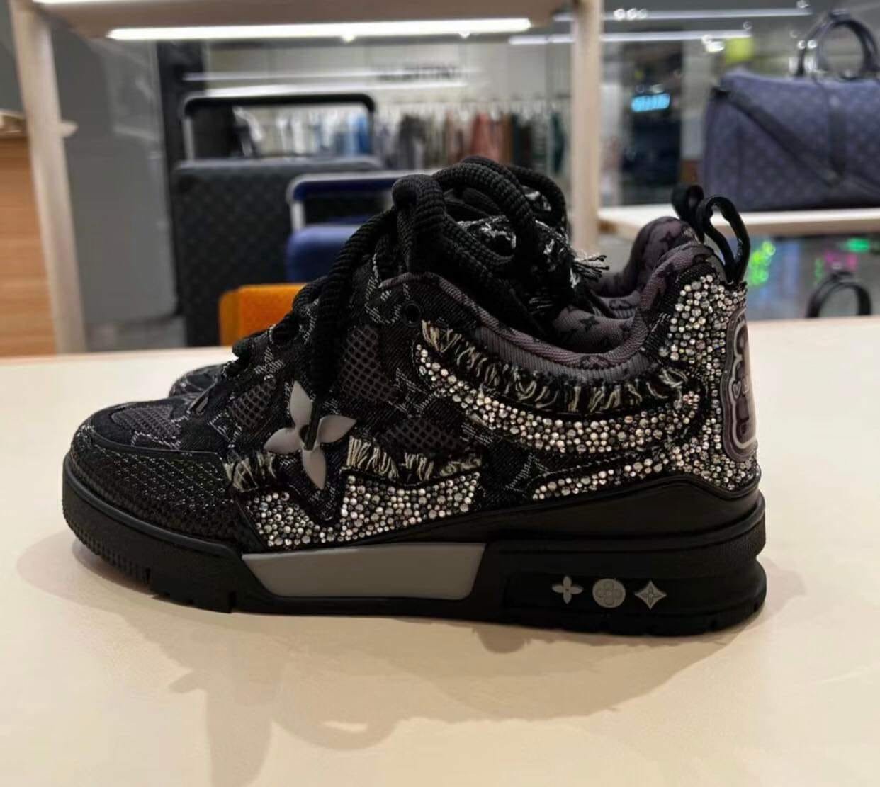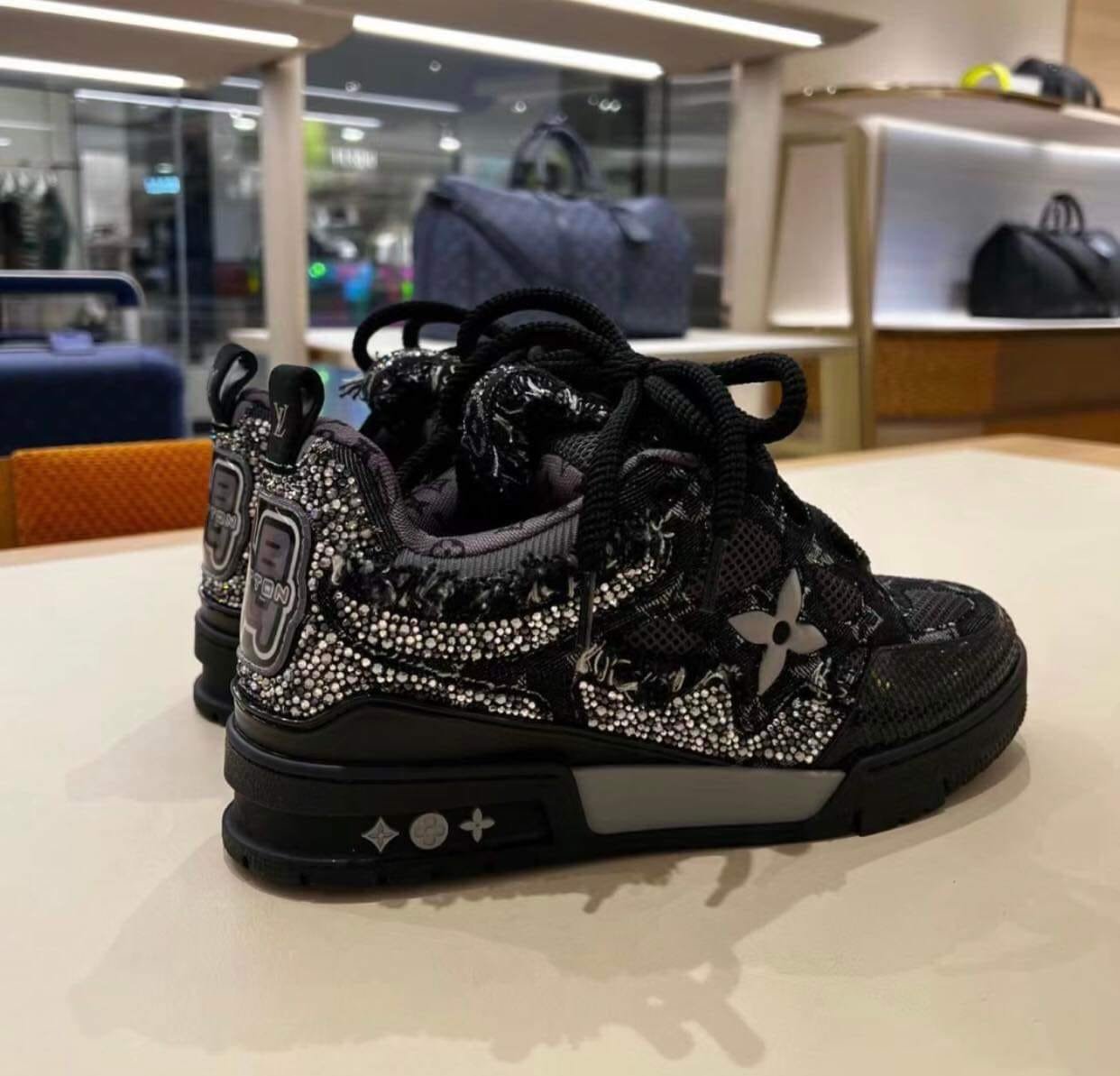 Cette édition exceptionnelle de la sneaker LV Skate associe le denim Monogram à des cristaux Swarovski™ scintillants et à une maille technique. Ce modèle d’inspiration années 90 se distingue par son col et sa languette rembourrés, ornés du logo LV since 54, en référence à 1854, année de la fondation de Louis Vuitton. Des lacets doubles techniques et une semelle extérieure en caoutchouc bicolore complètent ce modèle.