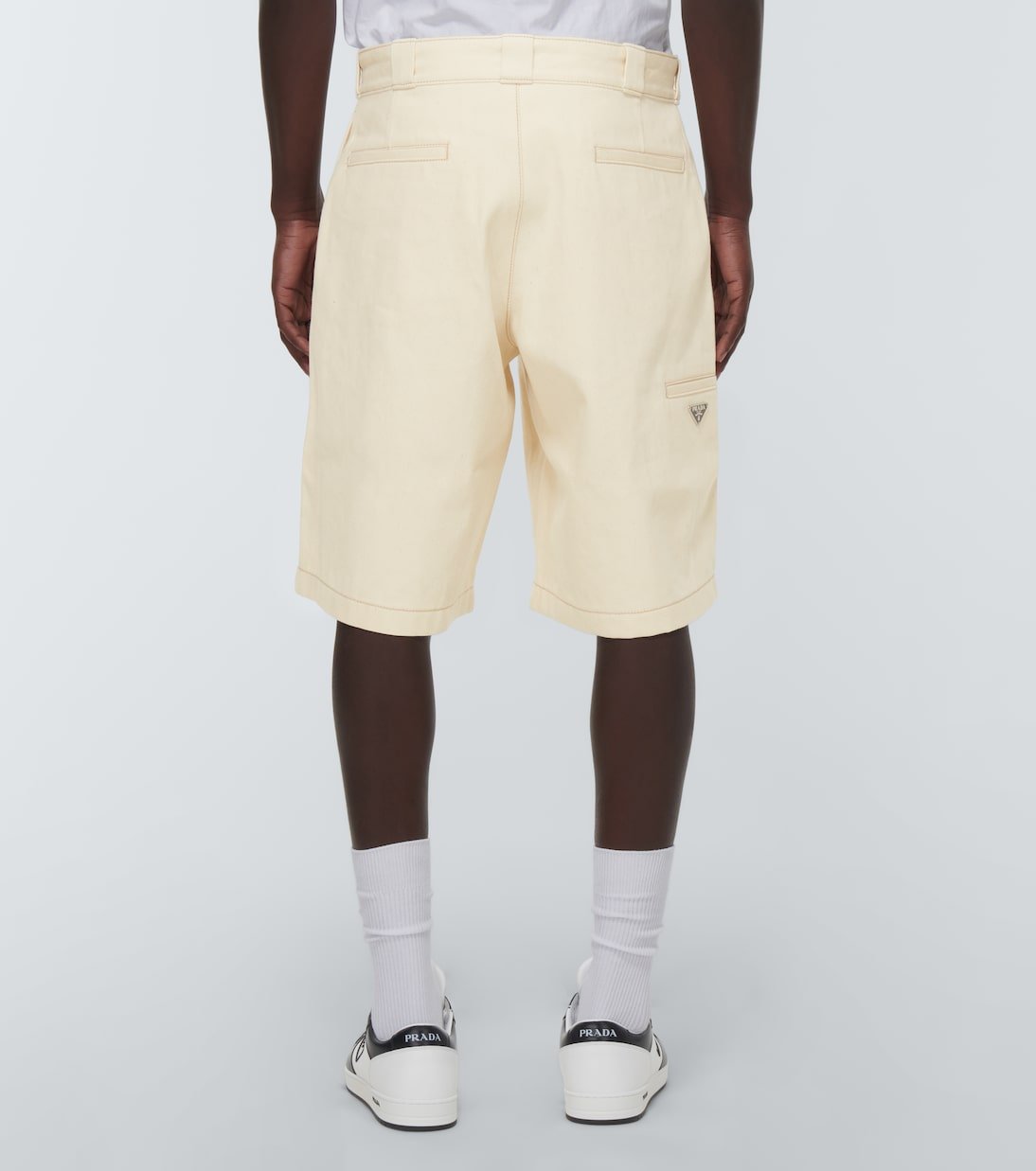 Ce bermuda en denim de Prada affiche un style vintage original. Ce modèle blanc cassé présente une coupe droite et des surpiqûres contrastées.