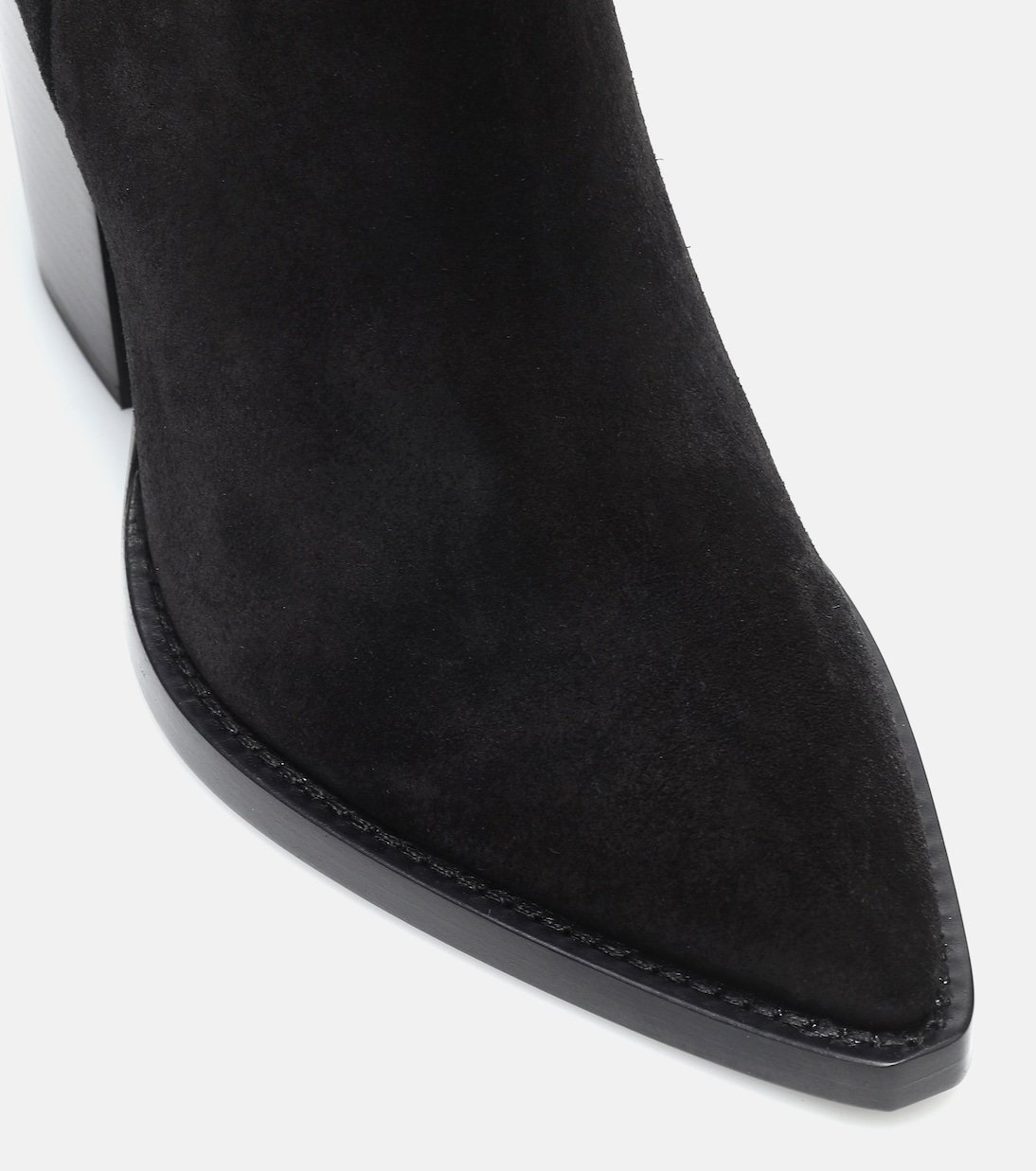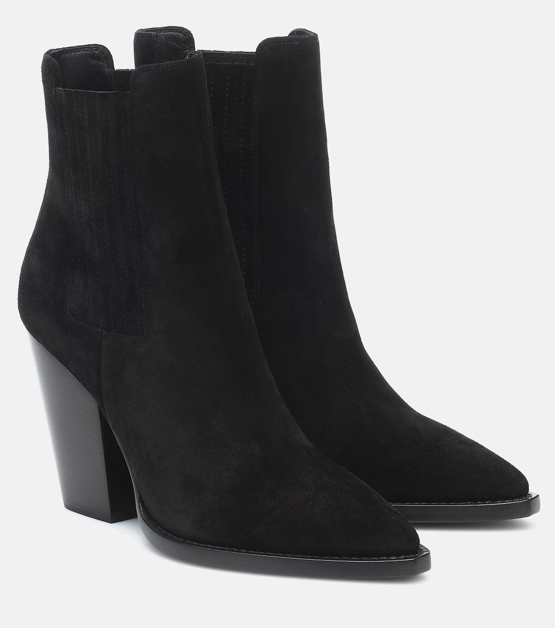Les bottines Theo de Saint Laurent ont été réalisées en daim velouté noir et sont montées sur d’épais talons bottiers incurvés de 95 mm. Faciles à enfiler grâce à leur tirette placées à l’arrière, elles présentent un élégant bout pointu pour un style affirmé. Portez-les notamment avec vos jeans raccourcis, le week-end.
