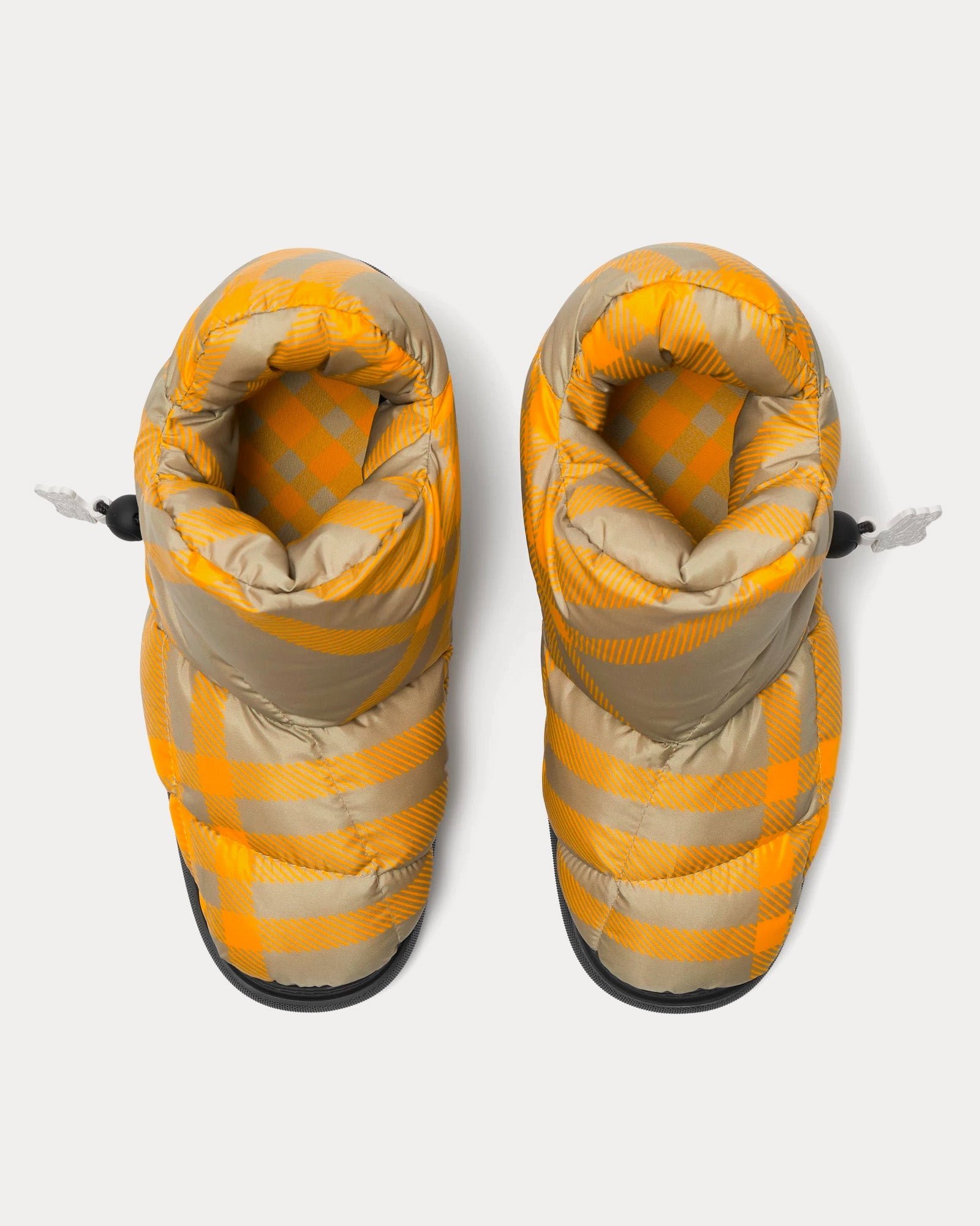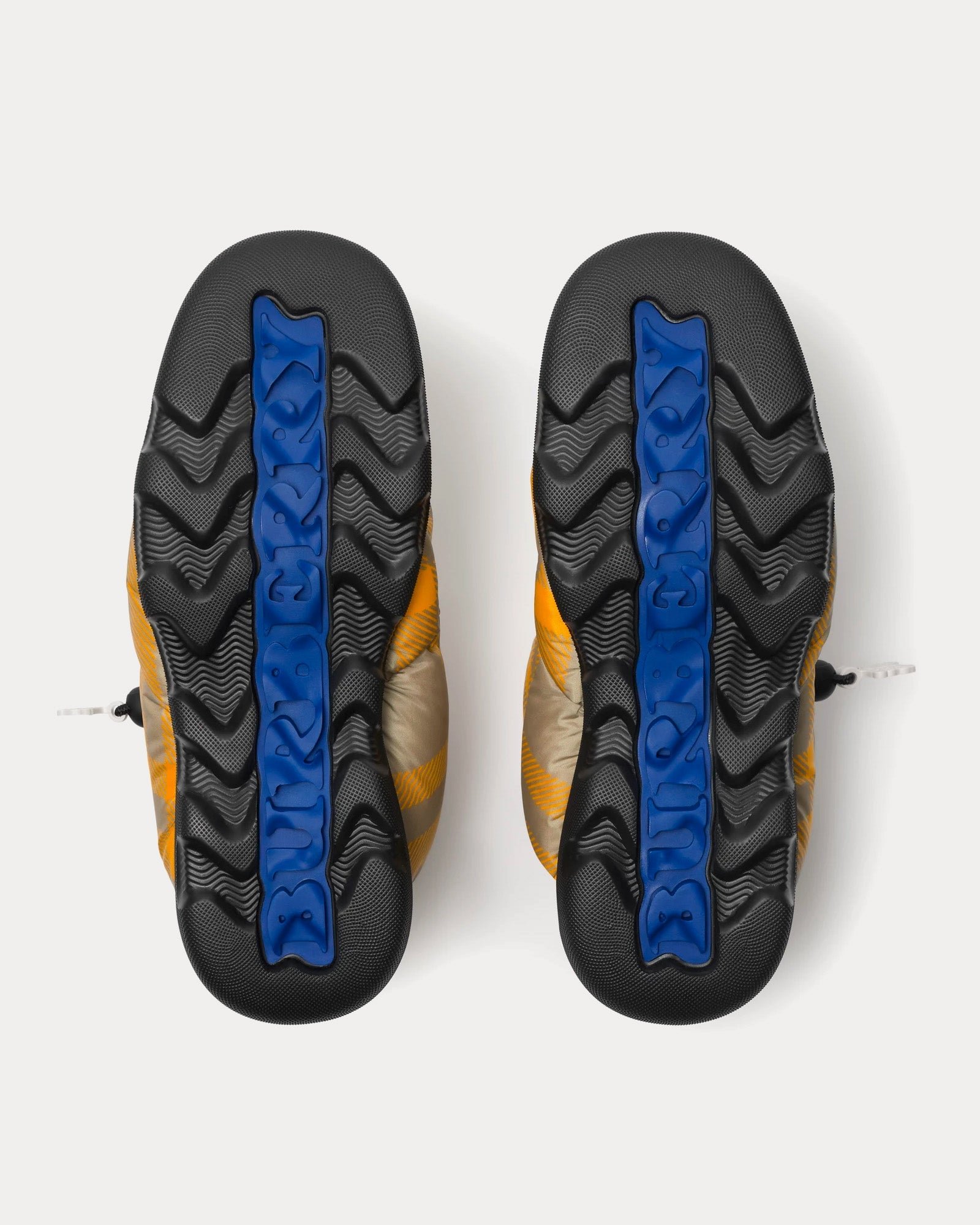 Les bottines basses pour hommes BurberryCheck Pillow en jaune sont dotées de fermetures à cordon, de bouts arrondis, de semelles intérieures Burberry Check, d’un lettrage Burberry sur les semelles et d’étiquettes Equestrian Knight Design.