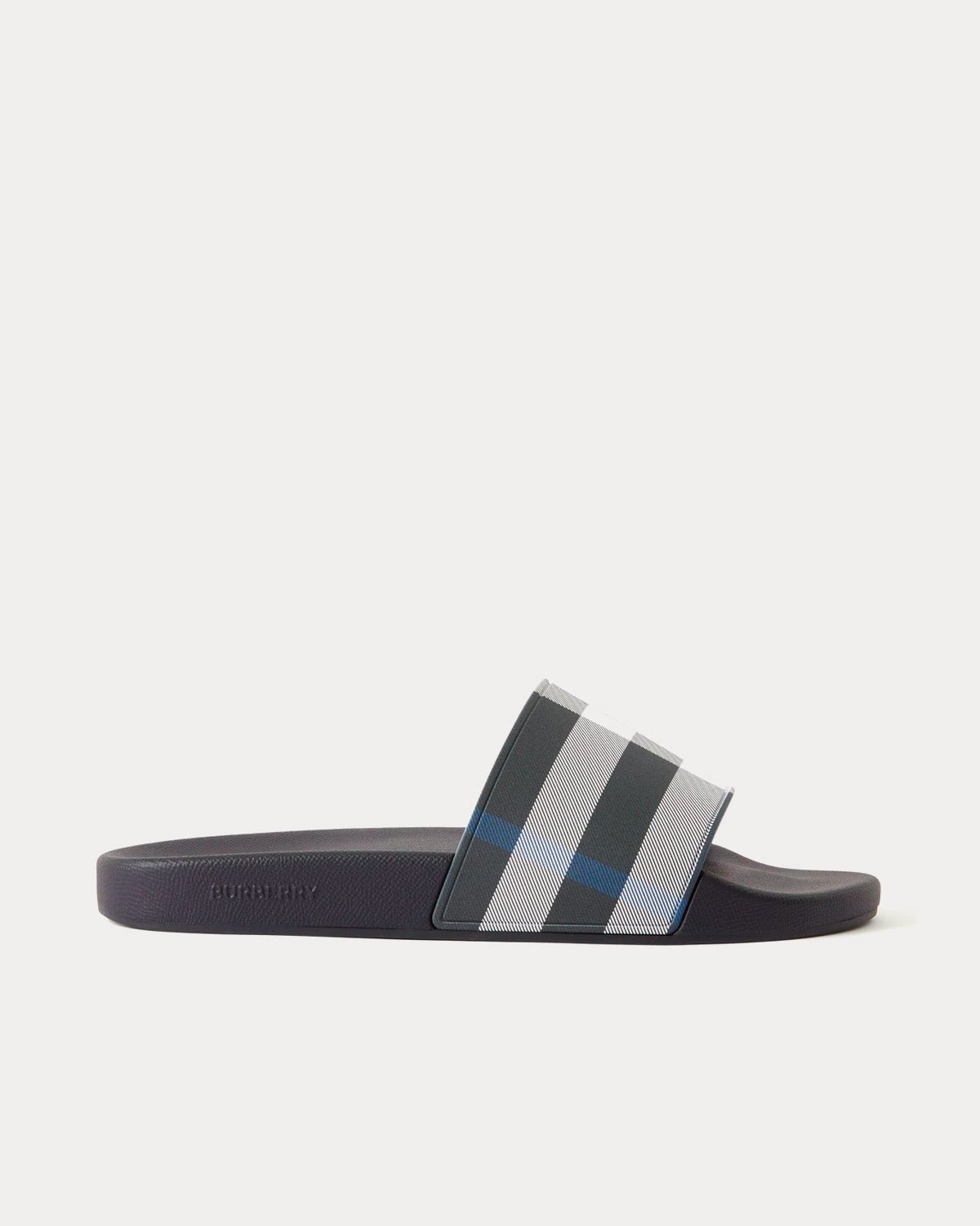 Les mules pour homme BurberryCheck arborent le motif à carreaux Burberry bleu, une tige et une semelle en polyuréthane, ainsi qu’un lettrage Burberry en relief sur le côté. Fabriquées en Italie.