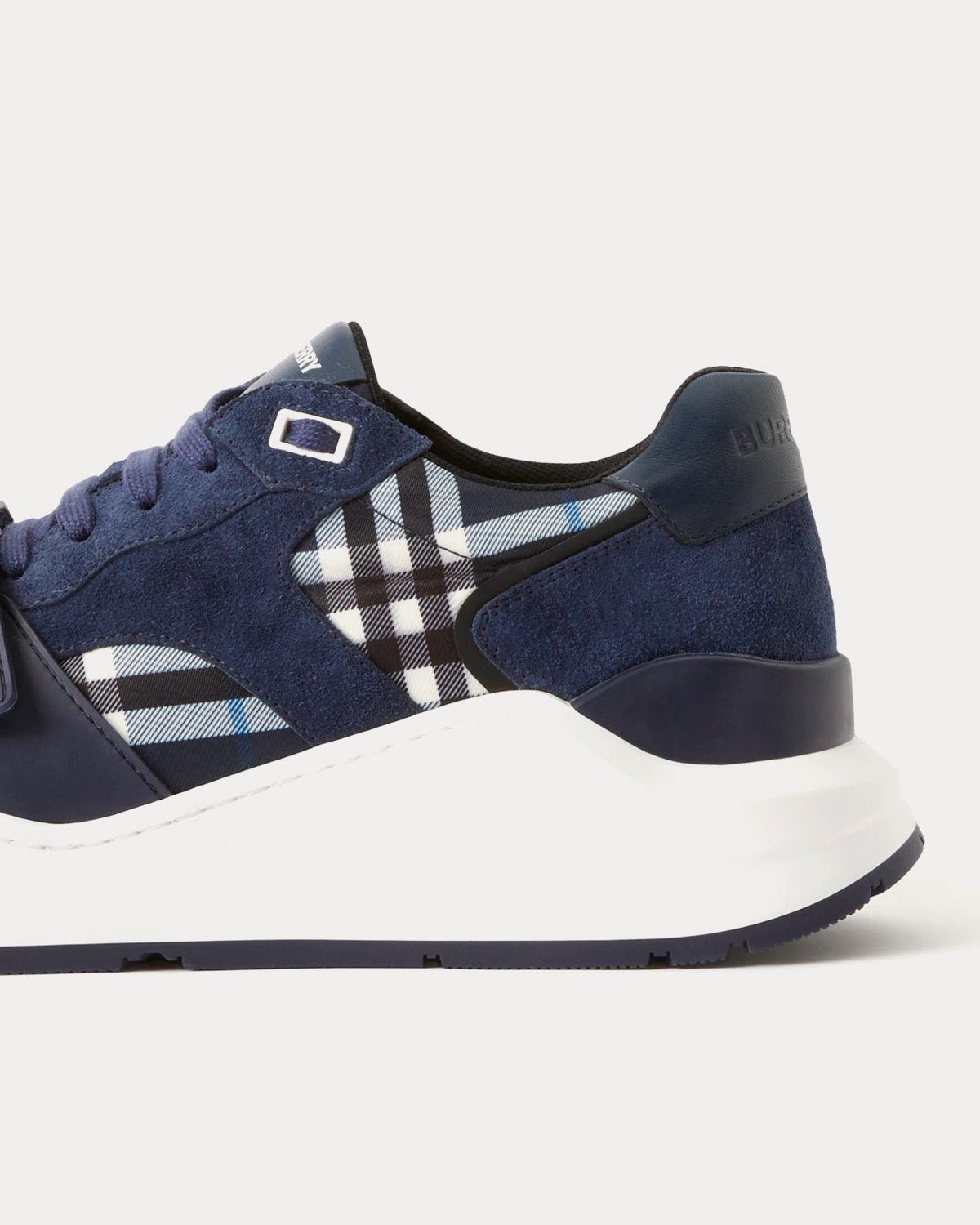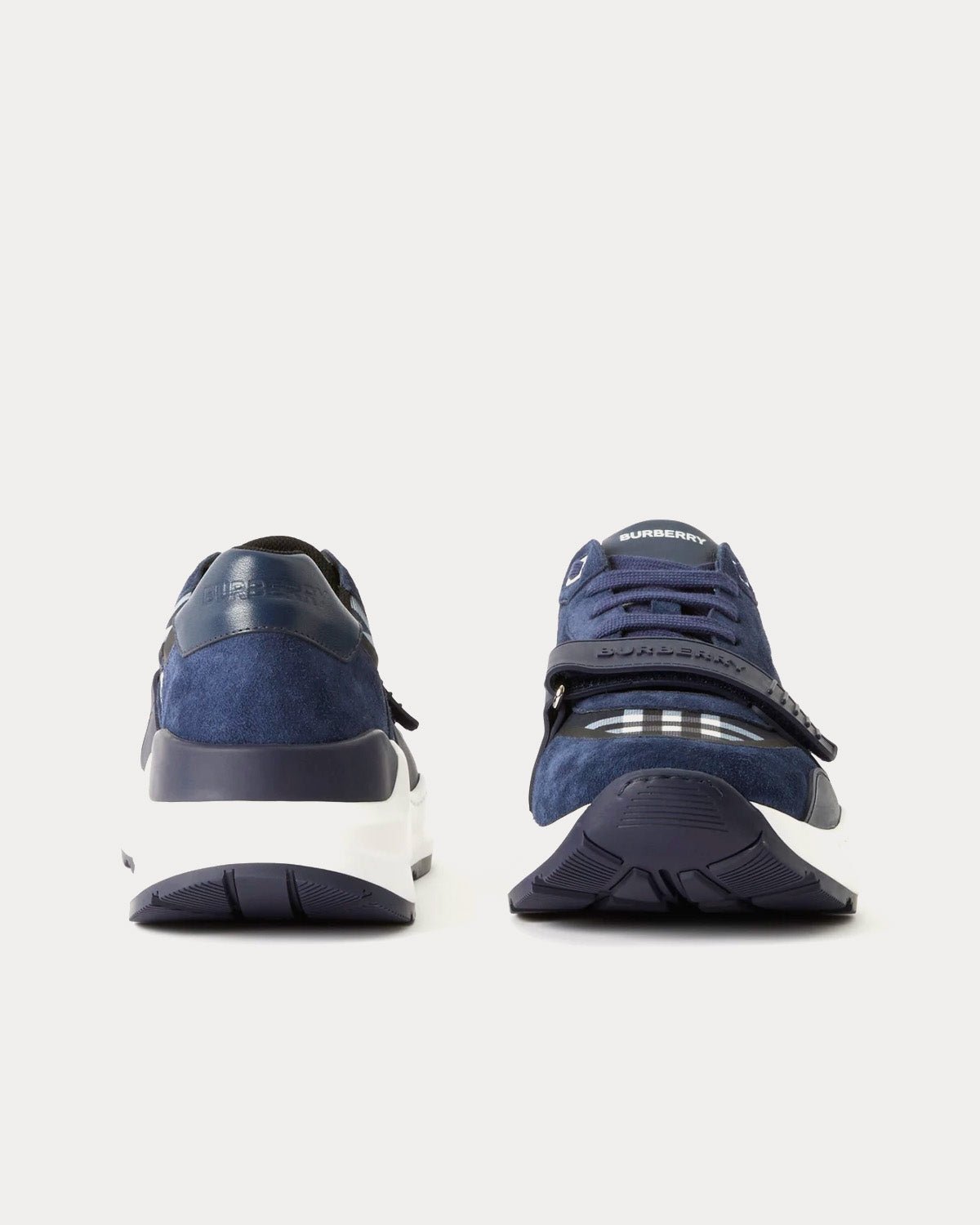 Baskets basses Burberry bleu marine en daim, cuir et carreaux