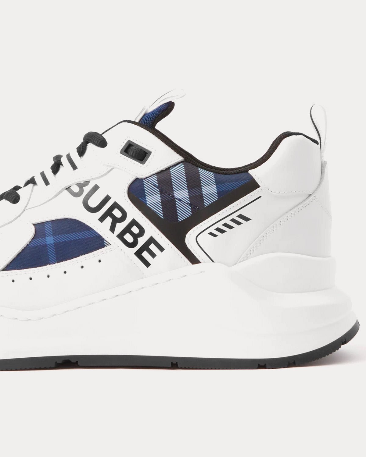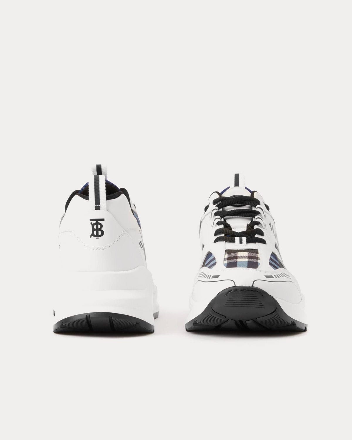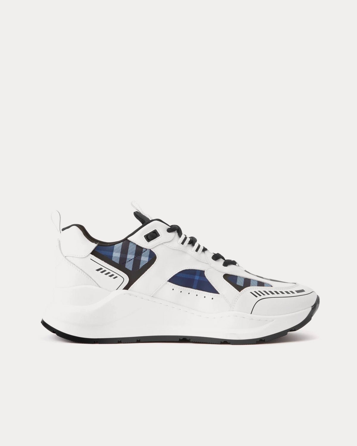 Baskets basses en cuir à imprimé logo Burberry et carreaux blanc/noir/bleu