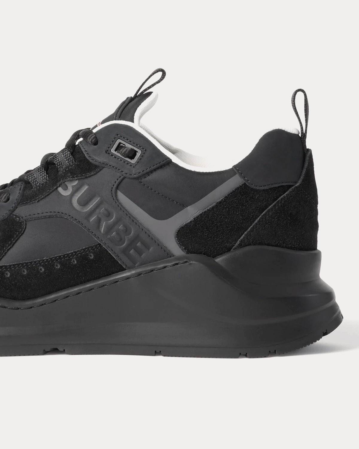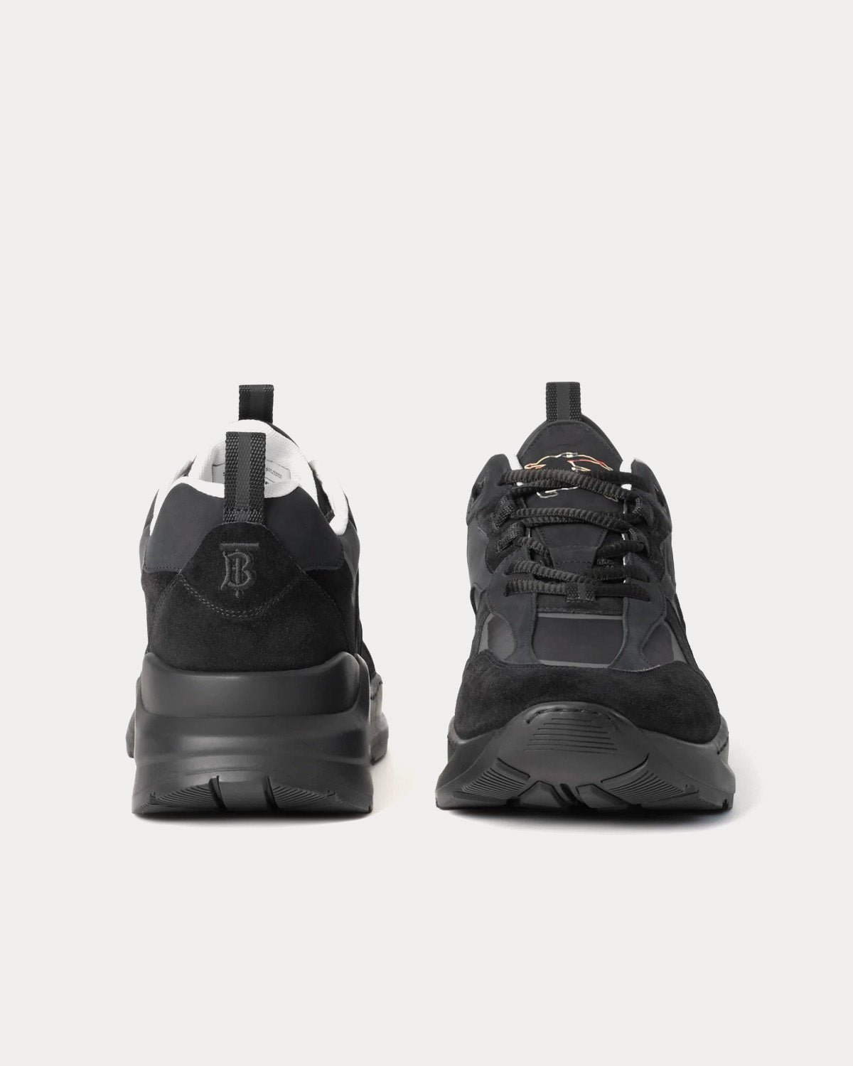 Les baskets basses noires pour homme BurberryNylon, daim et cuir arborent le logo Burberry gravé et le motif monogramme Thomas Burberry brodé au talon. Fabriquées en Italie.